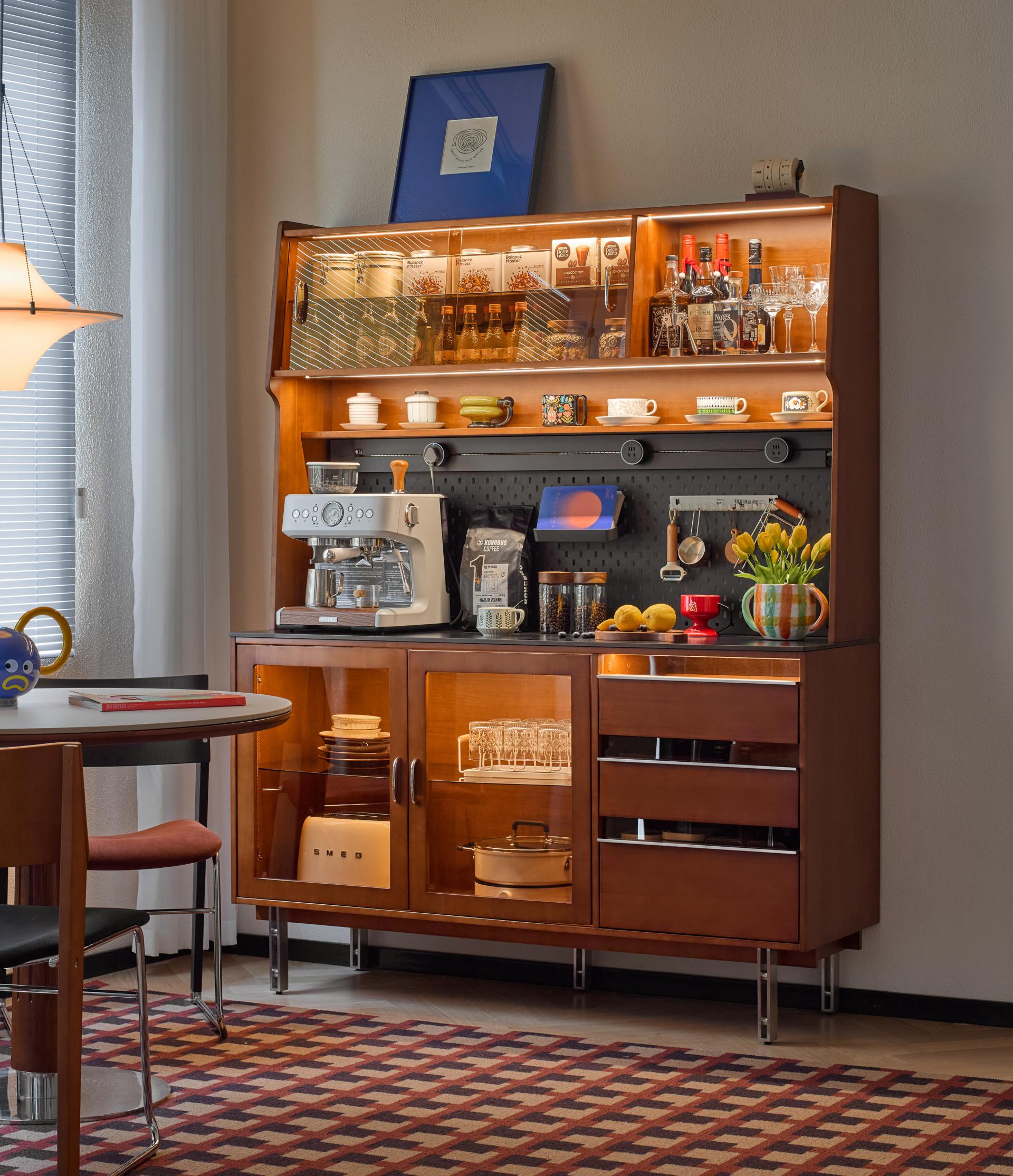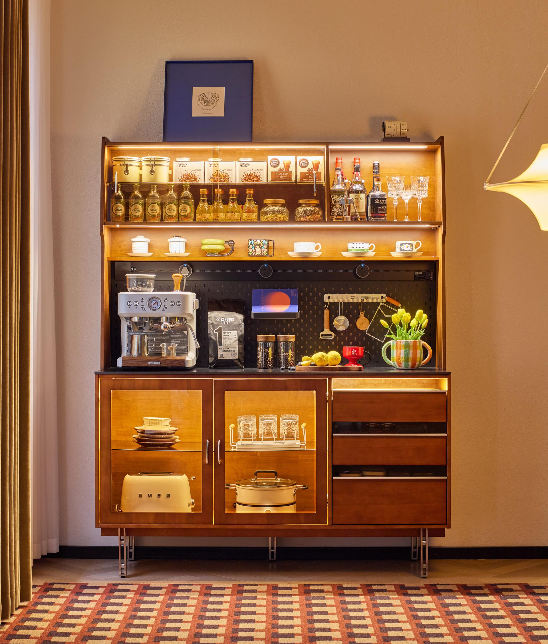 This Hidden Storage Time Cabinet draws inspiration from the diverse needs of modern urban youth for multifunctional and aesthetically pleasing home spaces. It is also a perfect interpretation of the "pleasure-first lifestyle" group who enjoy coffee and wine at home.