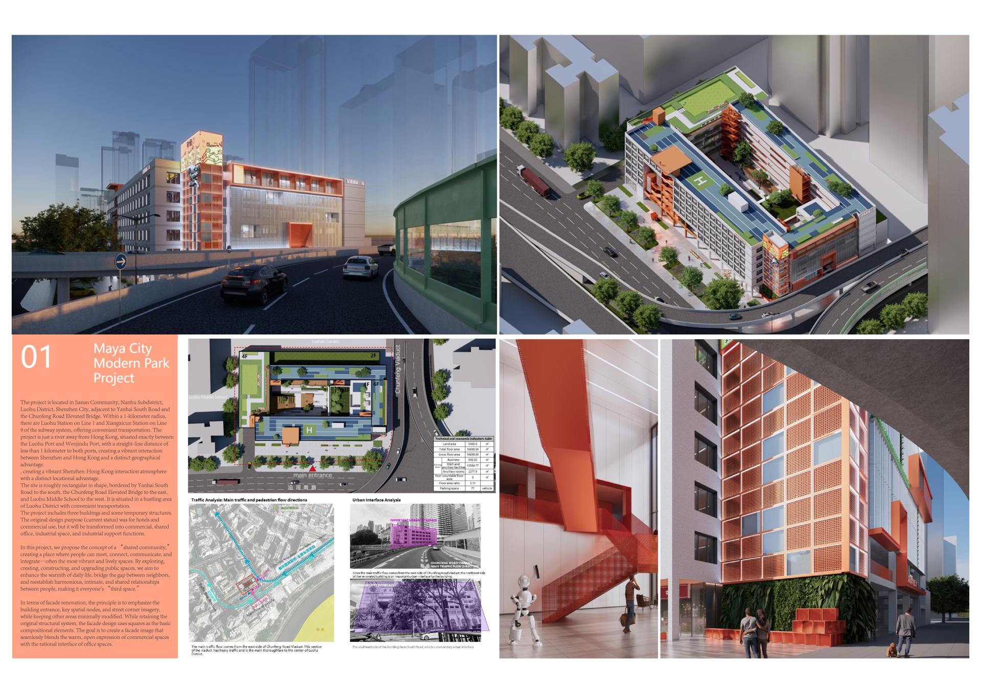 The project is located in Jianan Community, Nanhu Subdistrict, Luohu District, Shenzhen City. The site is roughly rectangular in shape, bordered by Yanhai South Road to the south, the Chunfeng Road Elevated Bridge to the east, and Luohu Middle School to the west. It is situated in a bustling area of Luohu District with convenient transportation. The project includes three buildings and some temporary structures. The original design purpose (current status) was for hotels and commercial use, but it will be transformed into commercial, shared office, industrial space, and industrial support functions.