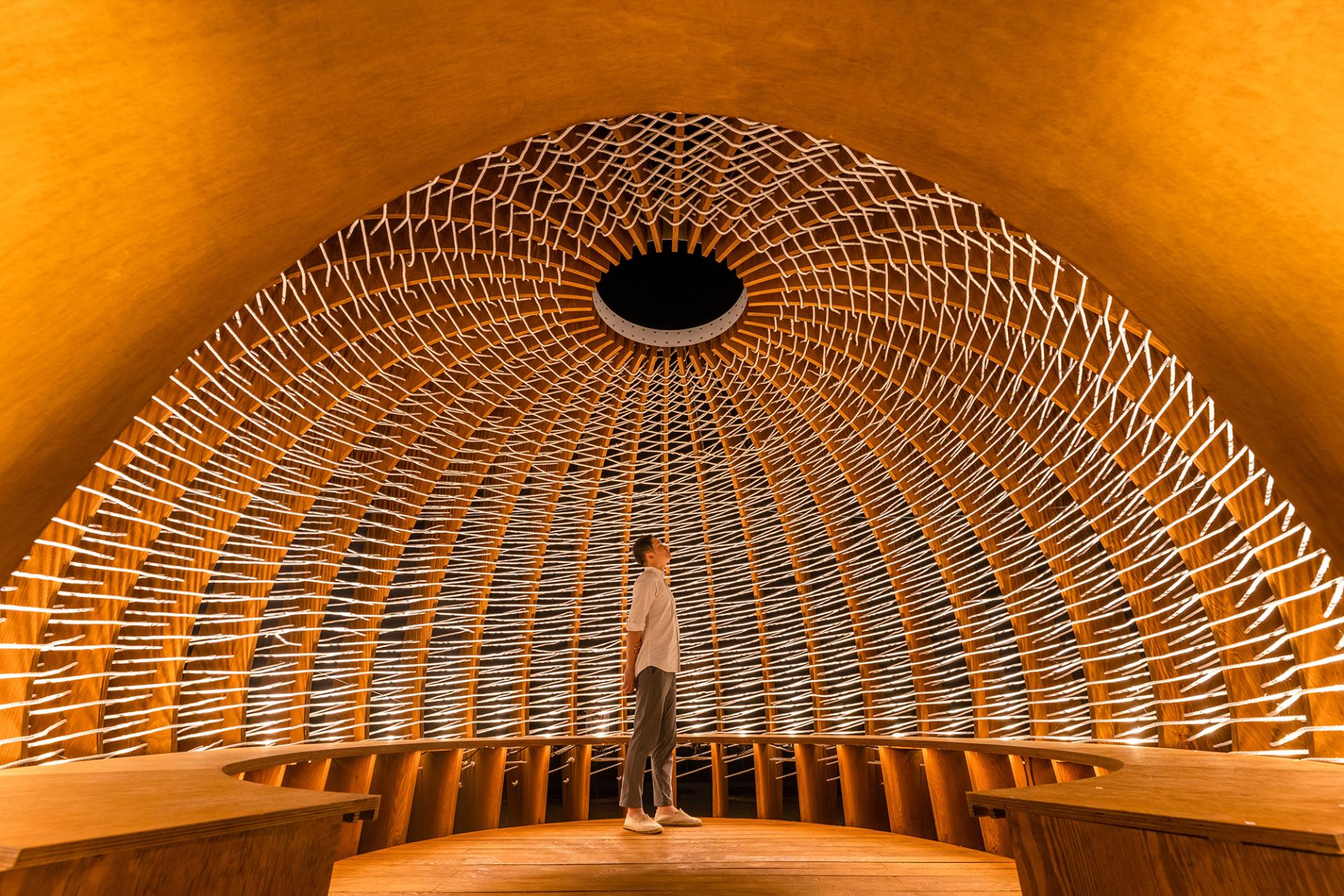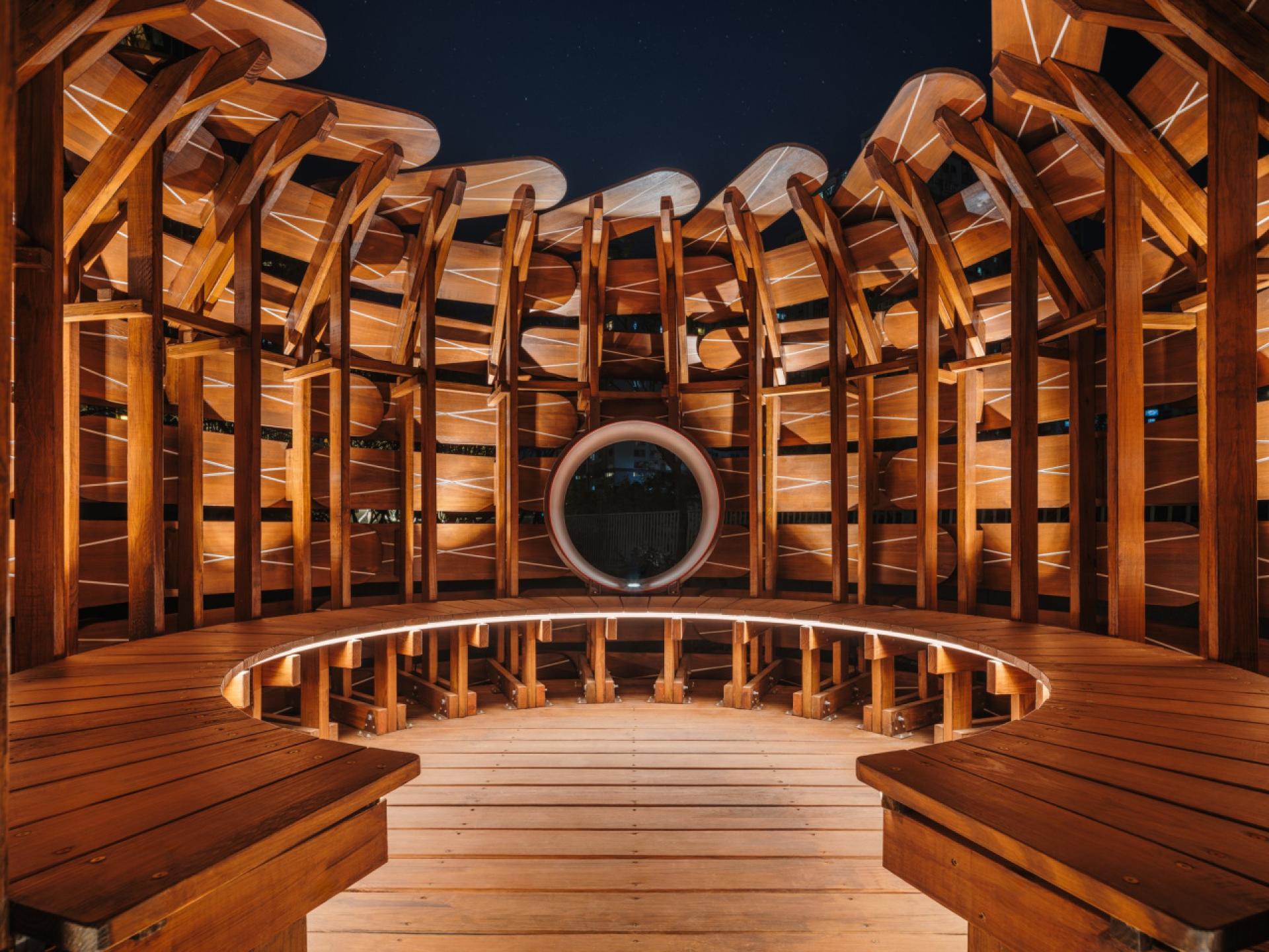 The lighting design follows an “internal glow” approach, with fixtures discreetly embedded within the structure to allow warm light to gently radiate from within. At night, each Nest takes on a distinct luminous presence, enhancing its sculptural quality and material depth while interacting with ambient light and shadows to create a poetic spatial experience.