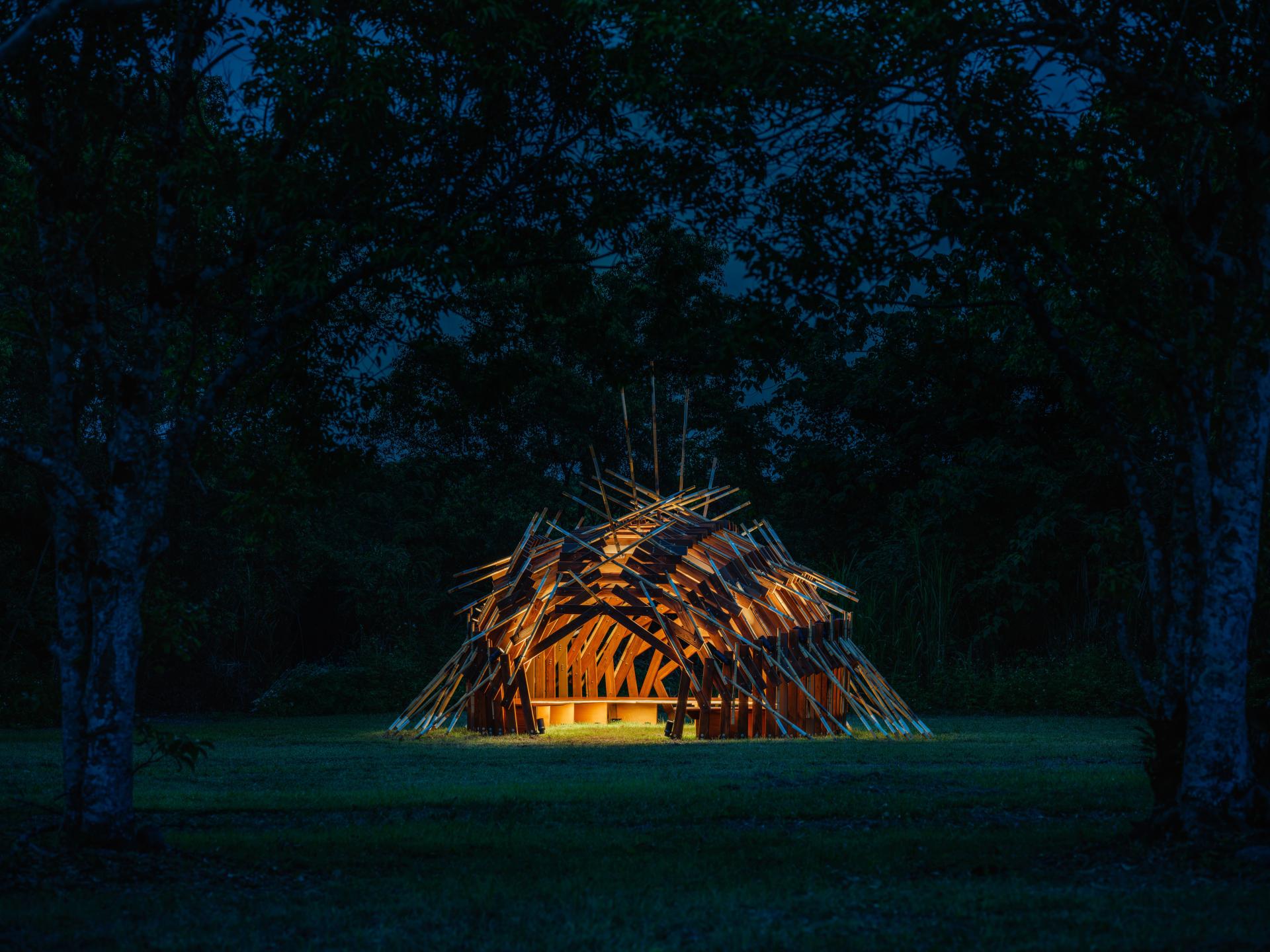 The Nesting Plan series is an ongoing large-scale installation project by artist Cheng-tsung Feng, who uses bamboo and timber to construct immersive spaces where humans and nature coexist. Inspired by the structural logic and poetic essence of birds’ nesting behavior, each piece is handwoven and architecturally composed, forming a vessel-like space that invites both pause and passage.