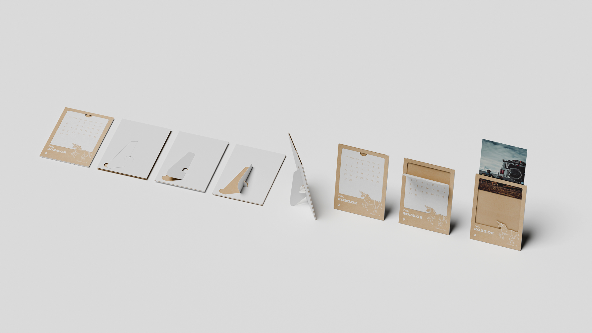 The twelve months are meticulously crafted into unique individual forms. On the back of each month, a stand design is ingeniously incorporated. Without the need for any additional auxiliary materials, it can stand steadily at an appropriate angle on a flat surface such as a desktop. Through the folding of the paper to create a stable and reliable support structure, it is not only convenient and practical but also fully reflects the concept of minimalist design and the use of fewer materials, further deepening the theme of environmental protection.