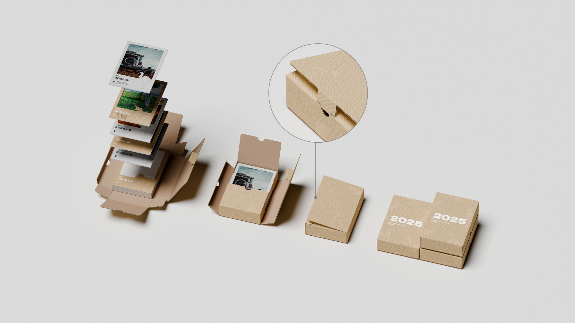 The outer packaging of the desk calendar uses original-colored paper, fully demonstrating the concept of environmental protection. Its unique tearable structure adds great charm to the experience of opening the box. At the same time, a secondary molding structure is also designed, and it can be repeatedly formed by means of a snap fastener.