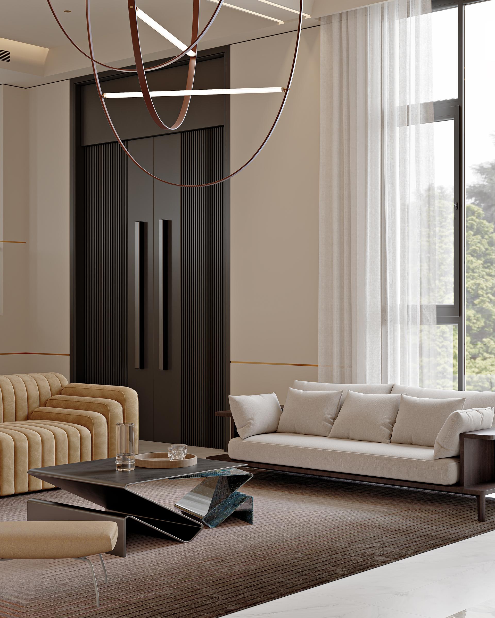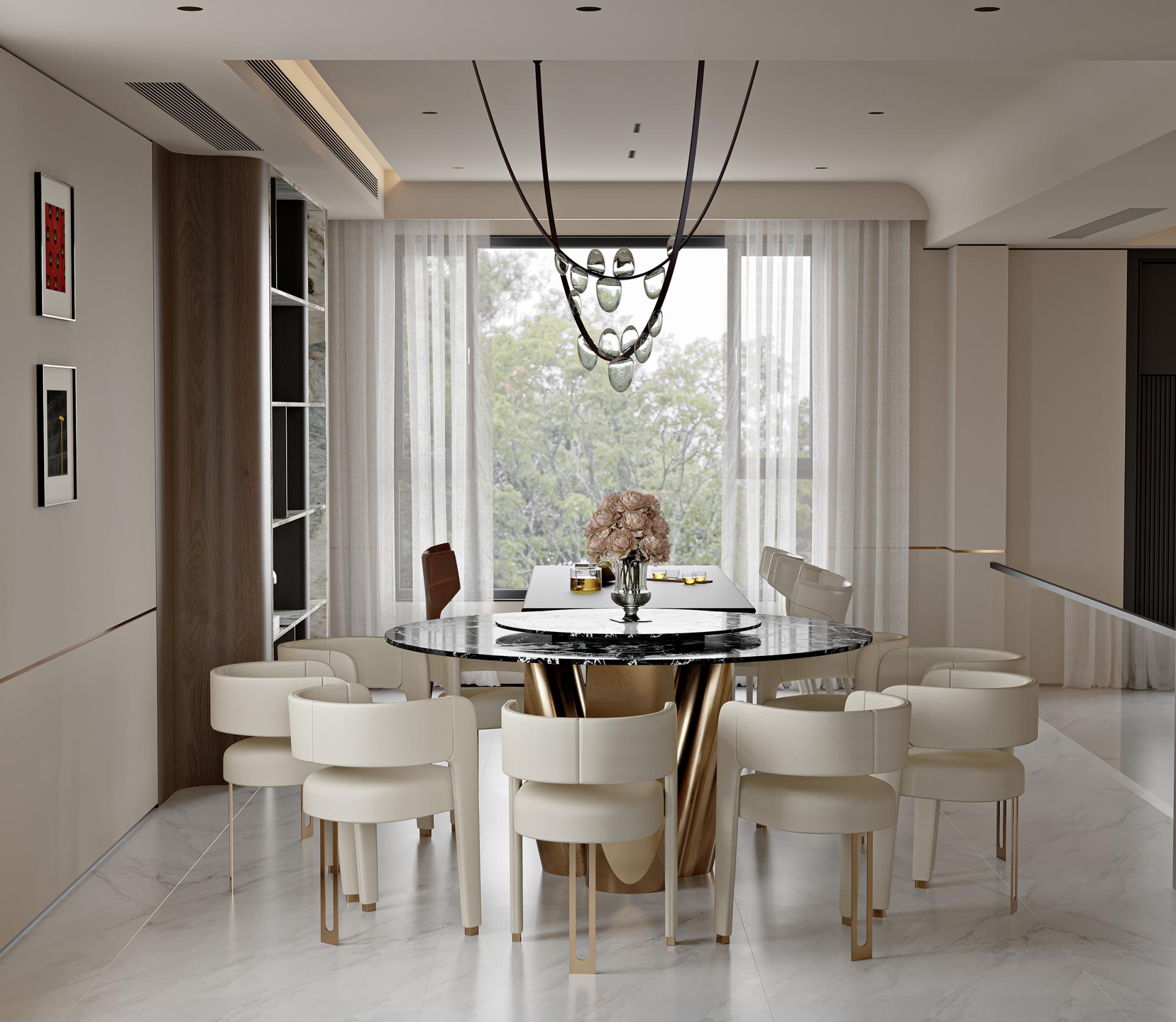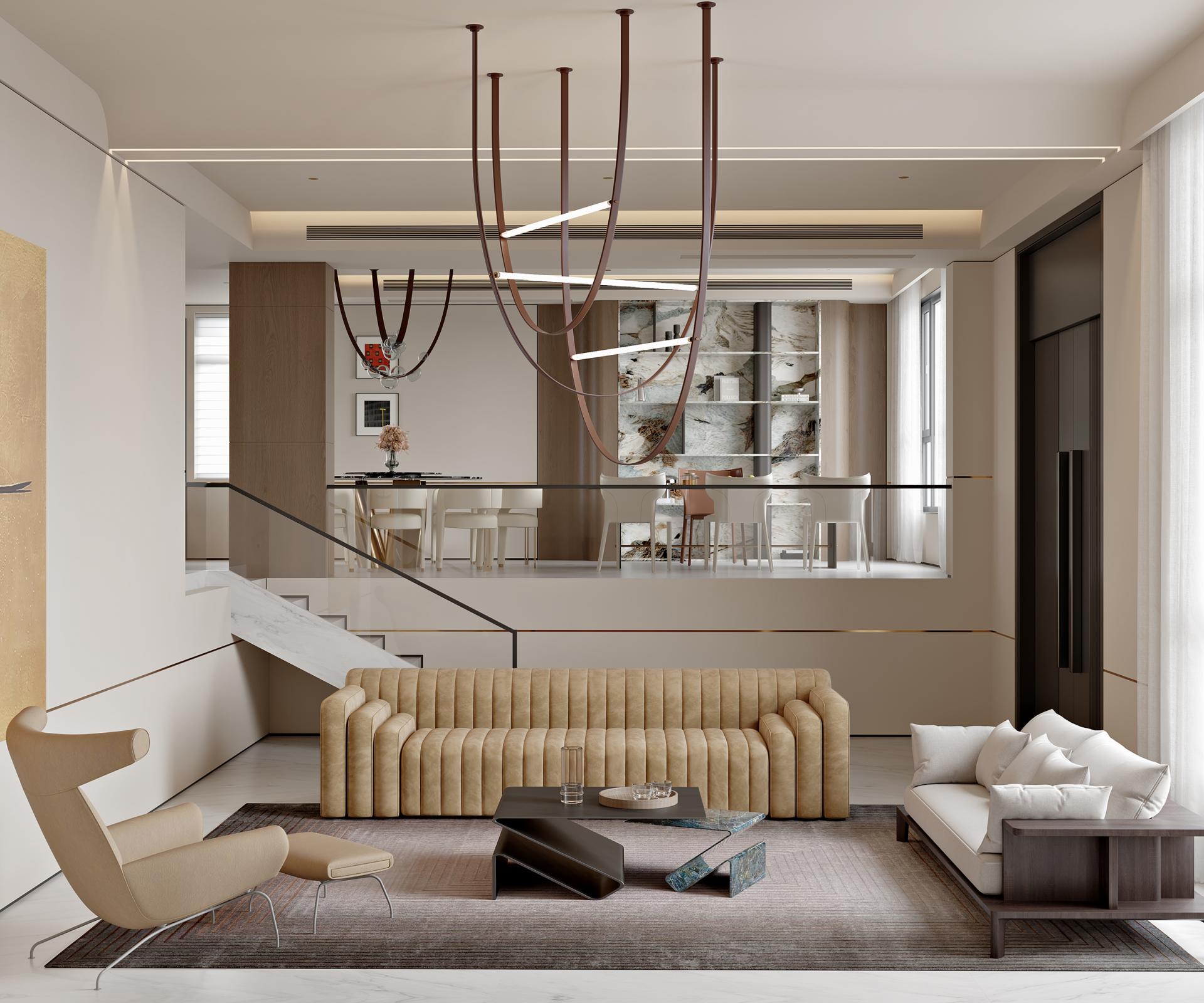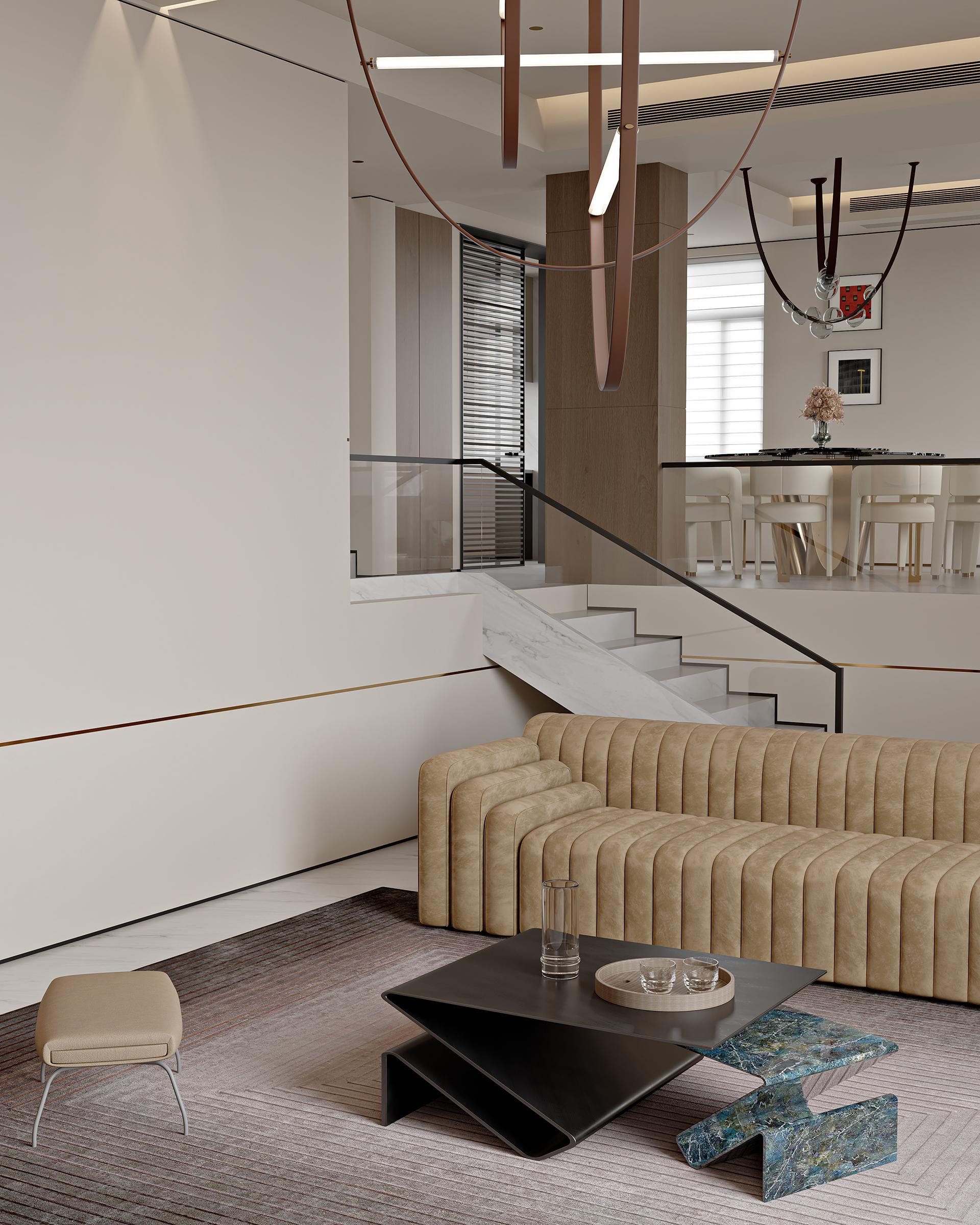 This case is located in Dongyang City, Zhejiang Province, with an area of approximately 560 square meters. The homeowner couple has high requirements for the overall functionality and practicality of the project. Designs that are flashy but without substance cannot pass the review. After several rounds of communication and discussion, the final floor plan was confirmed, and then the subsequent core design stage was carried out. This project is a modern luxury-style villa project. With "contemporary elegance" as the key word, the classic white floor stone is combined with soft artistic paint and wood veneer to form highly memorable visual elements. The combination of furniture shapes contains both hardness and softness, revealing the tranquility and calmness of the years.