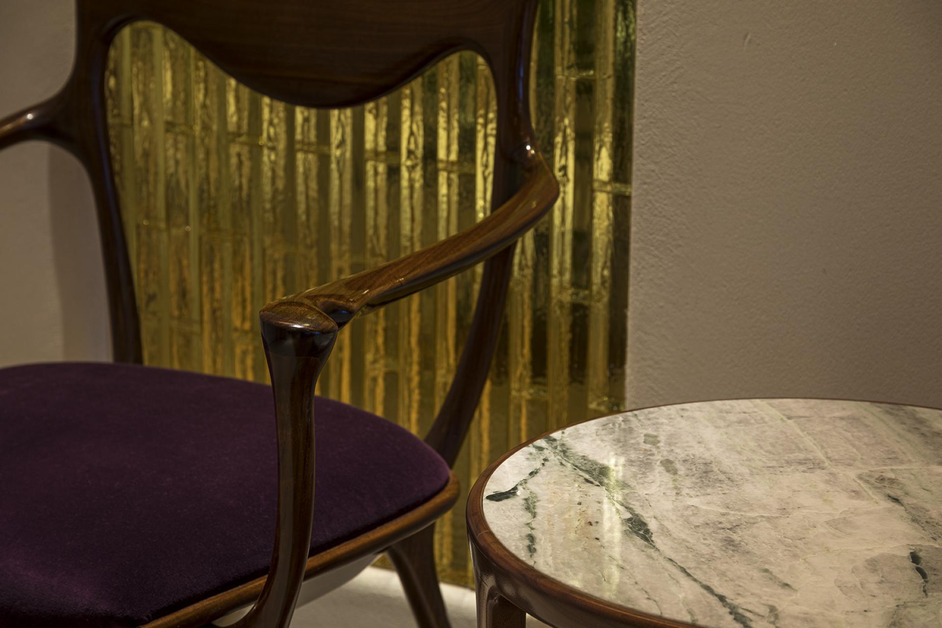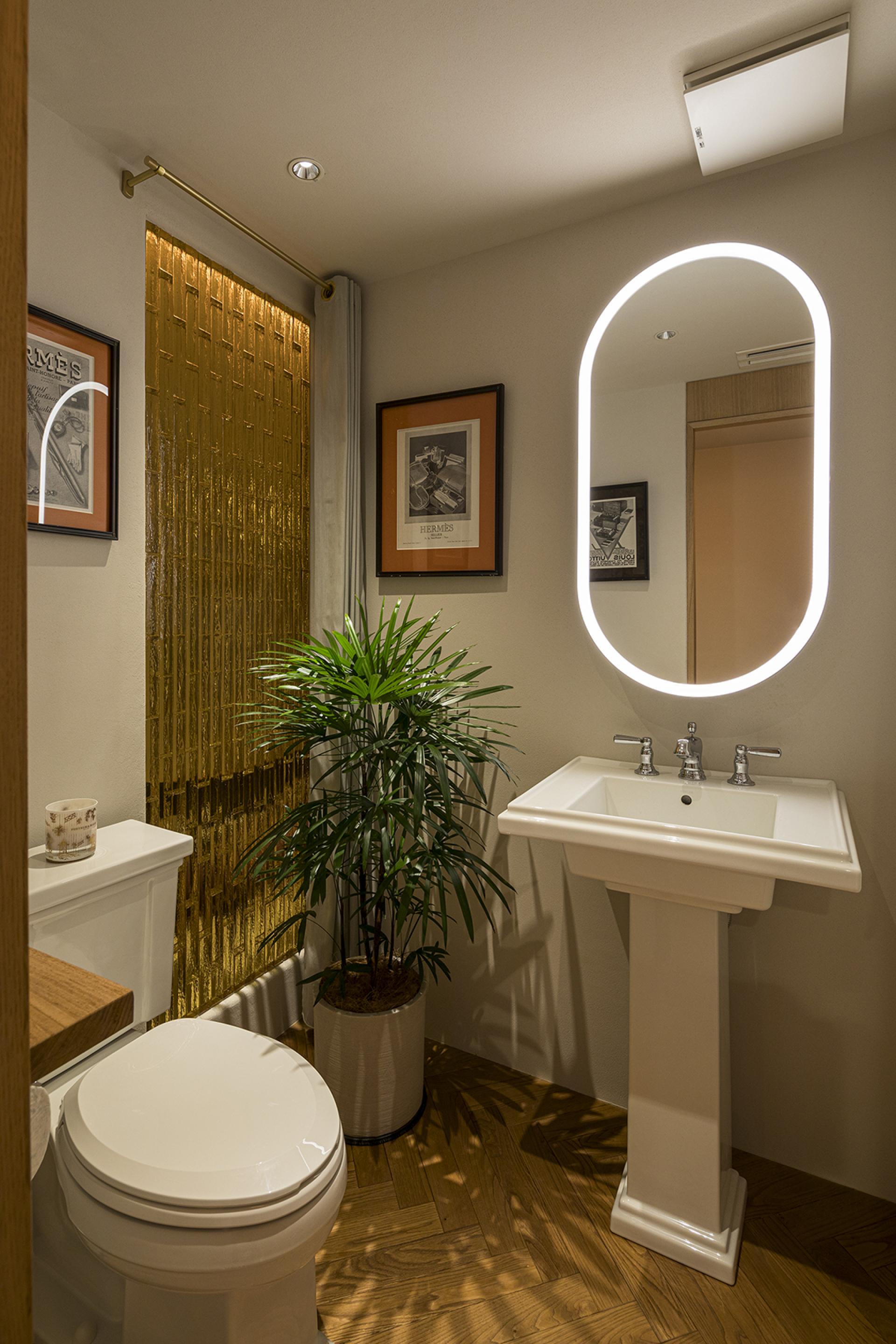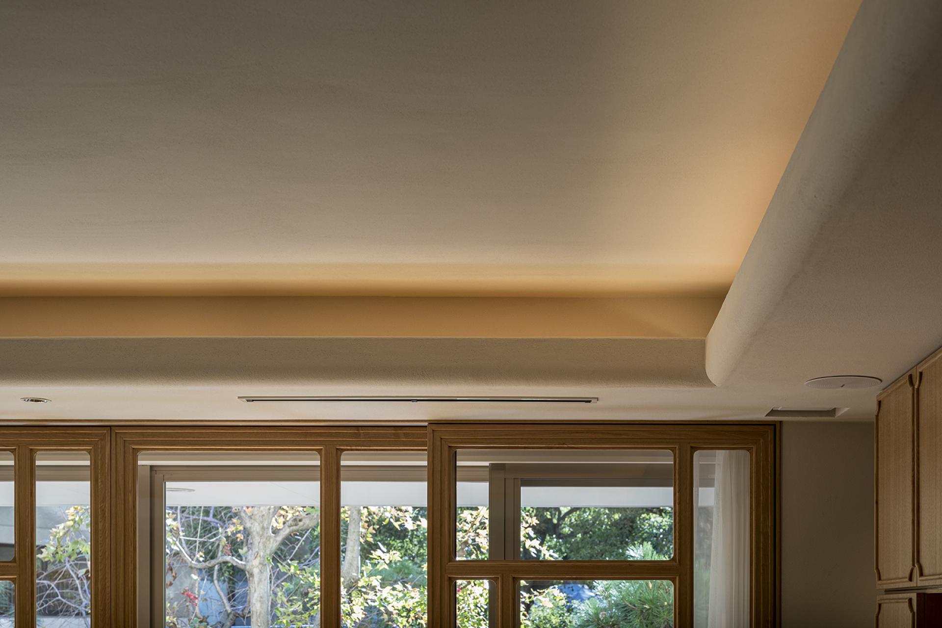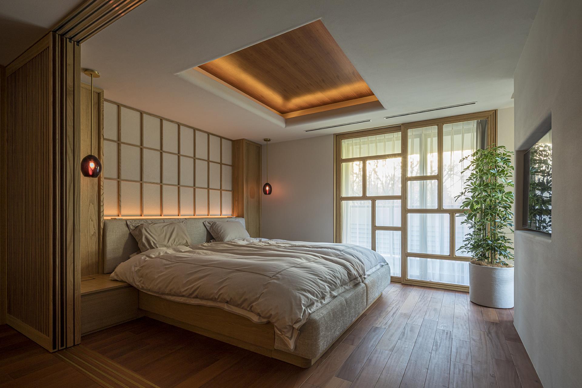 Natural materials such as domestically sourced solid wood, plaster, cast glass, and granite were used throughout the space. The forms, tones, and textures of these materials were preserved as much as possible to bring out their inherent simplicity. Meanwhile, the built-in furniture and fixtures made from these materials were designed with references to traditional Japanese latticework and patterns. Touchpoints within the space were detailed with gentle, decorative curves, and vivid colors were selectively used in furniture upholstery to express a contemporary East-meets-West approach.