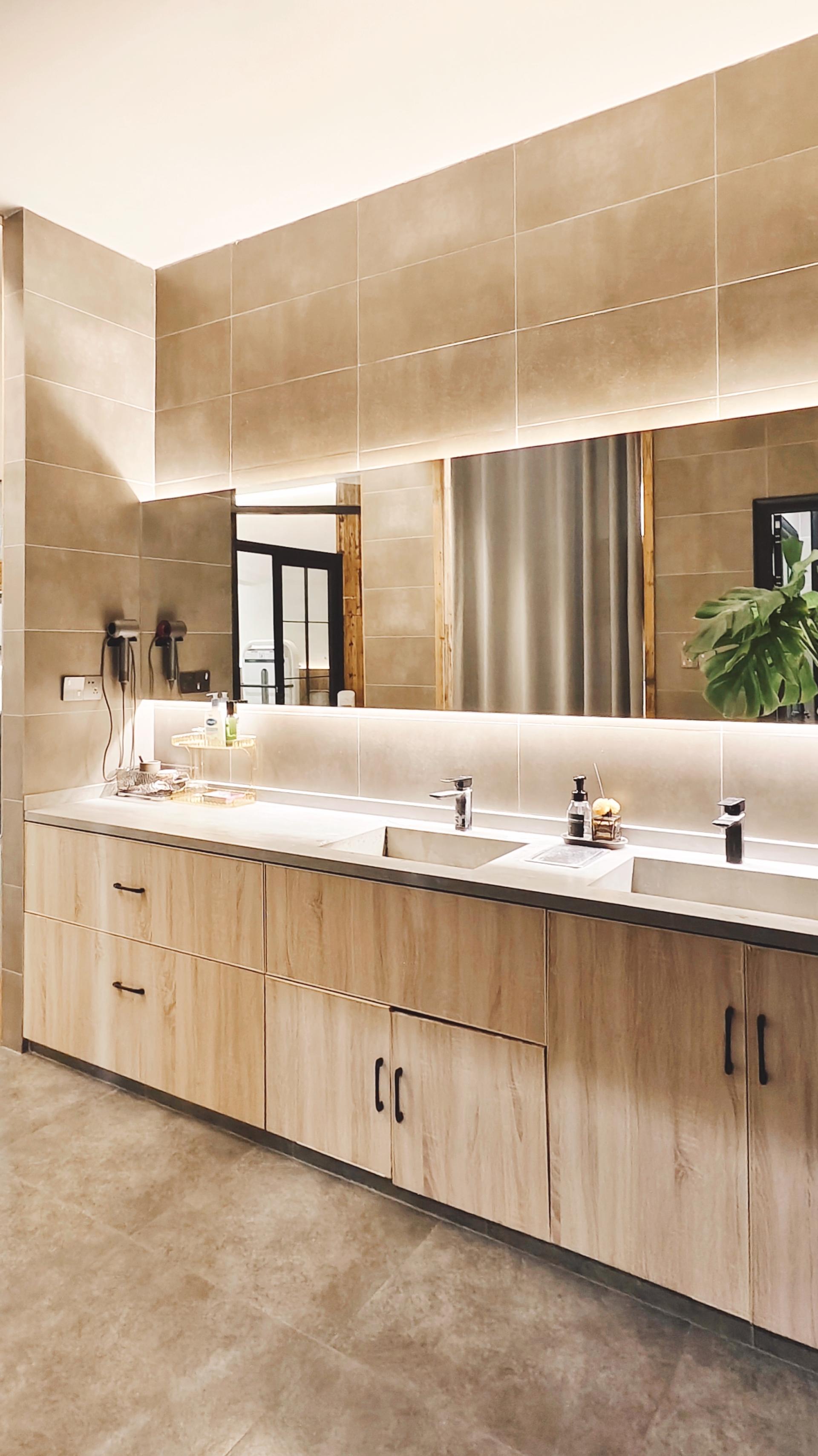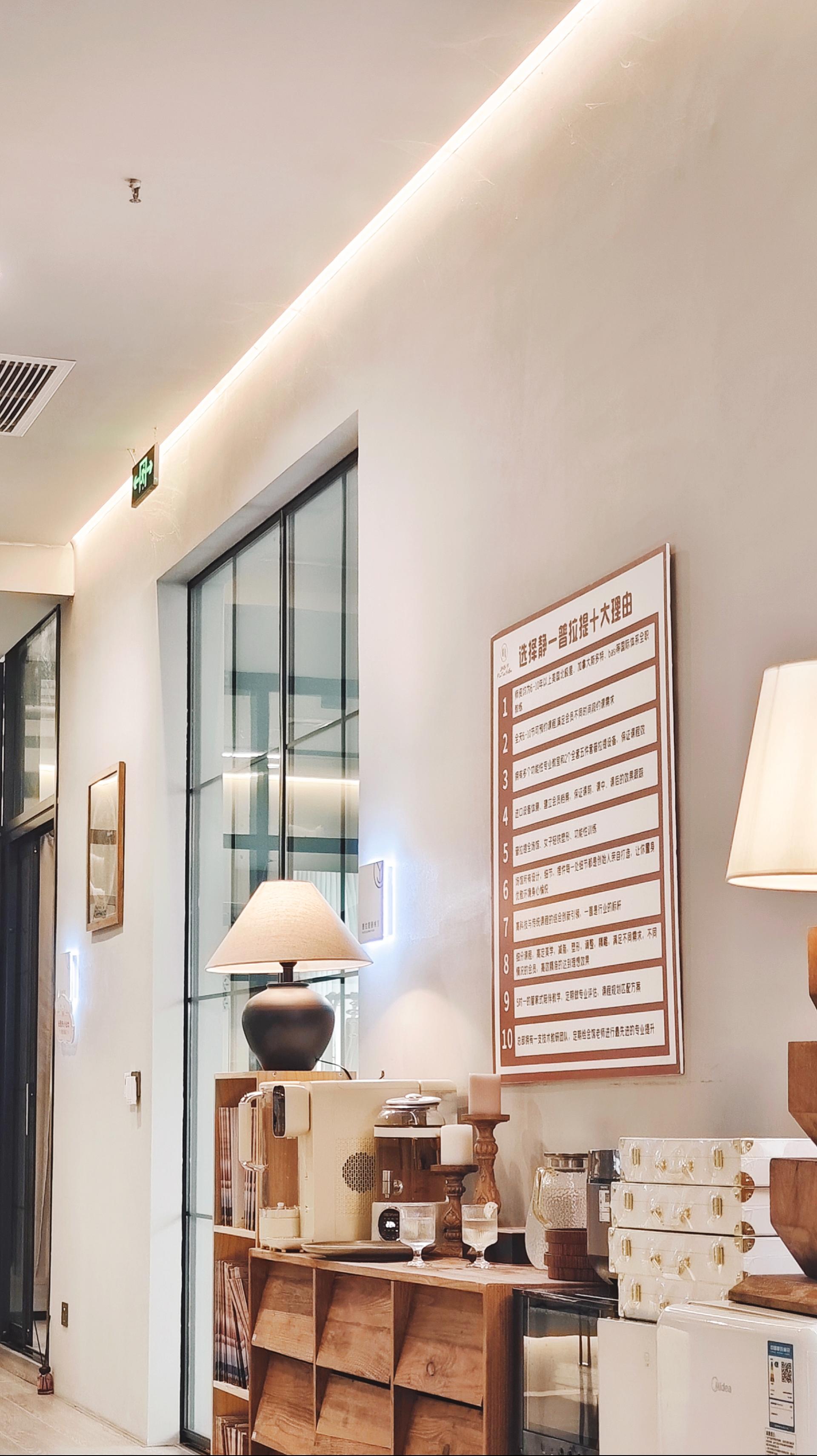 Natural light is carefully layered to create a relaxed rhythm. Midday sun is tamed by low-reflection glass and linen curtains, diffused three times into a soft, ambient glow. Handcrafted pottery lamps nestled in solid wood lockers emit warm 2700K light through rough ceramic glaze, casting amber reflections on the floor. As daylight fades, the setting sun casts shifting patterns of tree rings onto the textured walls, echoing the movement of the body.