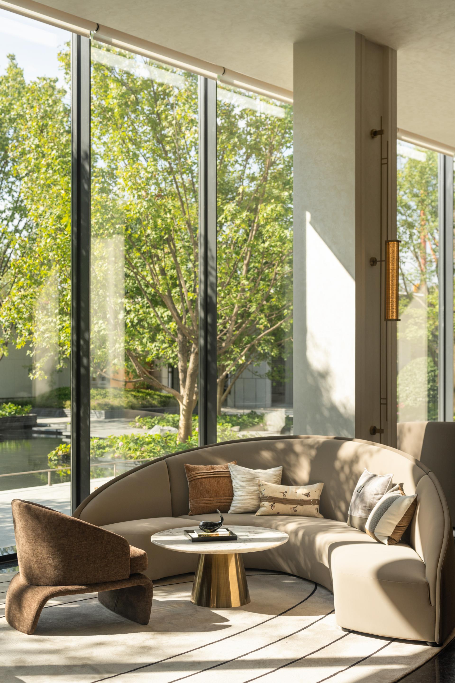Inviting Light, Interplaying Reality and Illusion: Expansive floor-to-ceiling glass curtain walls seamlessly draw the outdoor courtyard scenery and abundant natural light inwards, blurring the boundaries between interior and exterior. As light shifts throughout the day, it casts an ever-changing poetic script upon the space, imbuing the static architecture with dynamic vitality.