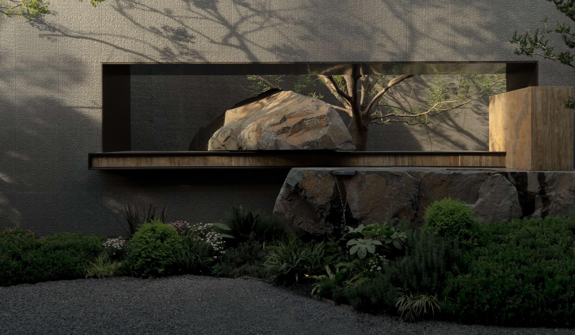 03. Glazed Water Garden: A sunken sanctuary of pines and stone, a poetic space where nature meets contemplation.