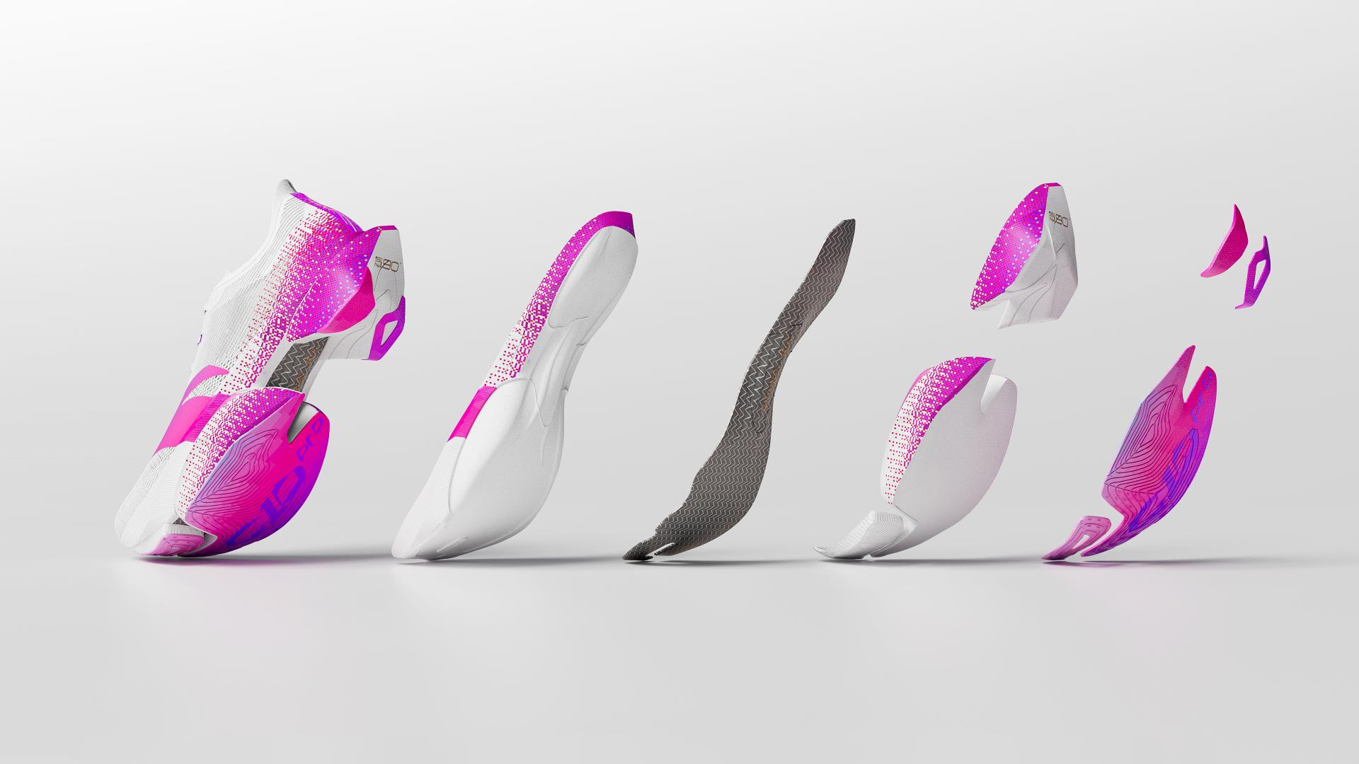 Engineered for elite marathon and long-distance racing, the C10 PRO II fuses a unique split-forefoot propulsion system with a lattice system for ultimate propulsion and pinpoint control. Inspired by the dynamic poise of a hunting shark, the shoe's asymmetrical, streamlined design embodies a "ready-to-strike" forward stance. This design functionally maintains the runner's high center of gravity, enhances push-off response, and perfectly releases the power of the sole to increase maximum speed, while visually reinforcing a competitive mindset. Tested by the Ningbo University Sports Science Institute, the C10 PRO II shows a 19% lead in acceleration performance over the current industry's top racing shoe, the adidas evo 1 (weighing only 138g). This product advances racing shoe performance from minor material tuning to true structural innovation, setting a new benchmark for competitive breakthroughs and empowering elite runners to unleash their full potential. The C10 PRO II debuts a revolutionary tri-segment split-toe design, inspired by the wear patterns on elite runner Kenenisa Bekele's race shoes and the force distribution mechanics of an ostrich's foot. By structurally separating the forefoot, the design channels propulsive force directly to the big toe for instant response and a more powerful ground reaction. This breaks the limits of traditional one-piece outsoles, delivering lighter, more precise power output—ideal for elite athletes to adjust their pace and unleash an explosive kick. The heel features an exposed carbon plate, showcasing the shoe’s power core. This design draws inspiration from the elongated heel bones of ungulates like antelope, extending the plate's lever arm to dramatically enhance stability and efficiency during gait transition. The striking, layered aesthetic reinforces the shoe's high-performance DNA while delivering a more secure and powerful push-off for the runner. With its suspended heel design, the C10 PRO II has a "natural forward lean" even at rest, mimicking the explosive posture of a sprinter in the starting blocks. This design doesn't just visually prime you for speed; it creates a functional advantage. The extended forefoot outsole curve works in tandem with an increased toe-spring angle, helping athletes maintain a high center of gravity with every step.