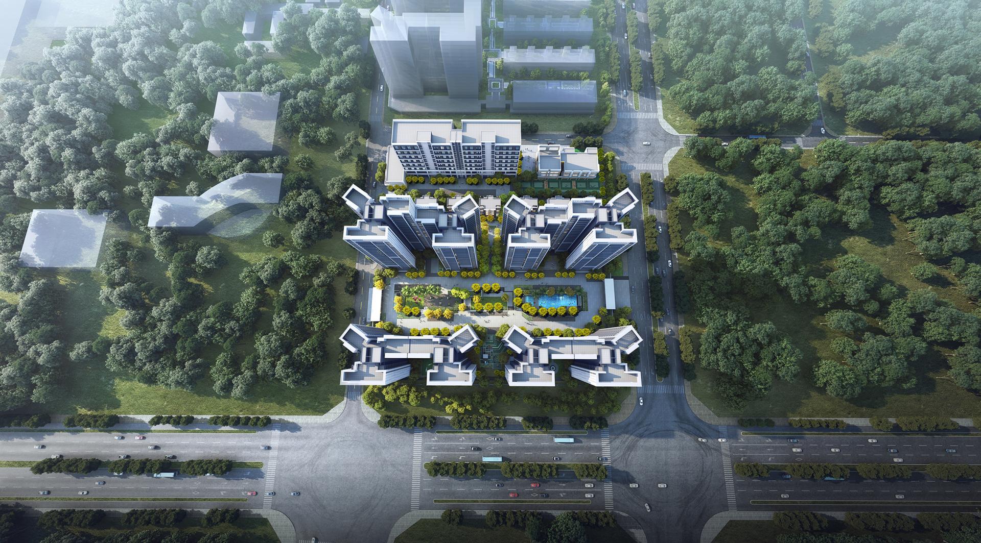 The architectural layout follows a north-south orientation with a mix of high- and low-rise clusters. The southern side, facing the city's main road, Yehai Avenue, features high-rise residential clusters, while the northern side accommodates commercial and kindergarten facilities to enable resource sharing with the residential community. The design establishes a high-quality community form with clear functional zoning, convenient regional connectivity, and harmonious urban relations.