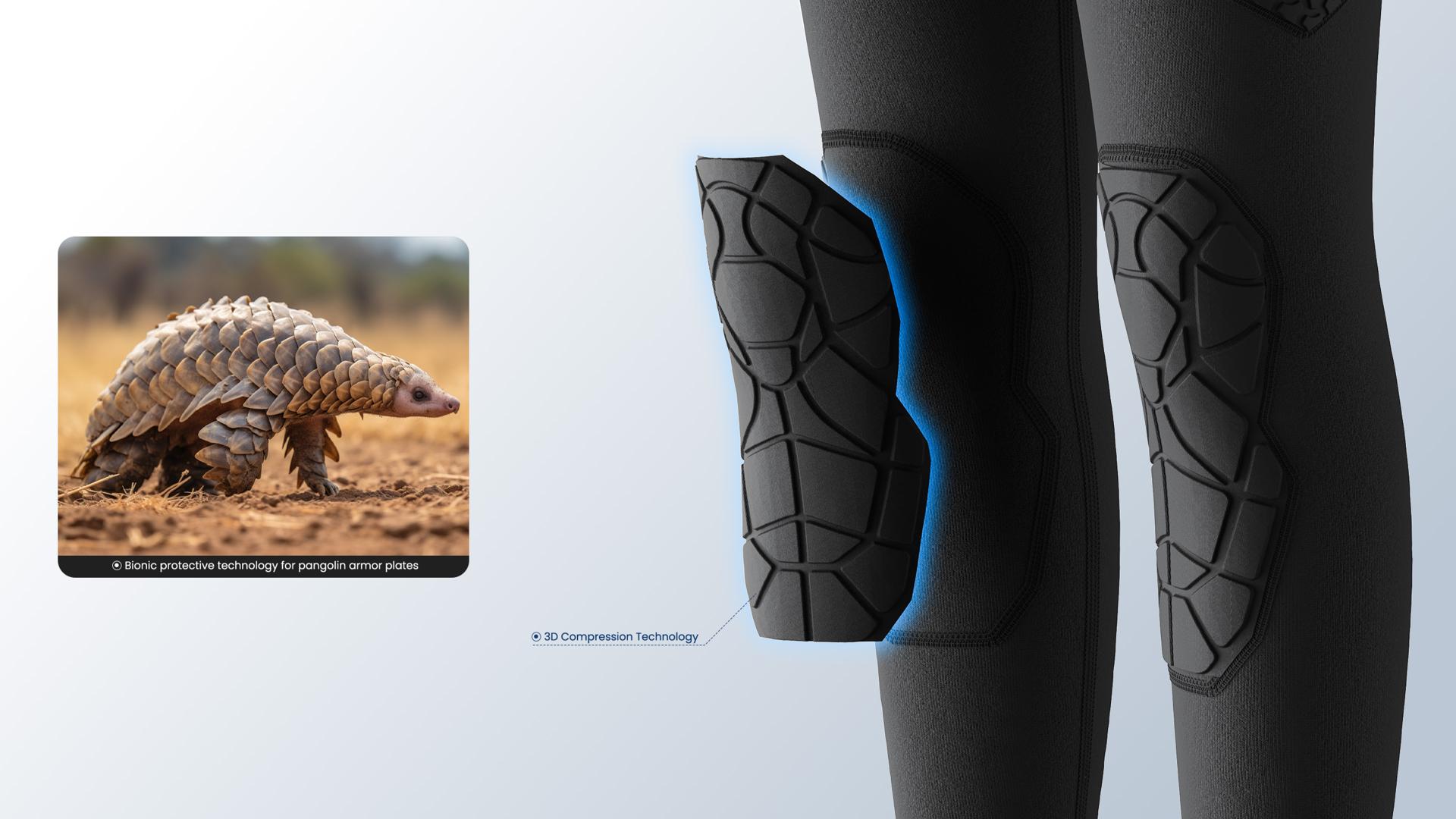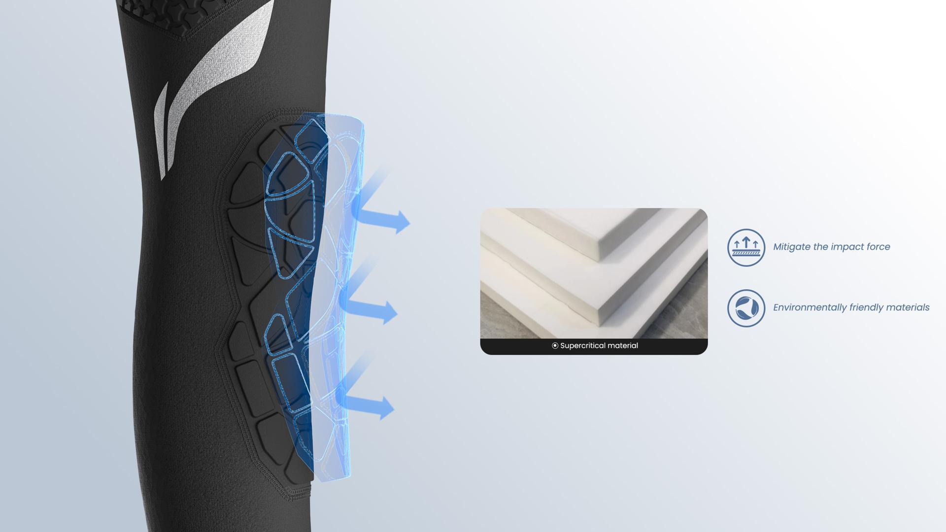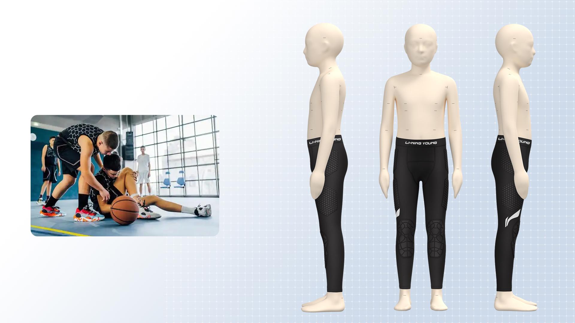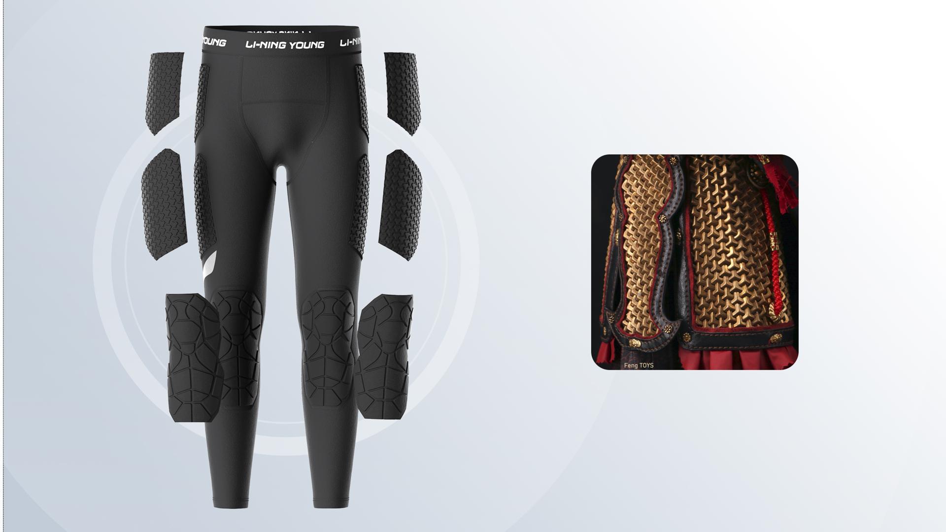Engineered with innovative 3D compression technology, the Ningkai impact pants deliver precision knee protection, seamlessly contouring the joint’s flex-and-extend curve. Paired with silicone anti-slip strips, they provide graduated compression for a secure, non-slip fit, minimizing knee injury risks during intense movements. Drawing on the bionic design of pangolin scales and optimized with ergonomic data, the protective structure ensures robust impact resistance while preserving joint flexibility and unrestricted mobility. The NingKai impact-resistant pants utilize supercritical material as an internal filling structure, an innovative material that combines superior cushioning with eco-conscious design, delivering exceptional impact absorption and rebound performance. Compared to traditional protective materials, supercritical material excels in buffering efficiency and lightweight construction, effectively mitigating impact forces during intense play while preserving athletic flexibility. Its production process is more environmentally friendly, reflecting a strong commitment to sustainable development. Infused with bionic innovation inspired by pangolin scales, the Ningkai impact pants feature a zoned, high-conformity protective structure that delivers robust defense while preserving joint mobility. Their aesthetic, rooted in ancient Chinese armor, embodies strength and guardianship, igniting confidence and on-court presence in young athletes. By fusing cultural heritage with cutting-edge technology, these pants offer exceptional protection, perfectly balancing the flexibility and power demanded by basketball players.