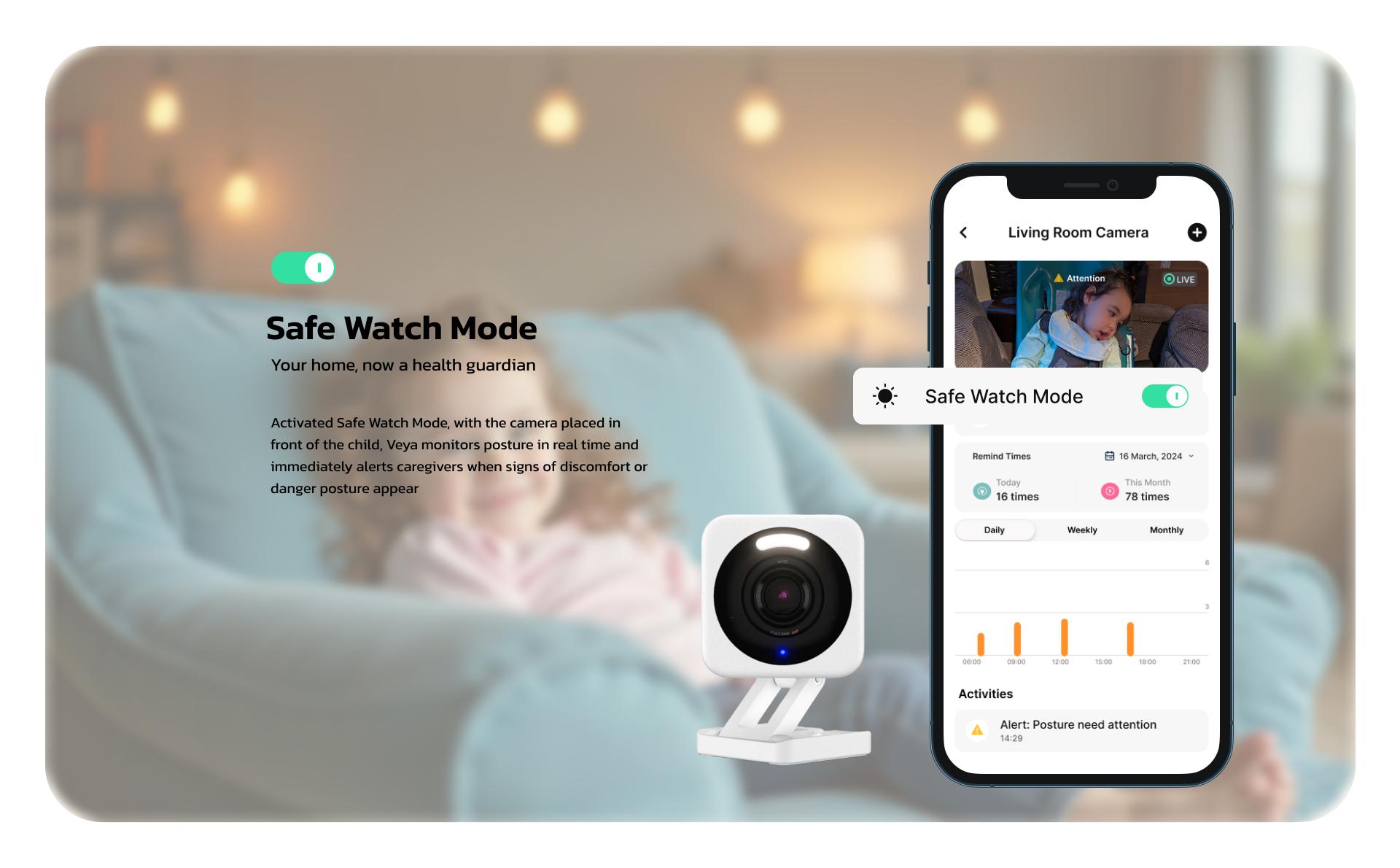 Veya AI Home Health is an AI-powered smart home health system designed to support families caring for children with CP. Using camera-based posture detection and a mobile end application, Veya identifies unsafe body positions in real time and instantly alerts caregivers, empowering them to intervene quickly while reducing the burden of constant oversight.