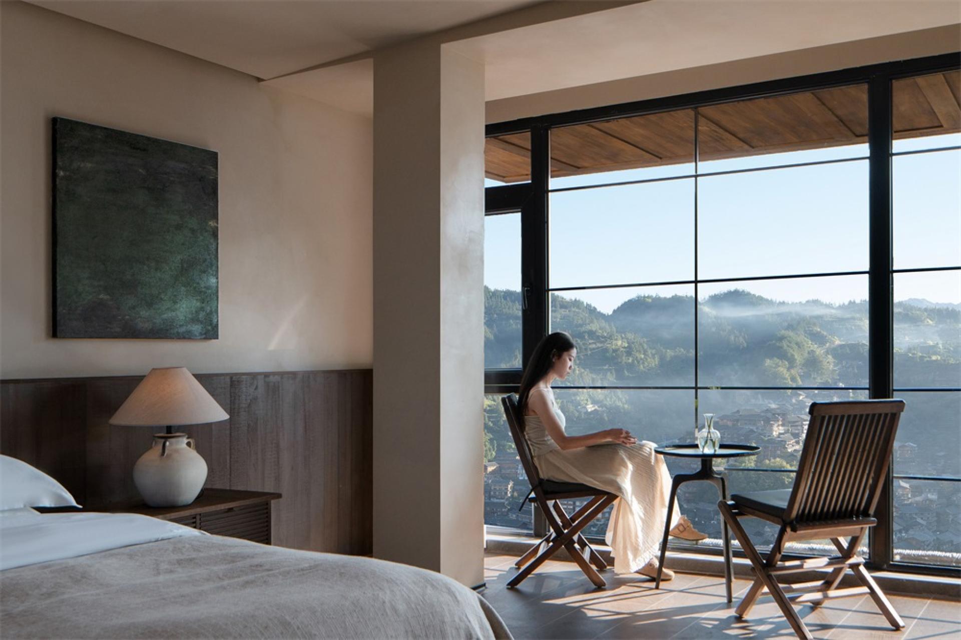 Seven Letters Exhibition Boutique Homestay, designed by Liang Yuji, reinterprets the meaning of dwelling in the mountains. Located in the Miao region of Xijiang, Guizhou, the 1000m² space explores the theme “Returning inward, exploring outward”, creating a design philosophy rooted in emotional comfort and cultural reflection. The project responds to modern fatigue and the yearning for simplicity, crafting an environment where architecture and nature converge harmoniously.