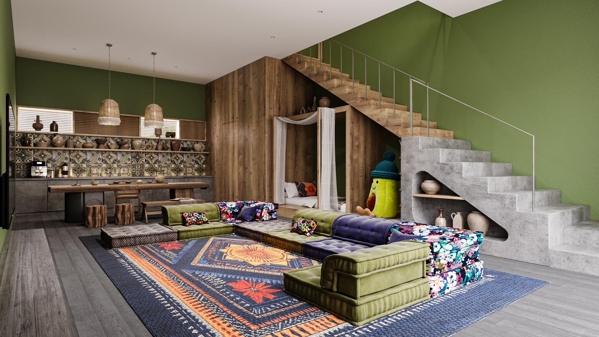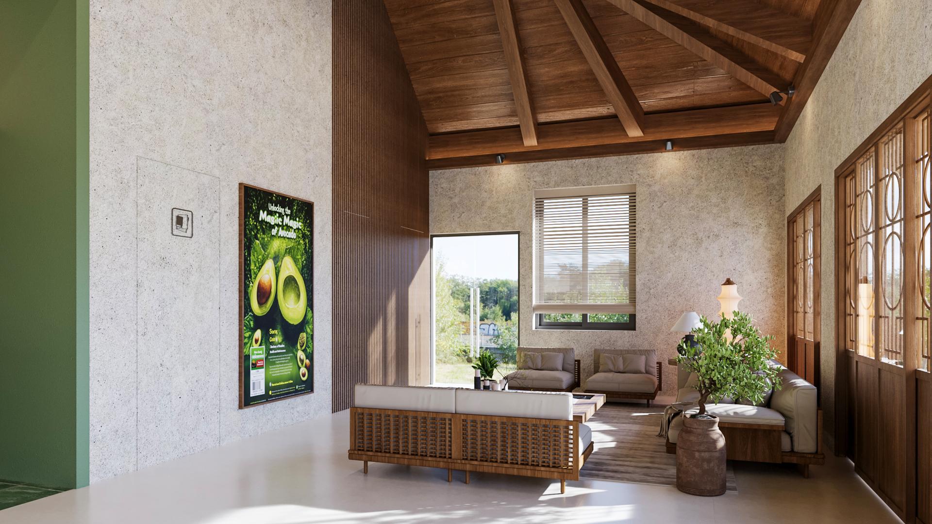 Menglian, this land has nurtured diverse ethnic cultures such as Dai, Lahu, and Va. Its unique geographical climate provides ideal conditions for the avocado industry. Our design inspiration is deeply rooted in the soul of this land, extracting core design elements from the Va ethnic group's clothing patterns, traditional headdresses, and mystical ox totem worship; the traditional clothing colors of the Lahu ethnic group; and the architectural layout and color aesthetics of the Dai ethnic group's "Nayun Ancient Town." These elements are not simply replicated but are deconstructed, reorganized, and artistically refined, transforming them into the textures, colors, and narrative language of the space.