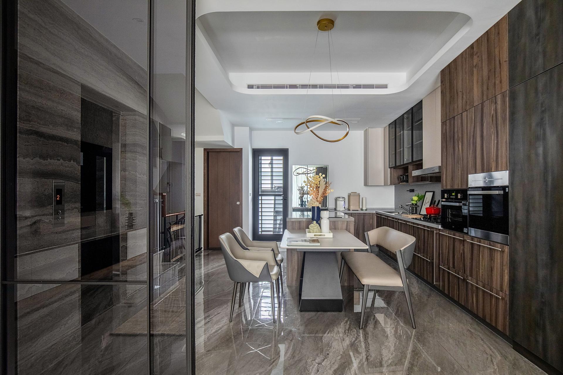 Environmental restraint is embedded, not performed. The developer’s kitchen units and the elevator wall are retained, then visually aligned through tone and datum so that they dissolve into the larger composition. Waste is avoided, coherence strengthened. The outcome is a setting that sustains closeness without compression, privacy without distance. It is a house that supports work, care, and rest with composure, inviting the family to move, pause, and reconnect with unforced grace.