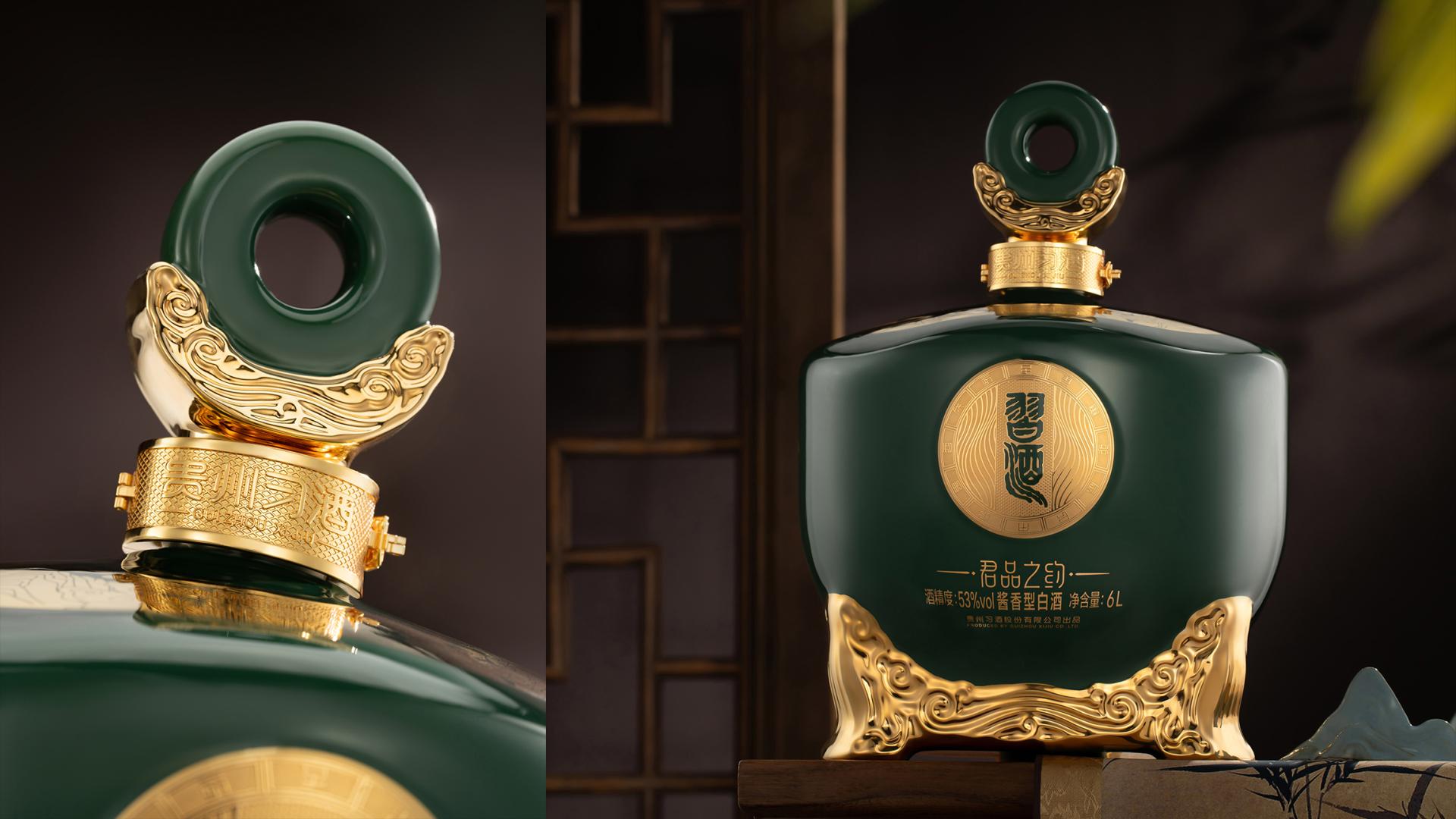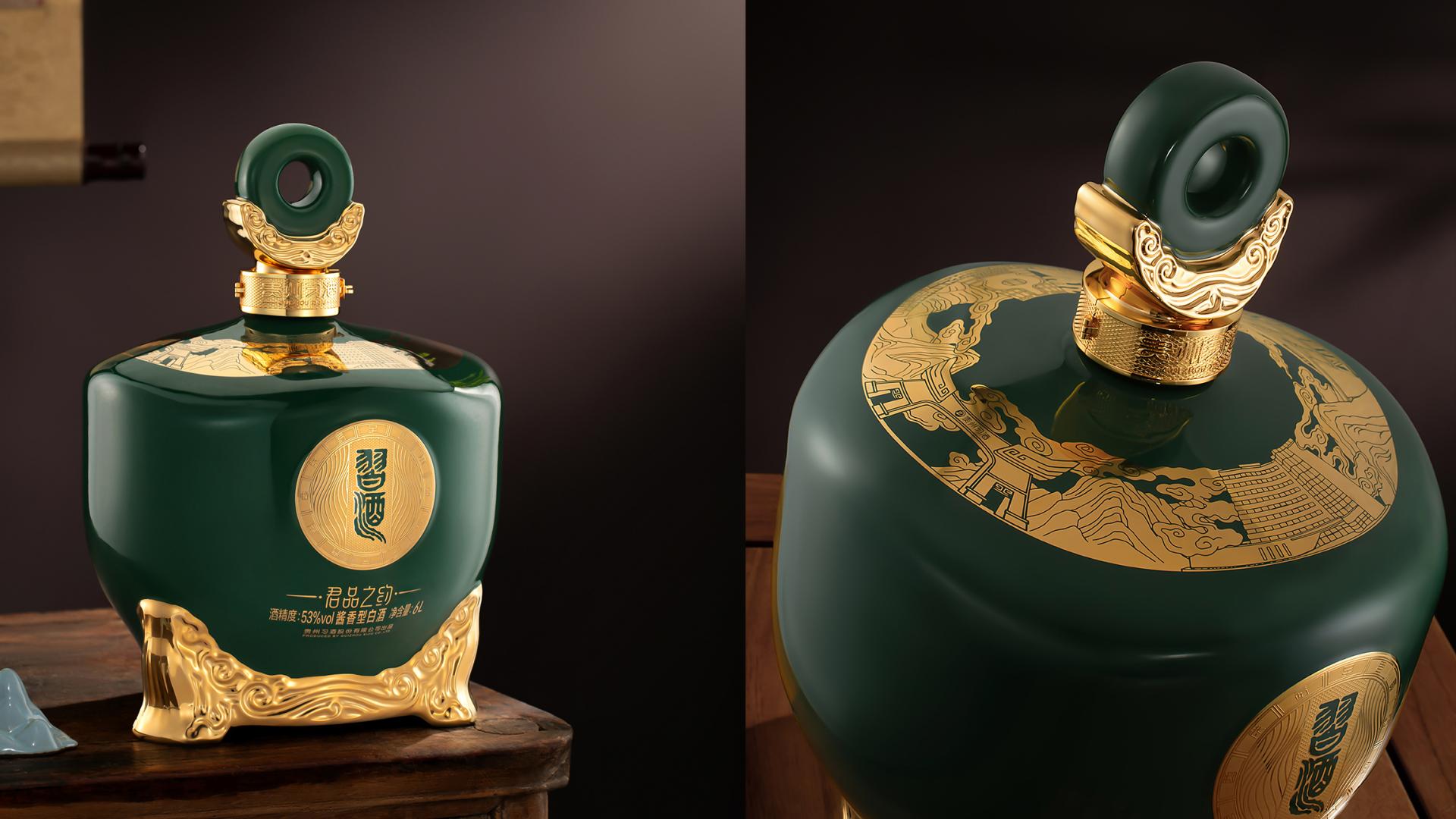 Xijiu's appointment, the beauty that arrives as expected, appreciates the beauty of time and the mirror of years with you. The packaging of Junpinzhiyue wine products is mainly jasper and gold, and the overall elegance is grand. The body of the altar is based on the ancient timekeeping instrument - the sundial, symbolizing the gift of time. The top of the jar is engraved with Xijiu's iconic building, which is an exclusive design for the Xijiu Junpinzhiyue activity route. The altar cover is composed of jasper and auspicious clouds, implying "all the best" and "wealth and longevity".