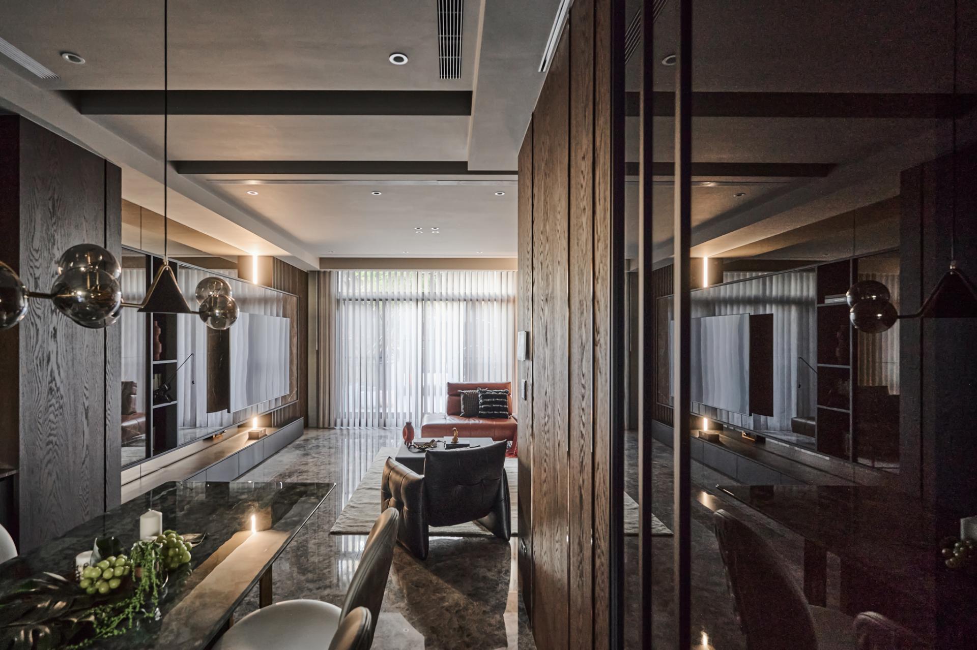 This exceptional duplex residence redefines contemporary luxury living for a family of five, masterfully balancing refined aesthetics with practical functionality. The design philosophy embraces a sophisticated dark-toned palette, weaving together diverse premium materials to create a layered, luxurious atmosphere that feels both elegant and warmly inviting.