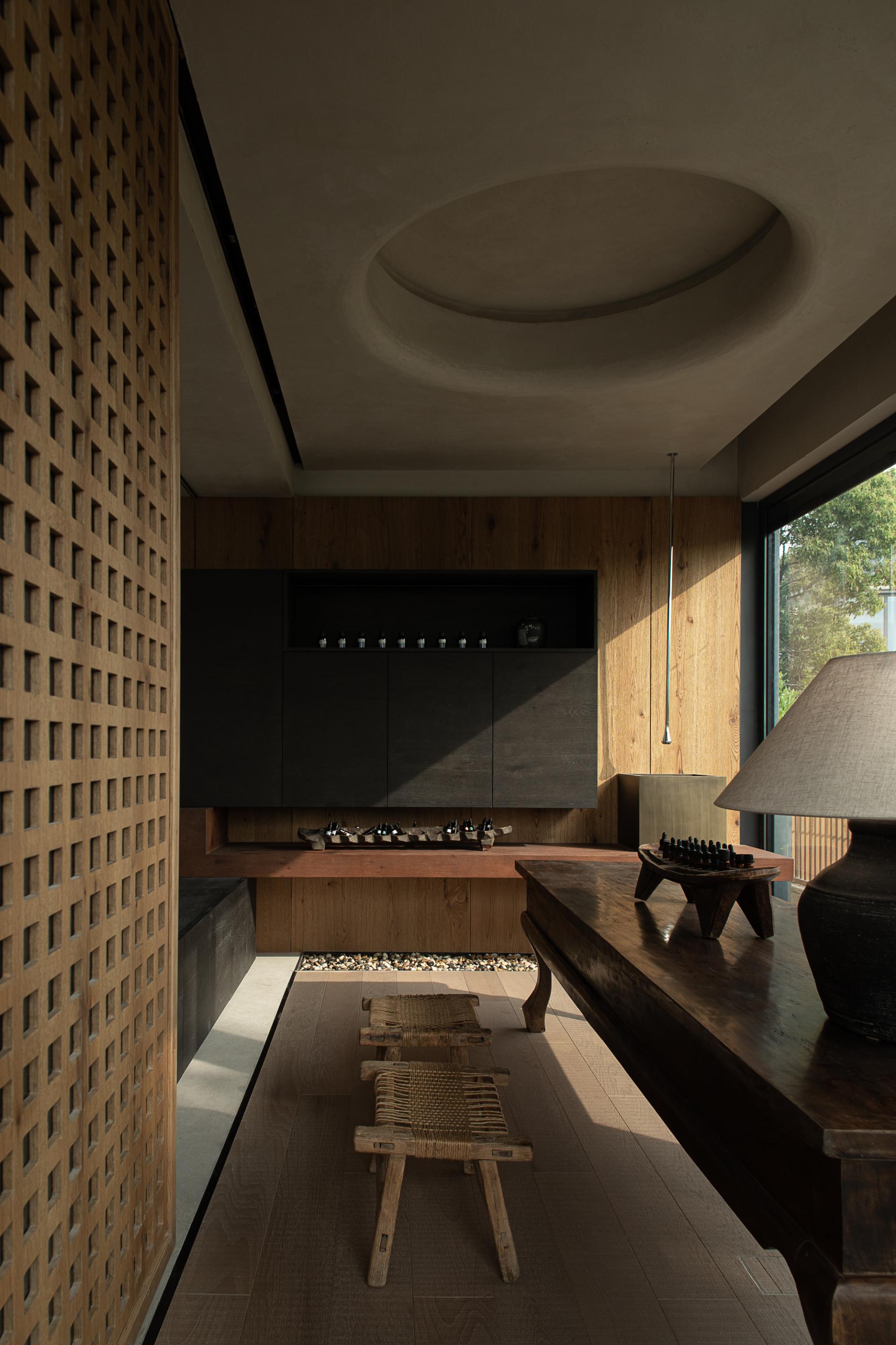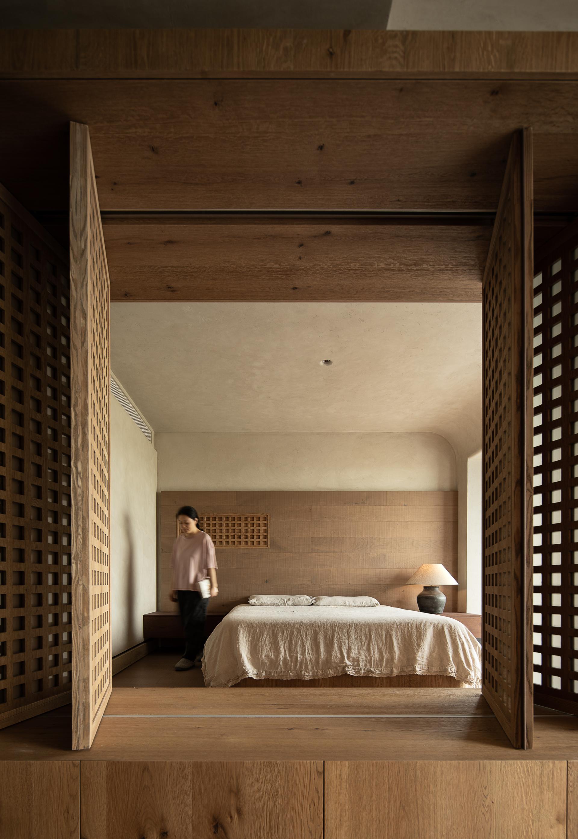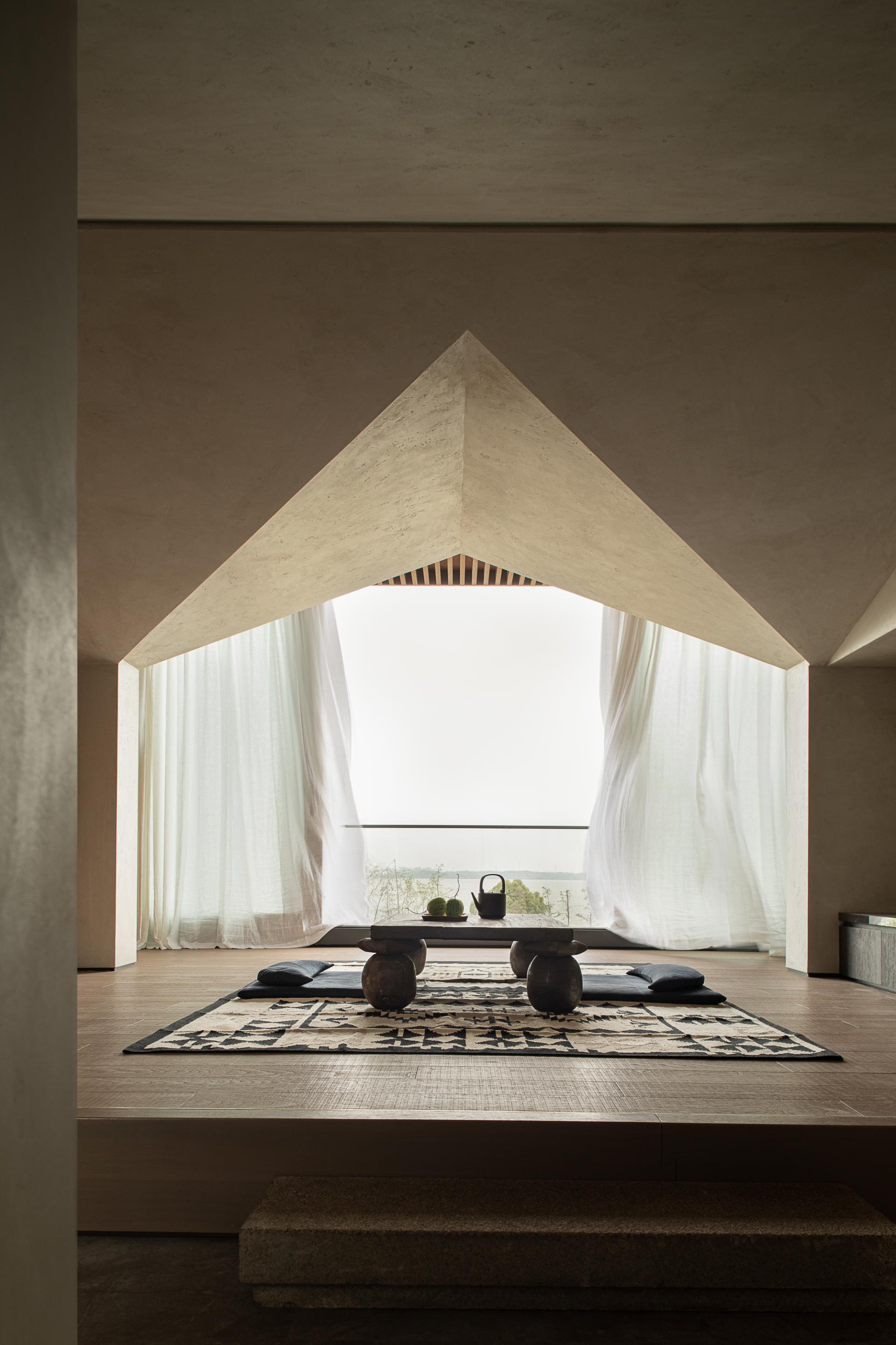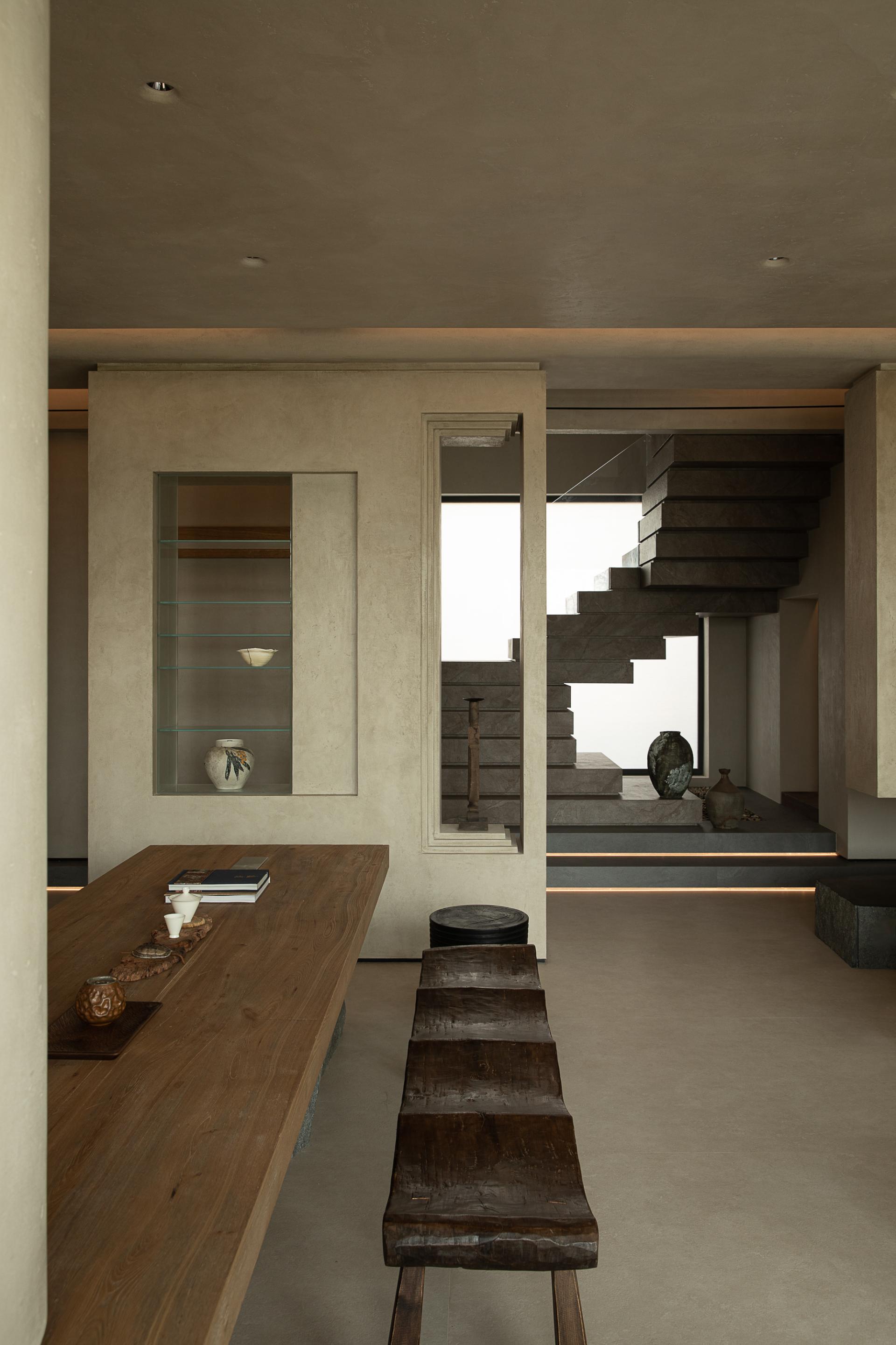The designer said, "I have worked on so many projects, and I have never been so moved by the joy of the homeowners after any of them landed This joy does not come from the designer's "sense of completion", but from the homeowner's "sense of use" of the space - she began to slowly read this home, seeing it as an extension of her body, a rhythm of daily life, and living with it as a natural state. The first floor is an open horizontal living area, with no boundaries between the tea room, restaurant, and reception area. A room without functional segmentation, without a "background wall" pointing, only a freely arranged and flowing flow. Life is not arranged, but rather stretched out in harmony. Whether a space is upscale or not is never judged by whether the materials are expensive or the furniture is neat, but by whether the homeowner is willing to stay and open their heart to coexist with the space. And she, willing. Not only was she willing, but she also entrusted her emotions, stories, memories, and even silence to this space. She is not 'using' it, but 'conversing' it. And this space did not disappoint her either. The room on the third floor has no ceiling and retains the original roof structure. Although the space is small, it has the widest view and is her favorite place to be alone. She said that the wind is very light, but it can also soften people's hearts. The wooden floor is made of teak wood, which has not been decorated with any cuts or patterns; Anti corrosion wood is burnt black, stable and heavy; The wall is coated with artistic paint, without patterns or color jumps - simple and heavy, this is the bone of space. And the stone stools, wooden coffee tables, and small items she collects are dynamic and breathing. The end of design is not the work, but whether the person who truly lives in it, from morning till night, always coexists with the space in a comfortable, peaceful, and relaxed manner.