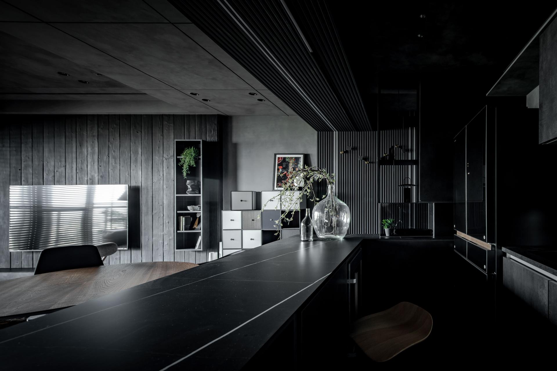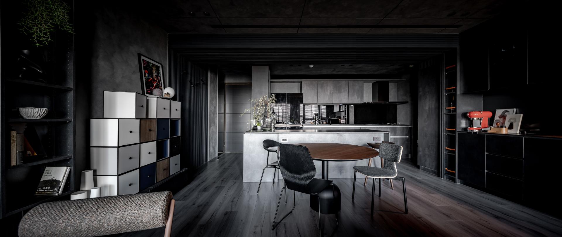 Nocturne Noir is a residential retreat nestled near the Hsinchu Science Park in Taiwan, designed for a professional couple who sought a home that would serve as both a private sanctuary and a space for refined living. Their lifestyle—shaped by high-paced careers and a deep appreciation for wine, gastronomy, and minimalism—inspired an interior concept grounded in quiet sophistication and immersive calm. The spatial arrangement of the apartment flows around a central open-plan core, where the kitchen, dining, and living areas merge into one unified expanse. This layout not only maximizes connectivity and movement but also sets the stage for a holistic sensory experience defined by tone, texture, and natural light. The design draws heavily from the meditative beauty of Chinese ink wash painting, interpreting its tonal depth through a carefully curated spectrum of dark materials. Each surface is selected not merely for color, but for its tactile and reflective qualities. Nocturne Noir is not simply a dark interior—it is an orchestrated composition of light, material, and emotion. It embodies a tranquil cocoon where the pressures of the outside world dissolve, and where beauty, comfort, and thoughtful design converge to restore the soul.