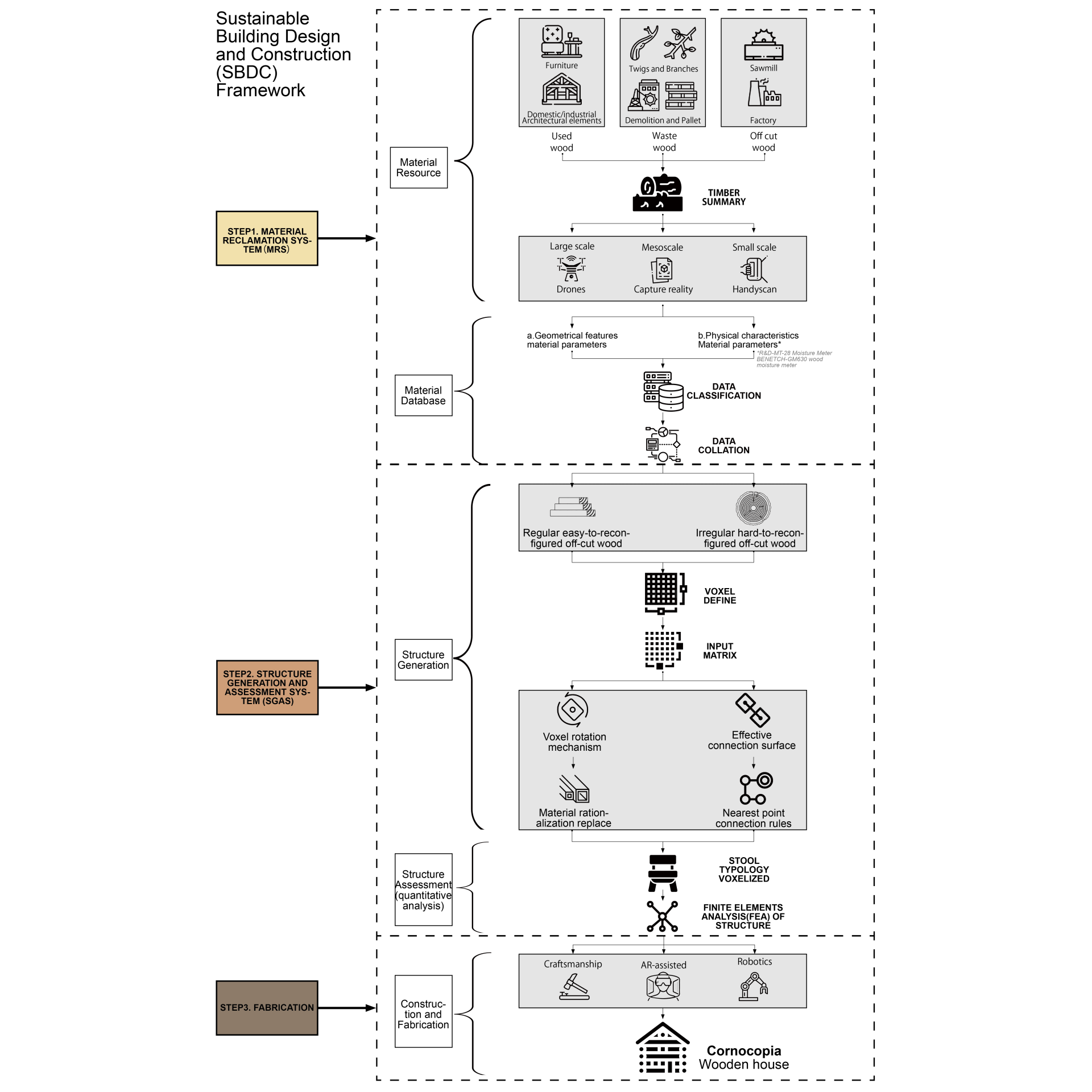 This workflow enables reclaimed wood to be transformed into functional and aesthetically rich architectural elements at scales ranging from furniture to full buildings, offering a new circular design language rooted in material intelligence.