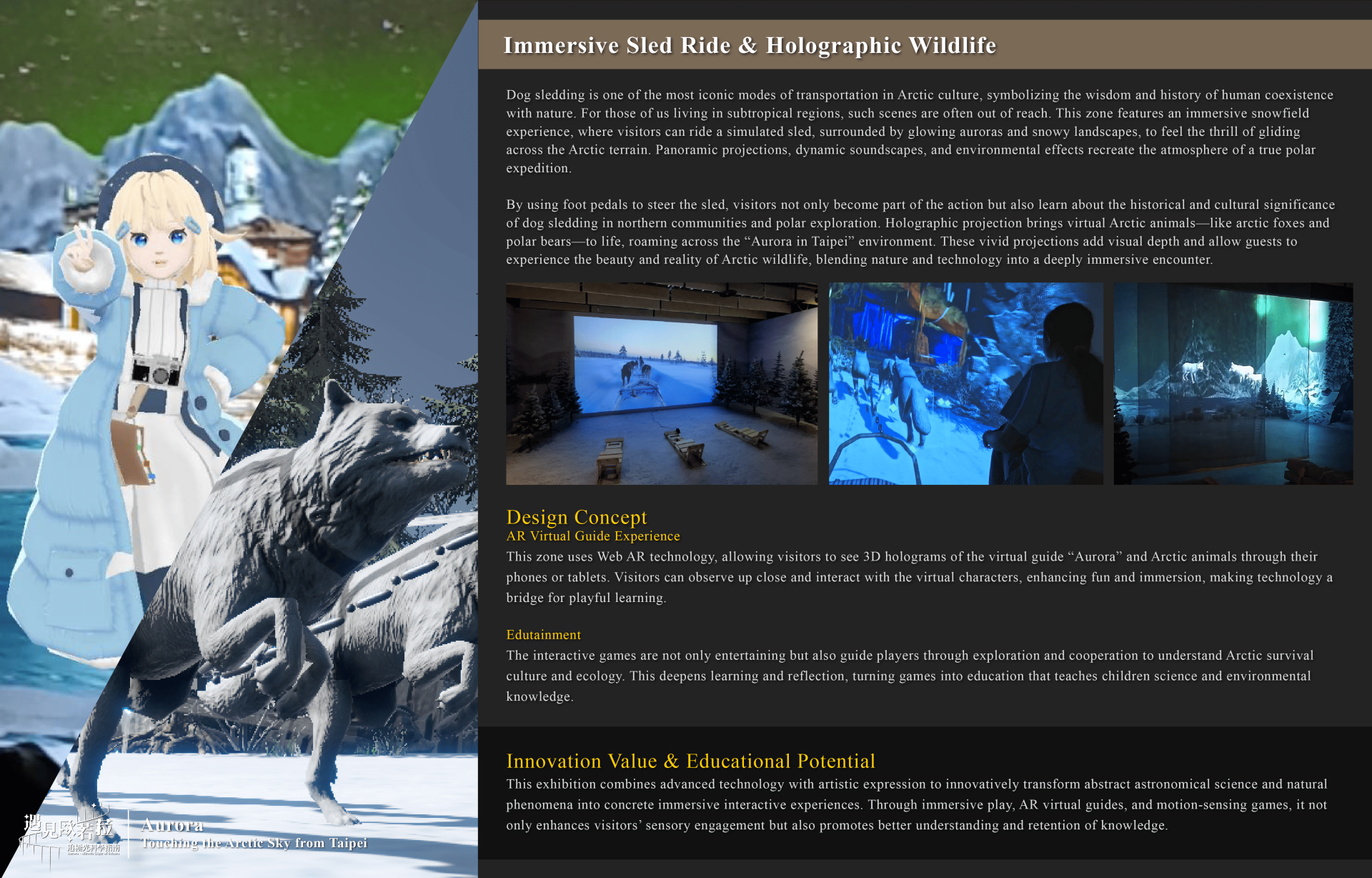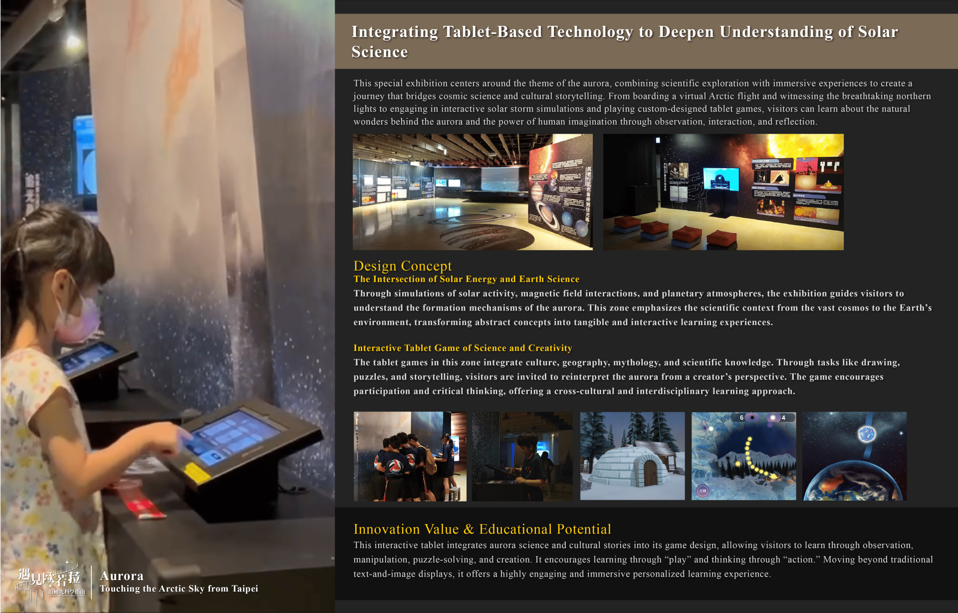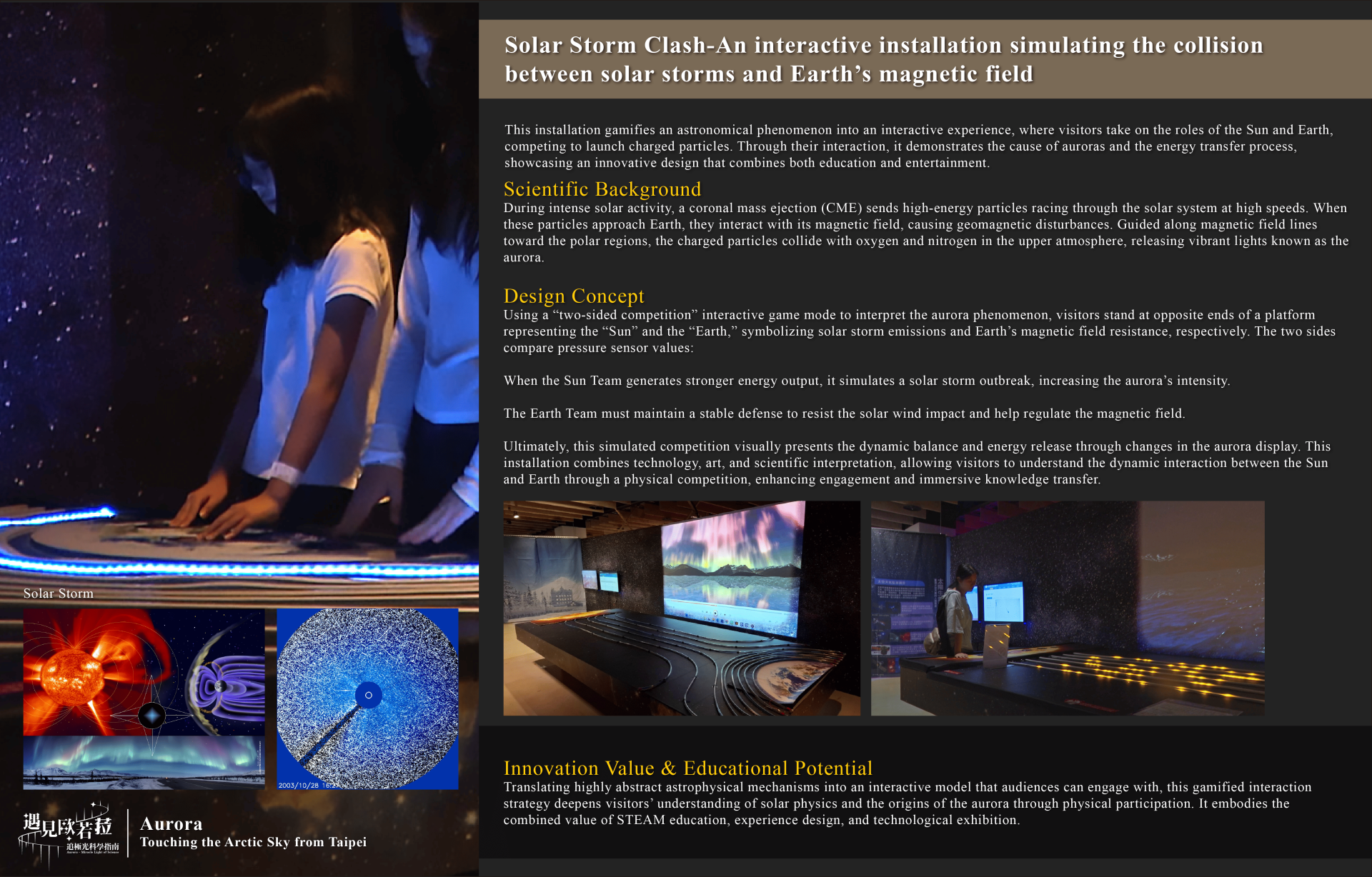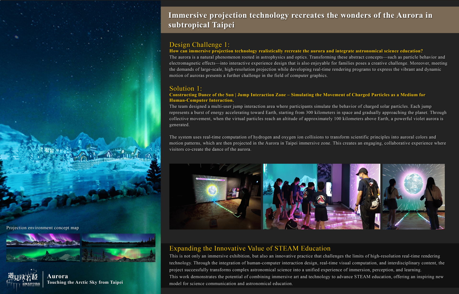 Aurora: “Capturing the Aurora in Taipei” is an immersive exhibition that brings the awe-inspiring spectacle of the aurora to the heart of Taipei, seamlessly blending breathtaking visuals with scientific discovery. Through advanced interactive projection technology, the exhibition vividly recreates the vibrant colors of the Arctic sky, offering visitors an authentic journey into the world of auroral phenomena.
