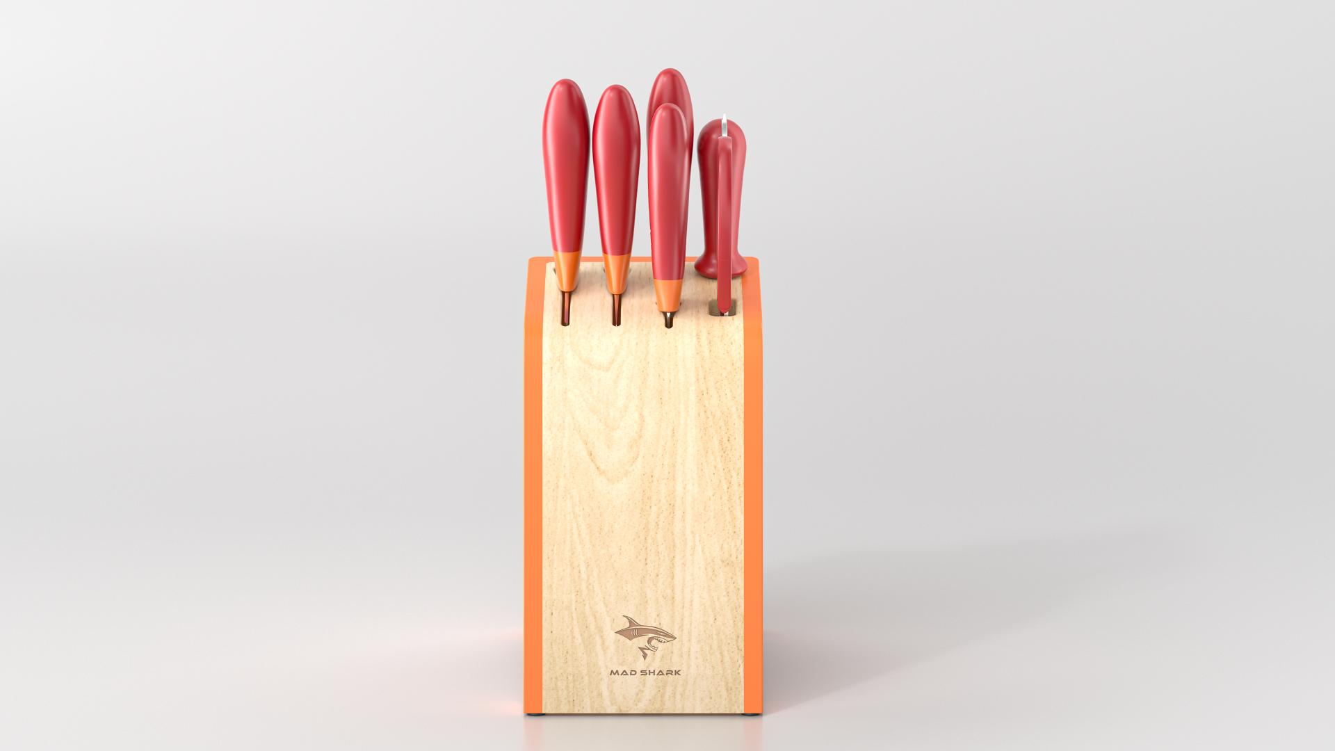 Ergonomic and Iconic Design: The handle of the Colorful series knives incorporate a bionic shark-inspired design, with the tail cleverly mimicking the sleek, minimalist lines of a shark’s head. This design not only aligns seamlessly with the Mad Shark brand’s aesthetic but also imparts a distinctive and recognizable identity. The handle gradually tapers from the tail to the neck, an ergonomic design that significantly enhances grip comfort and stability, making cutting effortless and natural.