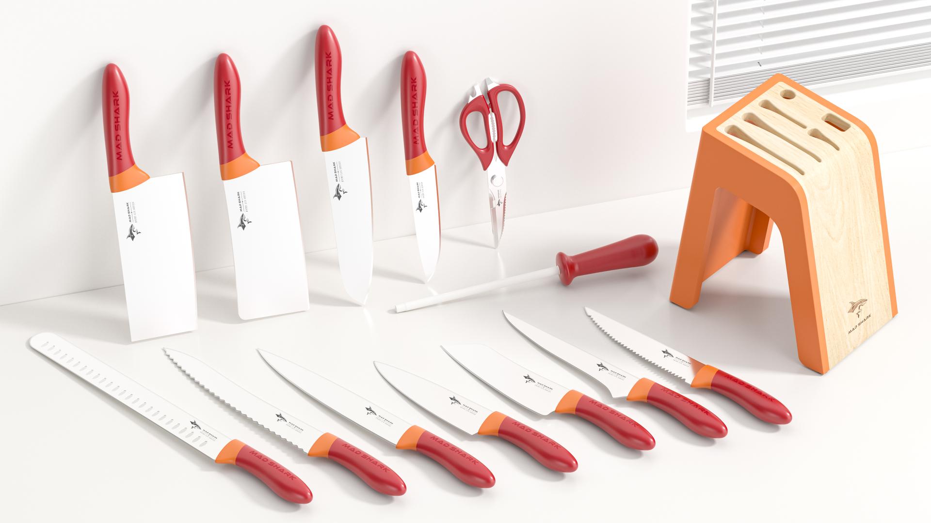 Vibrant Color Palette: Breaking away from conventional tones, the Colorful series knives adopt a bold red-orange color scheme. This vibrant combination injects a burst of energy into the kitchen, making the cooking process more enjoyable and infusing the space with renewed vitality.