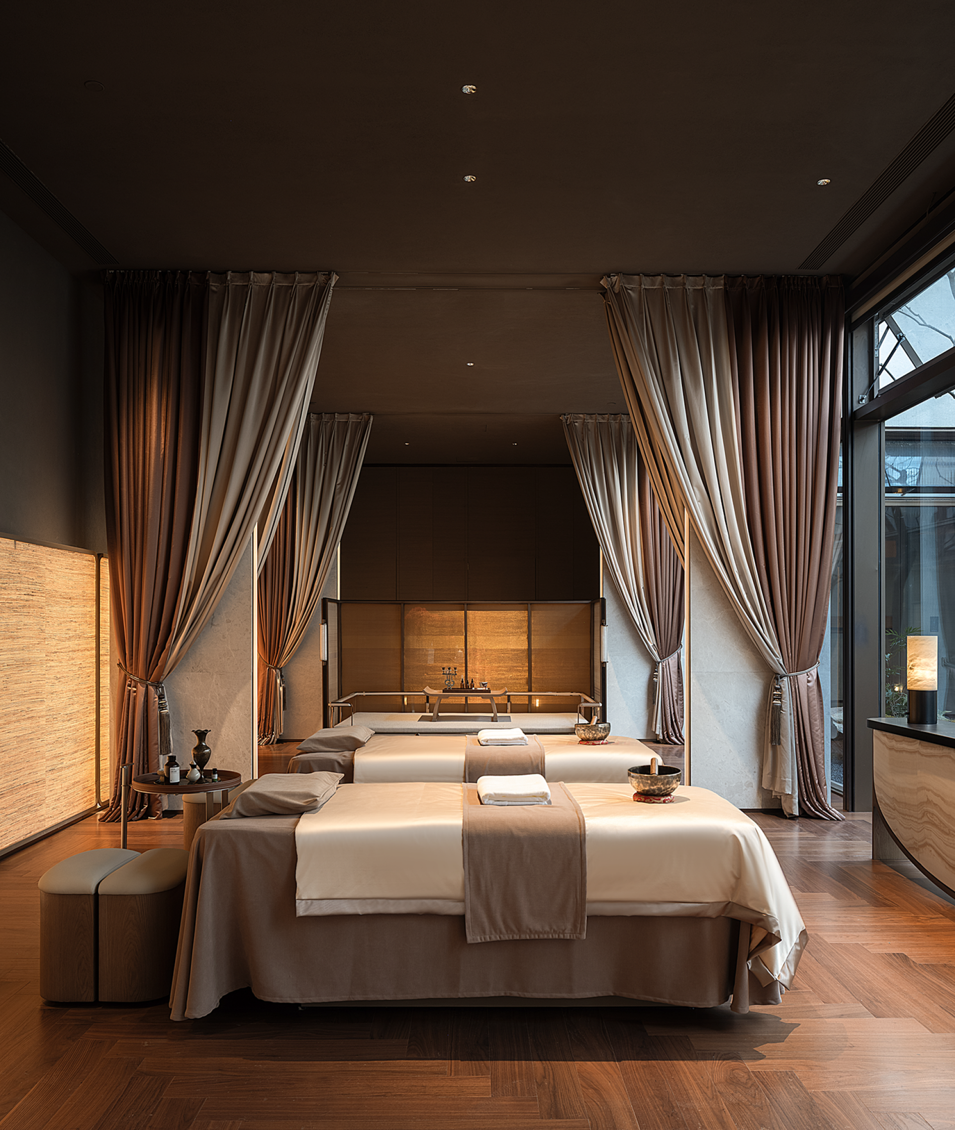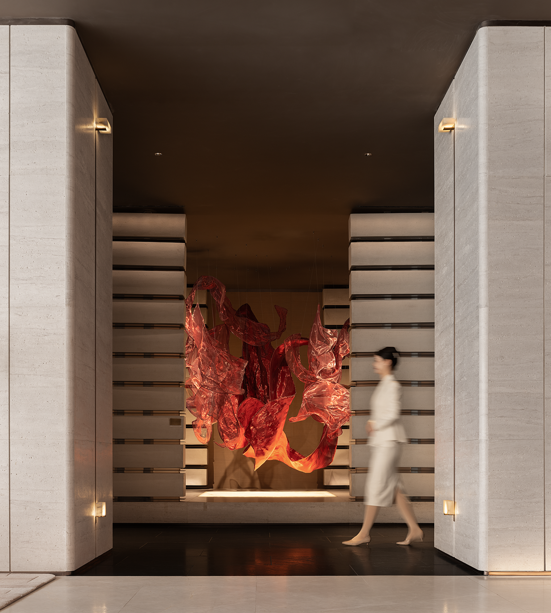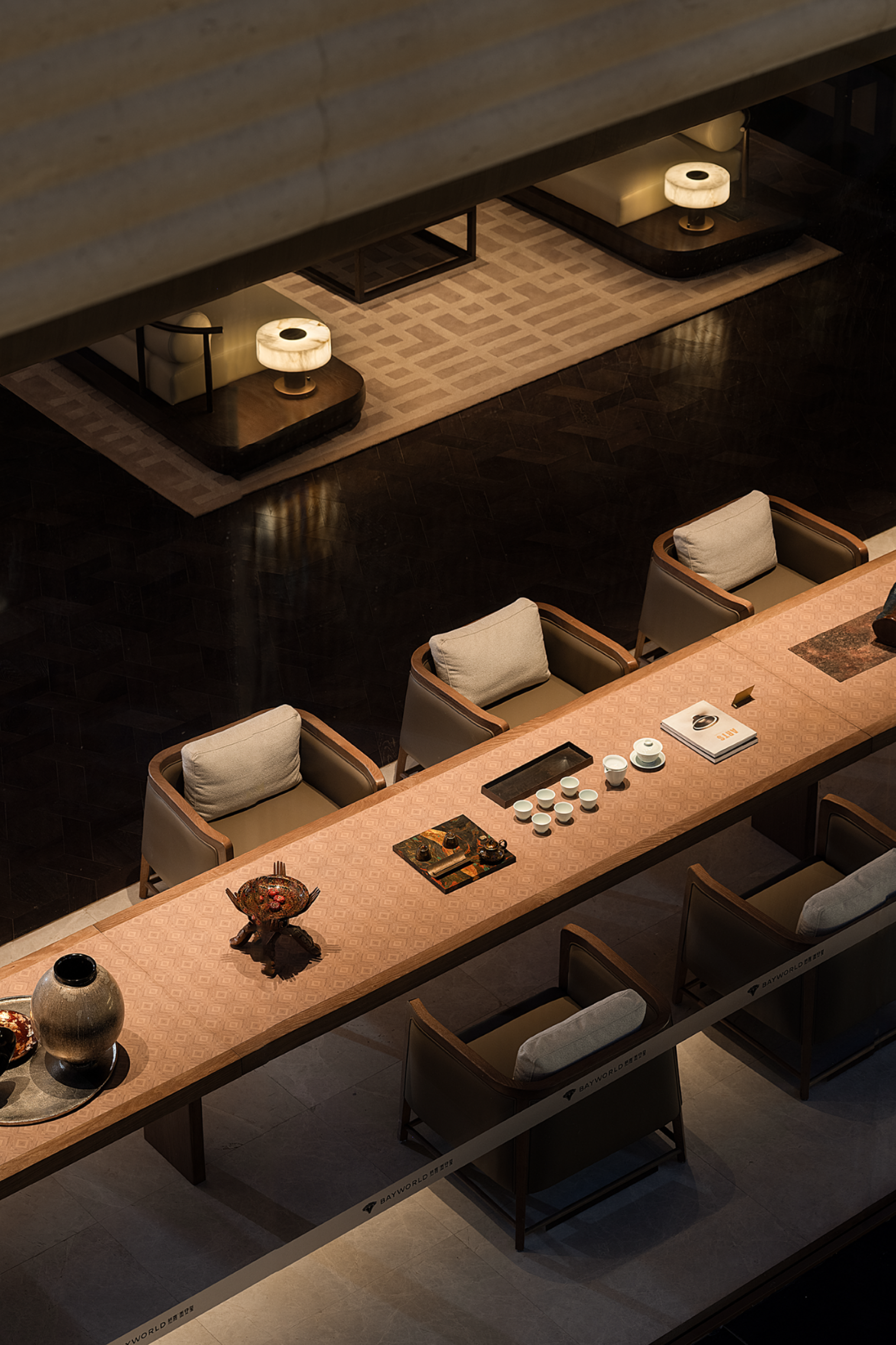 Xian Xi club draws inspiration from modern Oriental aesthetics, integrating the city’s historical richness into spatial design. It is a high-end social space with comfort and all-in-one functions. It creates community warmth with areas like sunken courtyard of nature, urban business space, wine tasting lounge, spa, boardgame space and indoor golf. It blends in culture and art. It meets both public and private needs. When clients are living here, they feel like in a five-star grand establishment. This transforms a temporary sales office into a timeless space of prestige. Here, a room is not just for temporary stay, but the beginning of new possibility.