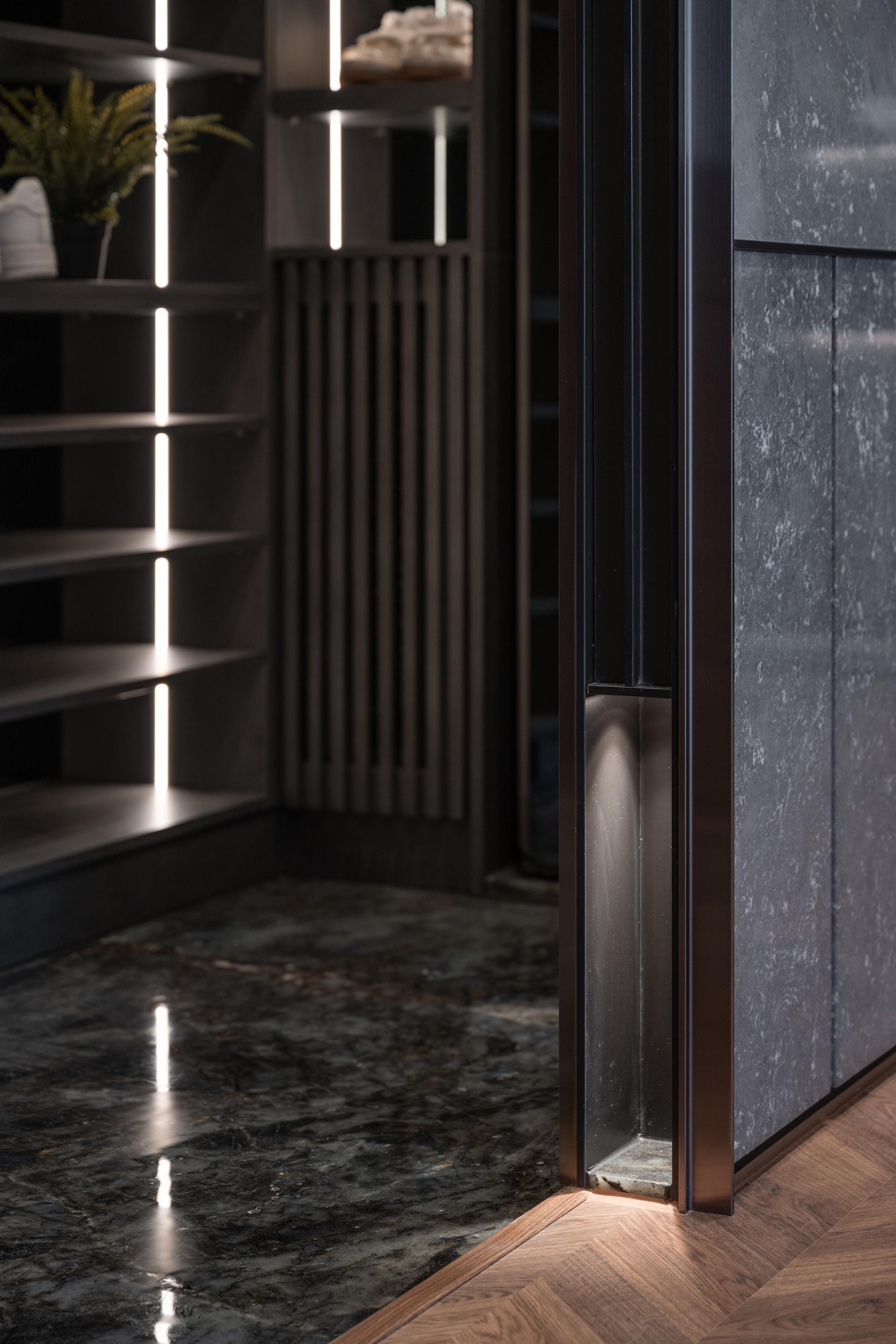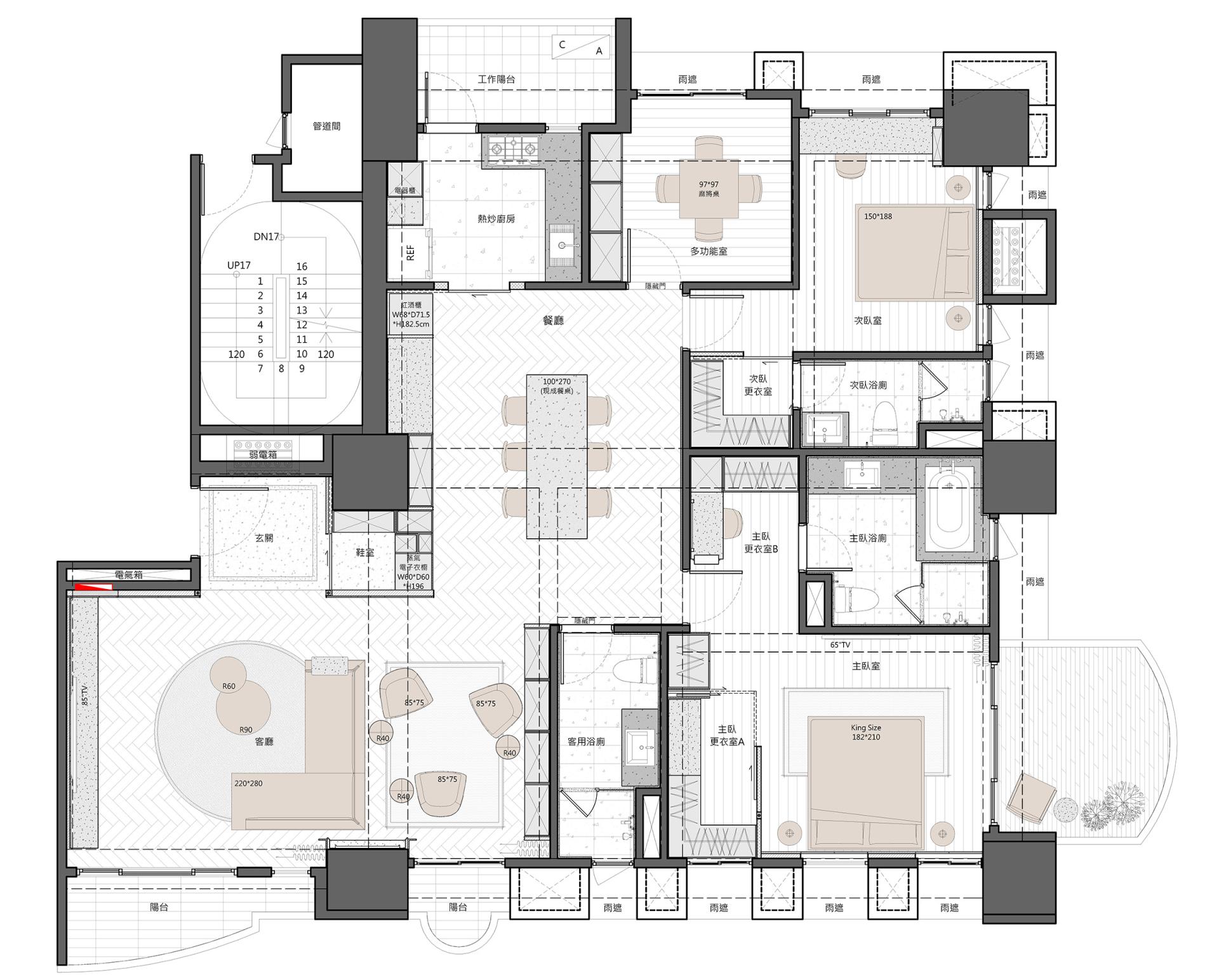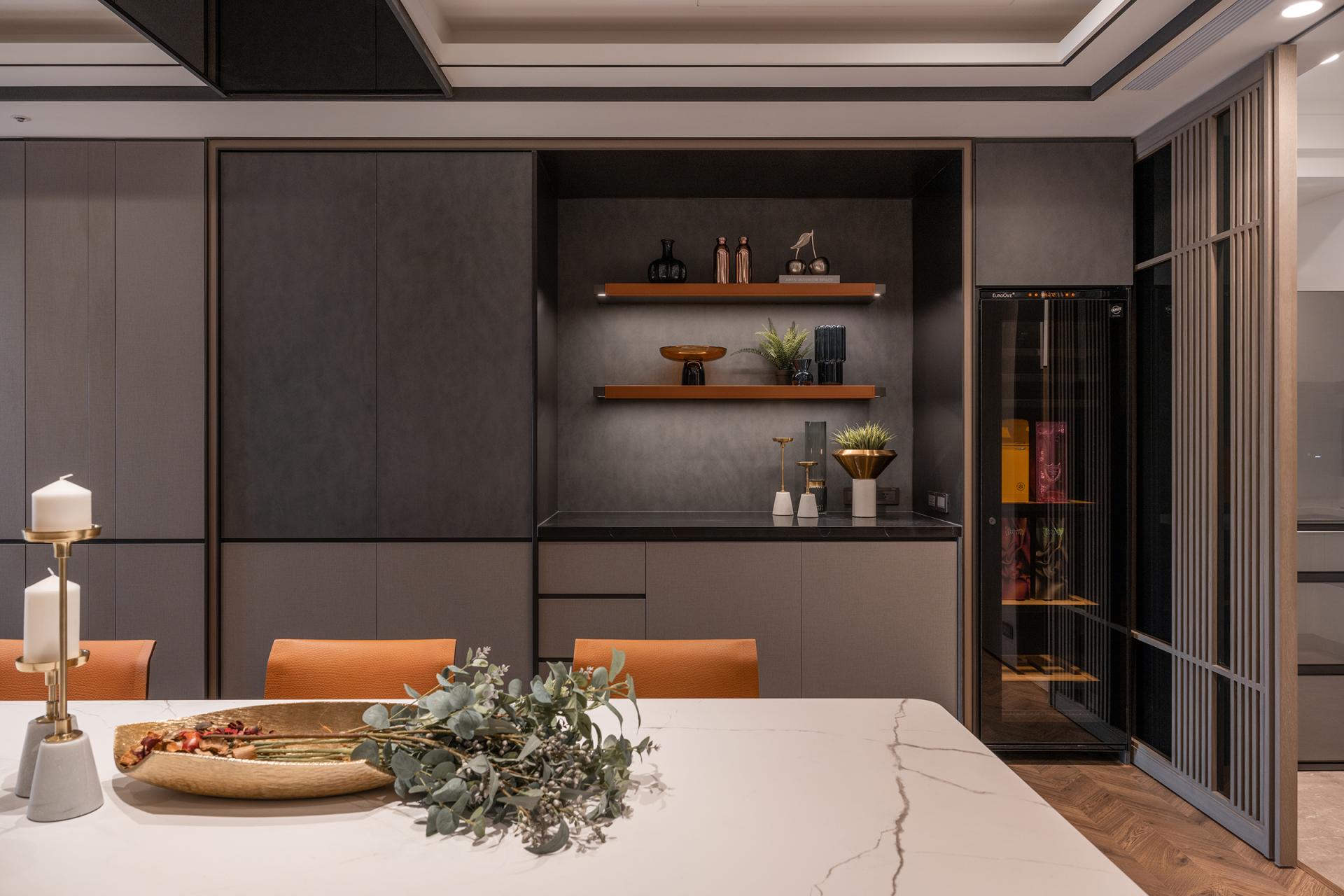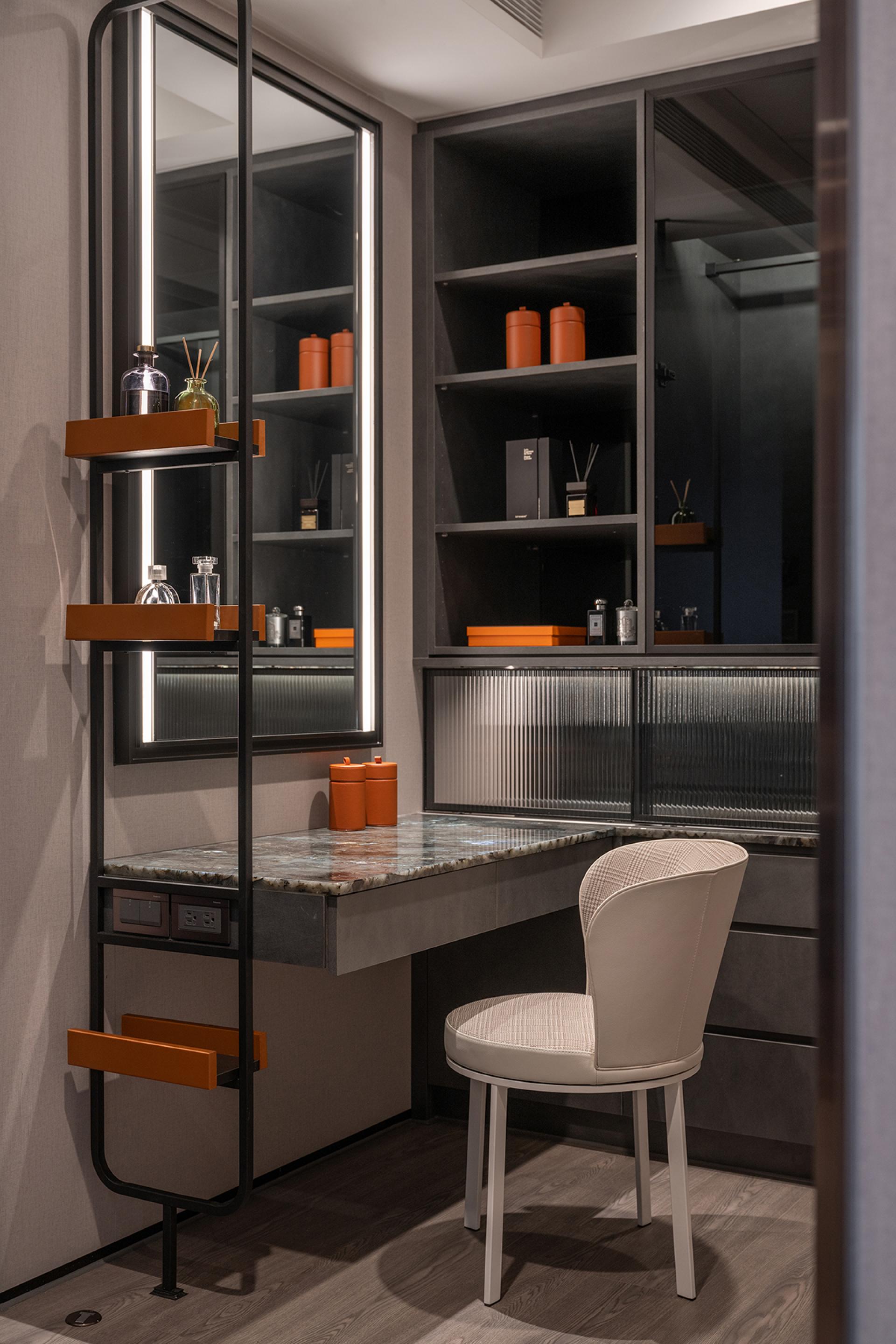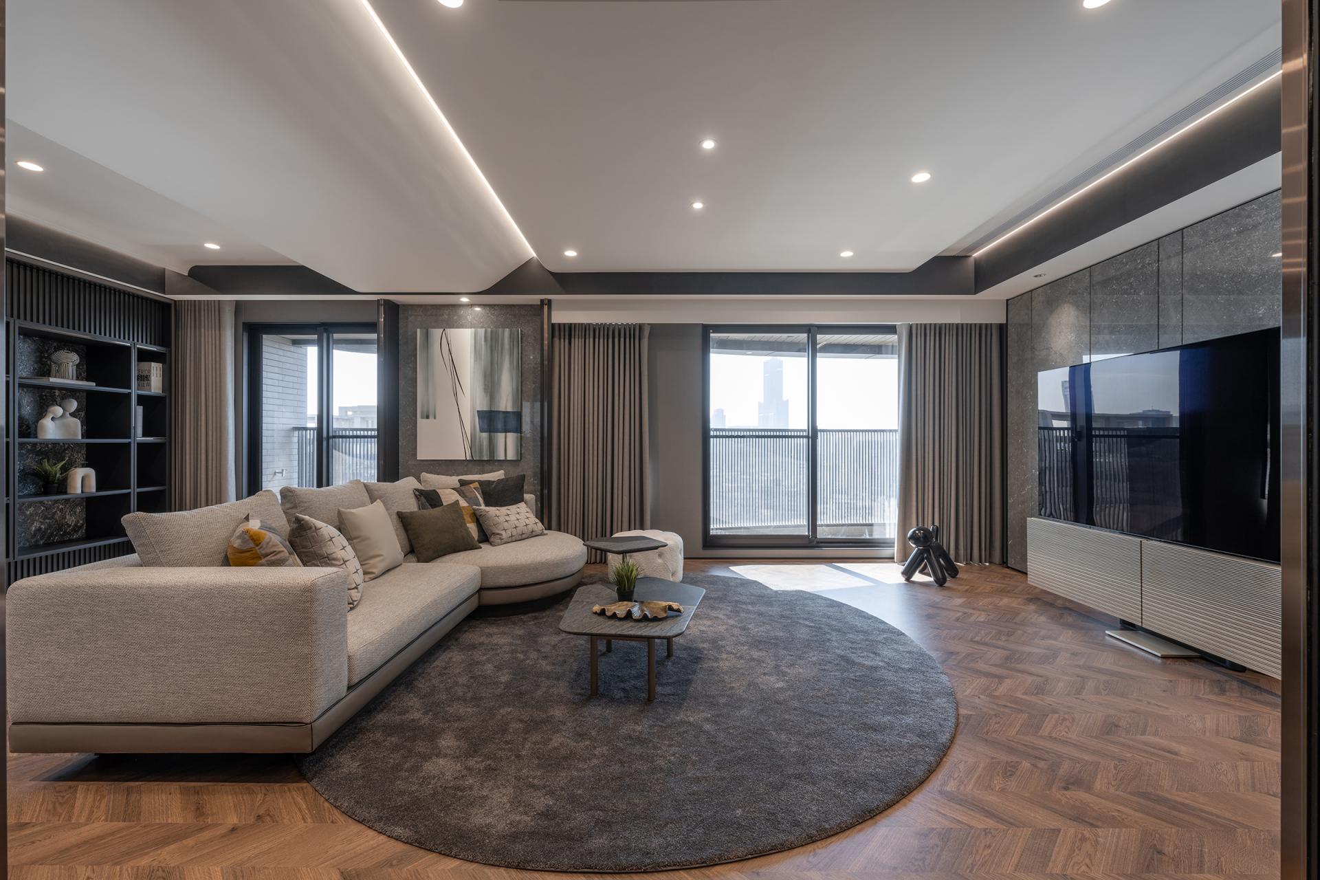 This project involves a newly built approximately 1,600 square feet residence, designed with the vision of creating a tasteful urban home for a modern man. The overall style follows a modern luxury approach, with three main design highlights: the use of stone, the application of contrasting colors throughout the space, and the integration of large beams and structural columns.