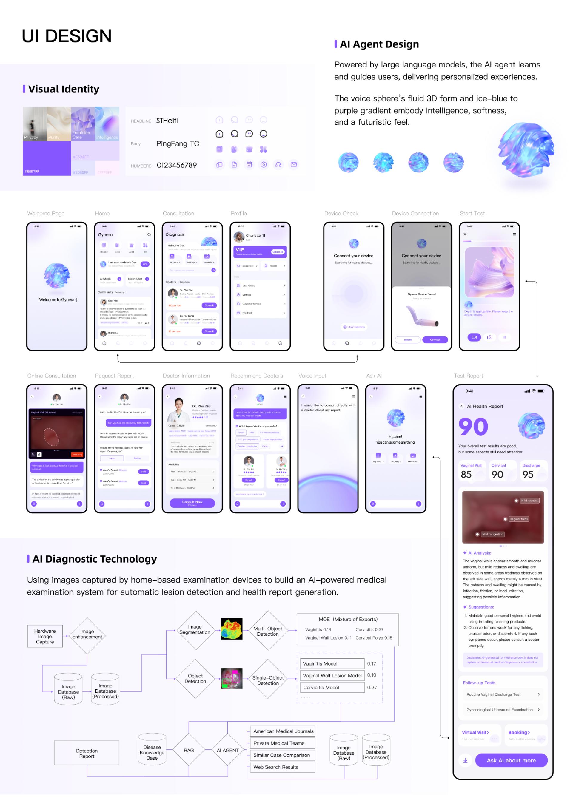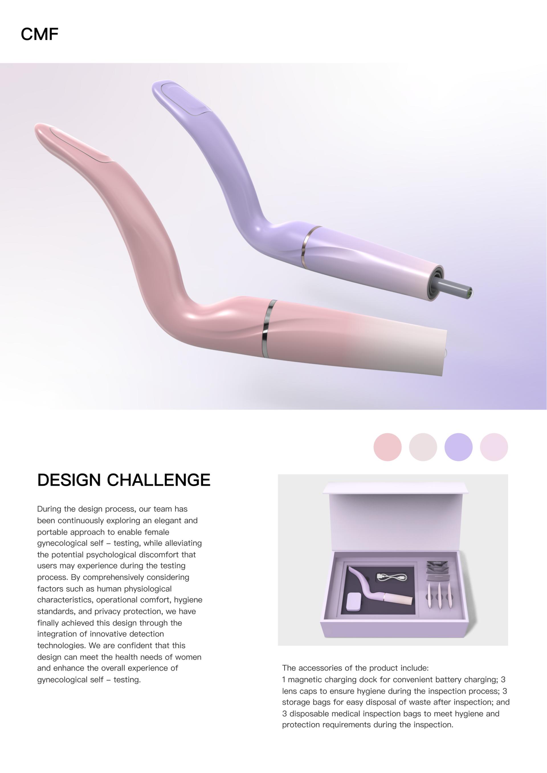 We employ a fisheye-lens endoscope to minimize pain during rotation while enabling early screening of vaginal and cervical conditions. Combined with an AI diagnostic system, the solution offers professional online guidance — achieving a dual improvement in both product experience and medical service delivery.
