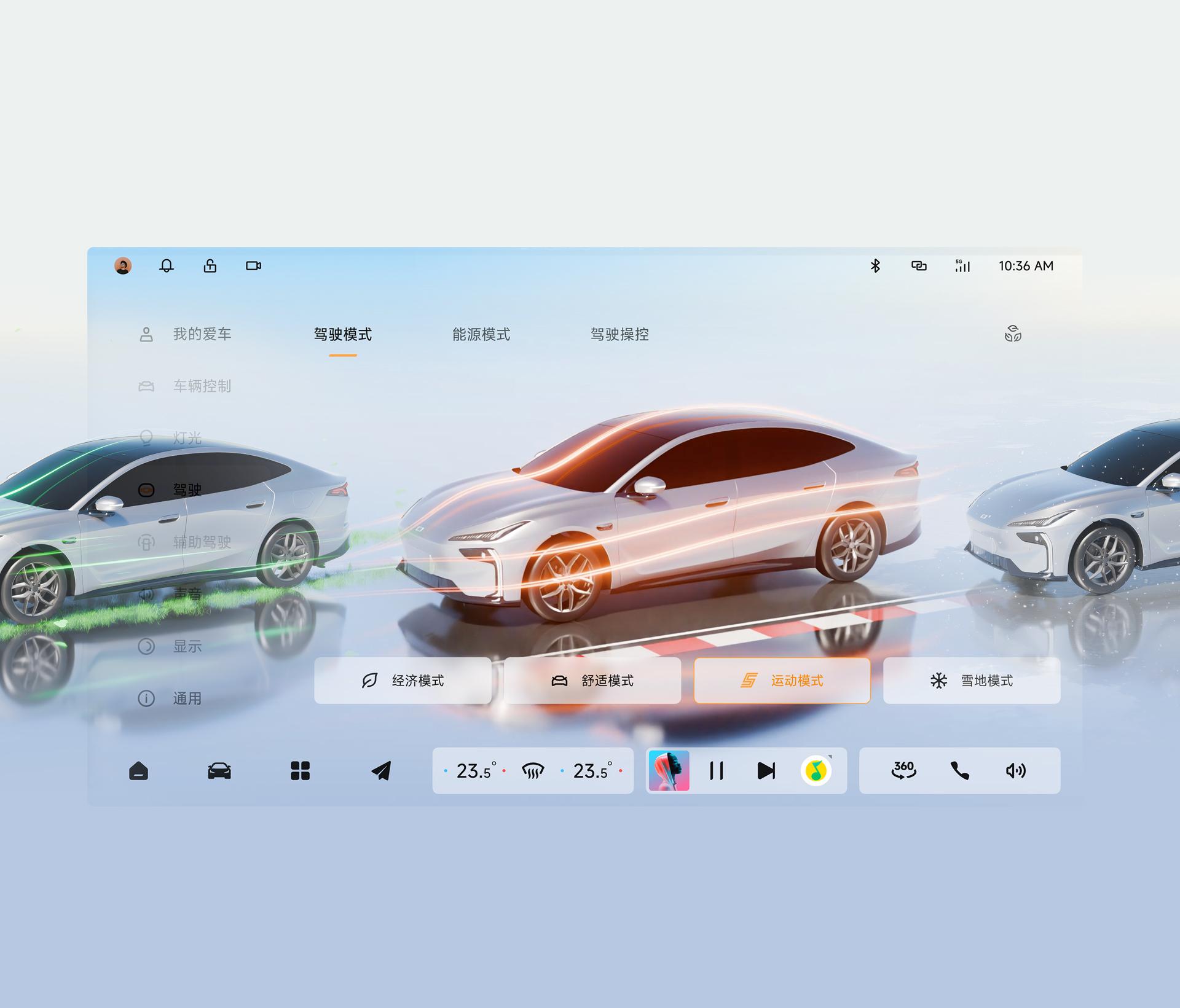 Using the Rubik’s Cube as both design language and intelligent core, the interface architecture is constructed with clear layers and rigorous logic. The Cube serves not only as a visual element but also as a tangible embodiment of system intelligence. Its adaptive reconfiguration and transformation make the interface flexible, dynamic, and intuitive—responding to user needs with an almost lifelike intelligence and precision. Centered on user experience, the system adopts a seamless, full-scenario design approach—integrating 3D visual elements with gesture-sensing controls and dynamic scene transitions to deliver a smooth, dynamic, and immersive interaction. Animated dynamic graphic design breaks away from the cold, command-driven conventions of traditional human-machine interaction and breathes life into the digital interface and infuses technology with a human touch. The HMI system leverages a digital twin engine to dynamically adapt cockpit interface content in real time based on actual environmental data, making the cockpit a seamless extension of the surrounding environment. Considering different usage habits of global users, clear, universal graphic symbols and multilingual support help bridge cultural gaps, making the interface accessible and intuitive for users across diverse backgrounds.