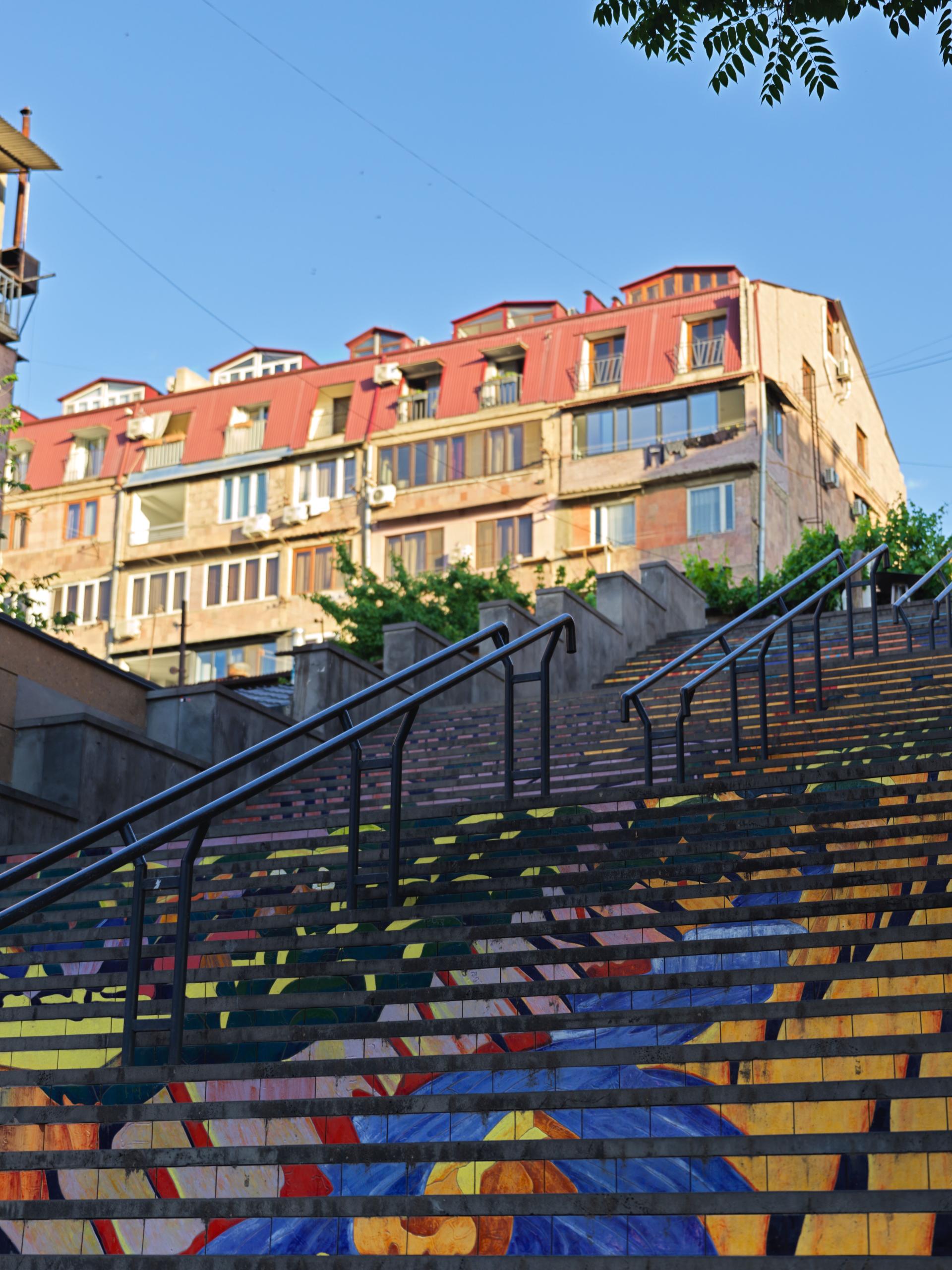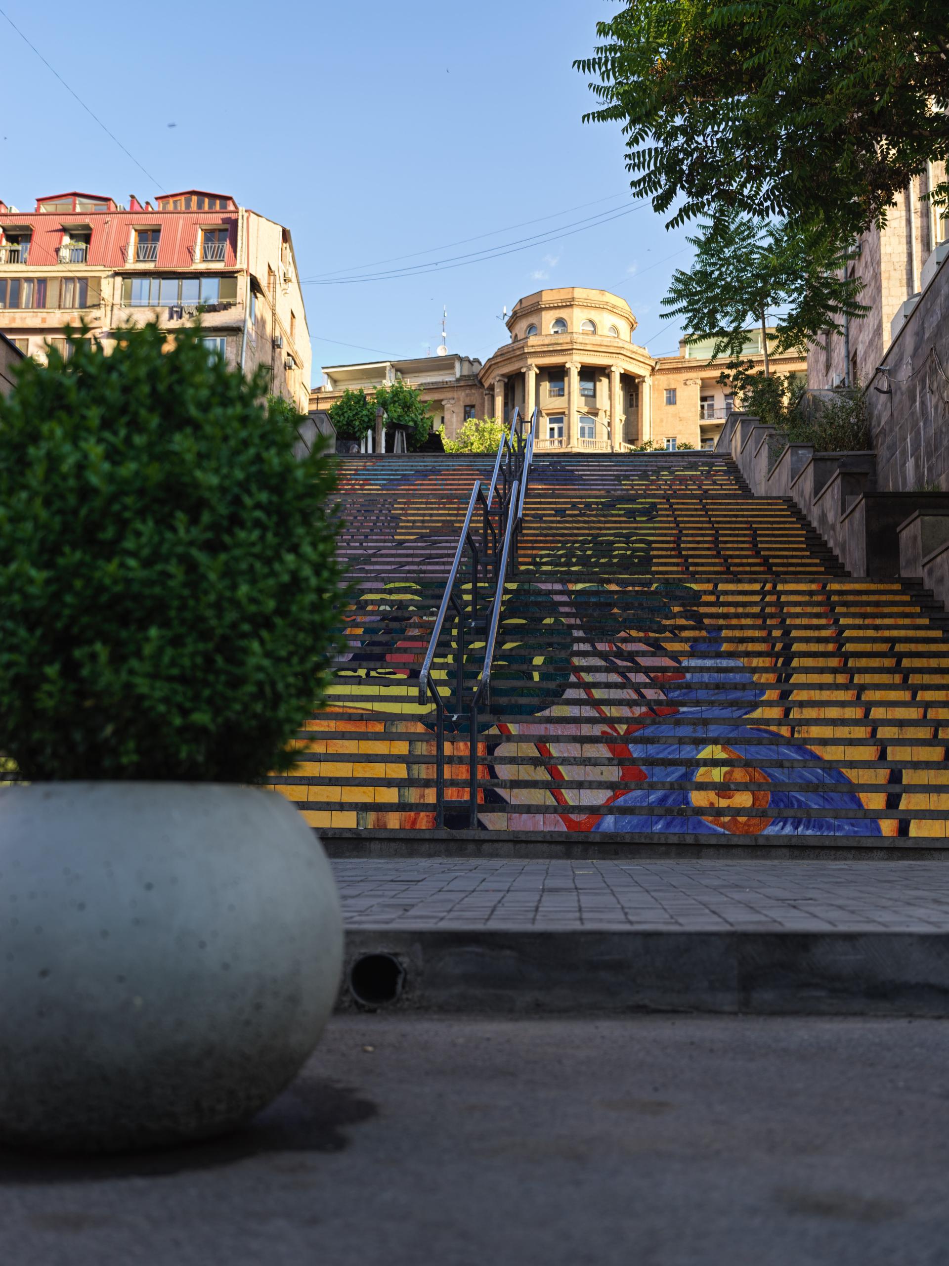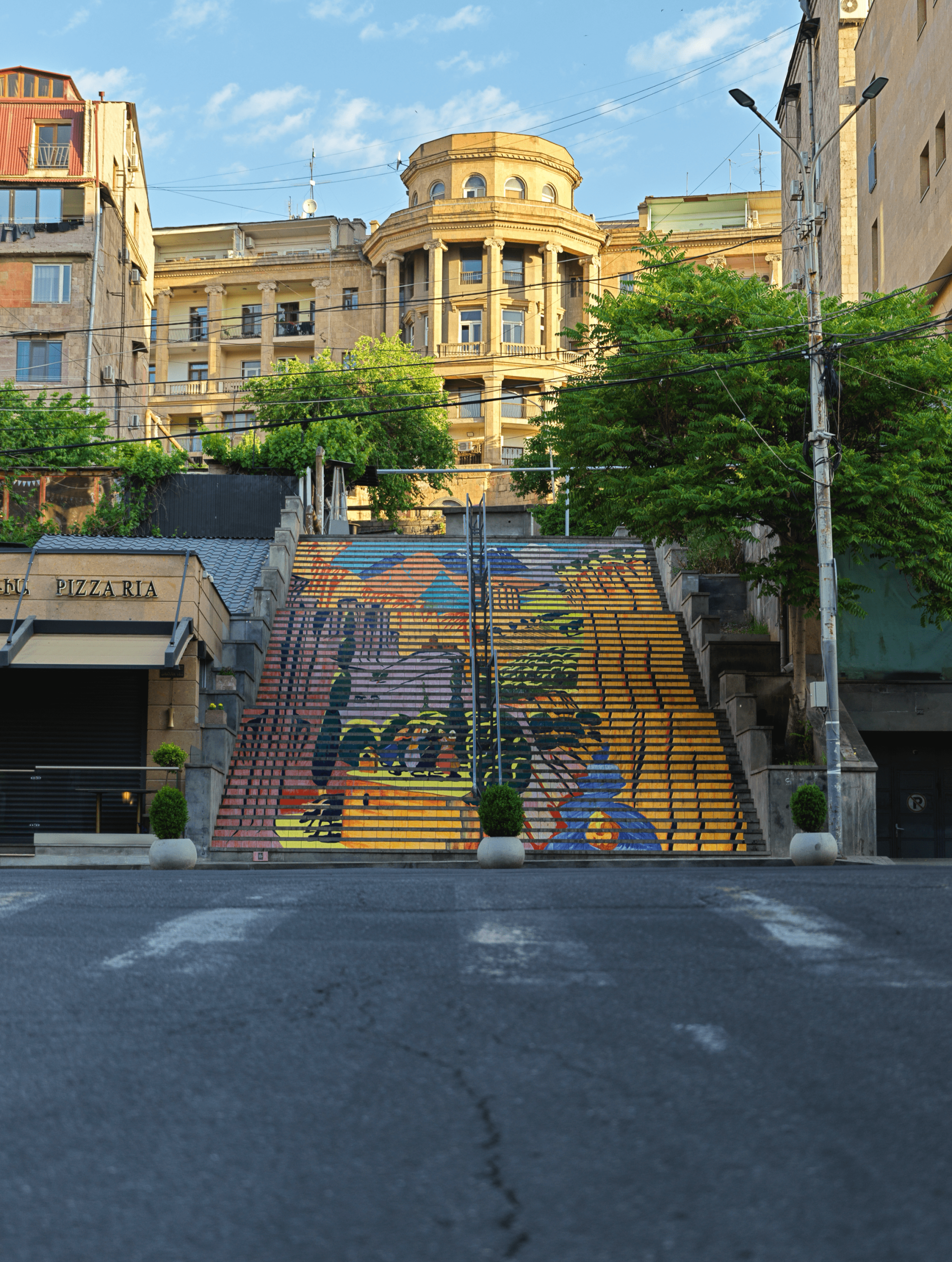 The Saryan Steps project reimagines a central public space in Yerevan by blending urban revitalization with cultural storytelling. Led by the Keron Development Foundation in partnership with the Kentron Administrative District and Mane Tiles, this initiative is a bold expression of Armenia’s evolving approach to public design: one that honors heritage while embracing contemporary aesthetics. Located at Martiros Saryan Street 12, the project transforms a neglected staircase and its surrounding area into a vibrant, inclusive, and inspiring urban environment. At the heart of the project is a striking mosaic reproduction of Martiros Saryan’s celebrated painting “Armenia” - crafted from 1,620 entirely handmade ceramic tiles. This artwork turns the steps into a cultural landmark, offering passersby an immersive visual experience rooted in national identity. Beyond its artistic centerpiece, the initiative includes full-scale beautification: renovation of platforms and retaining walls, expanded greenery, new benches, and fresh landscaping. Safety and accessibility are improved through custom-designed lighting integrated into handrails and pathways, creating a space that is both functional and welcoming, specifically when it is dark outside and people gather around the warmth that those steps vibrate. As part of the Keron Development Foundation’s broader territorial development strategy, the Saryan Steps project aims to improve quality of life in Armenia’s urban core. It does so not only by enhancing the physical landscape, but also by encouraging civic pride, walkability, and cultural engagement. With the Saryan Steps, Yerevan gains more than just a renovated passageway: it gains a living canvas that connects people to place, past to present, and culture to community.