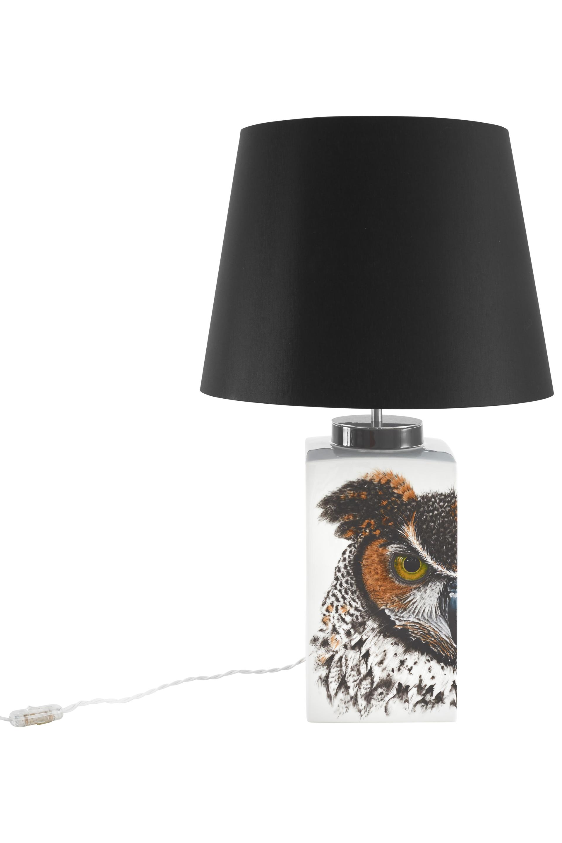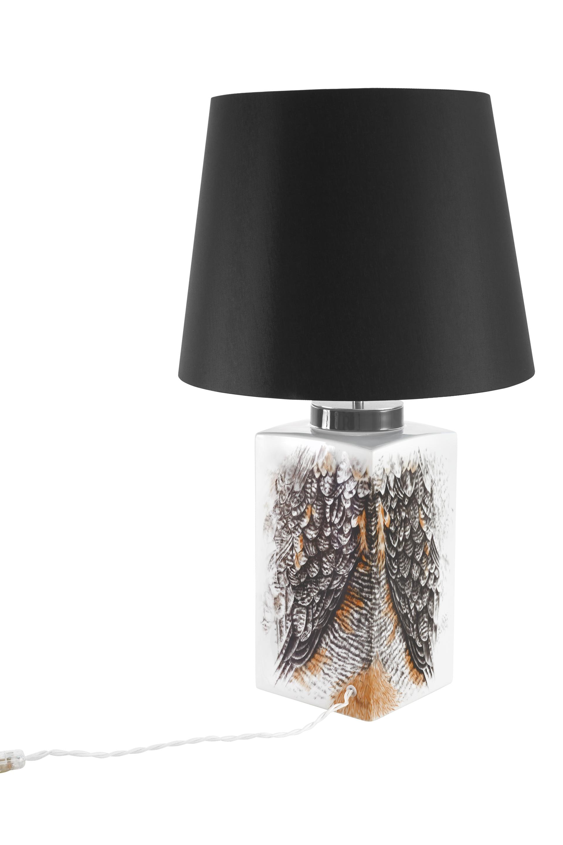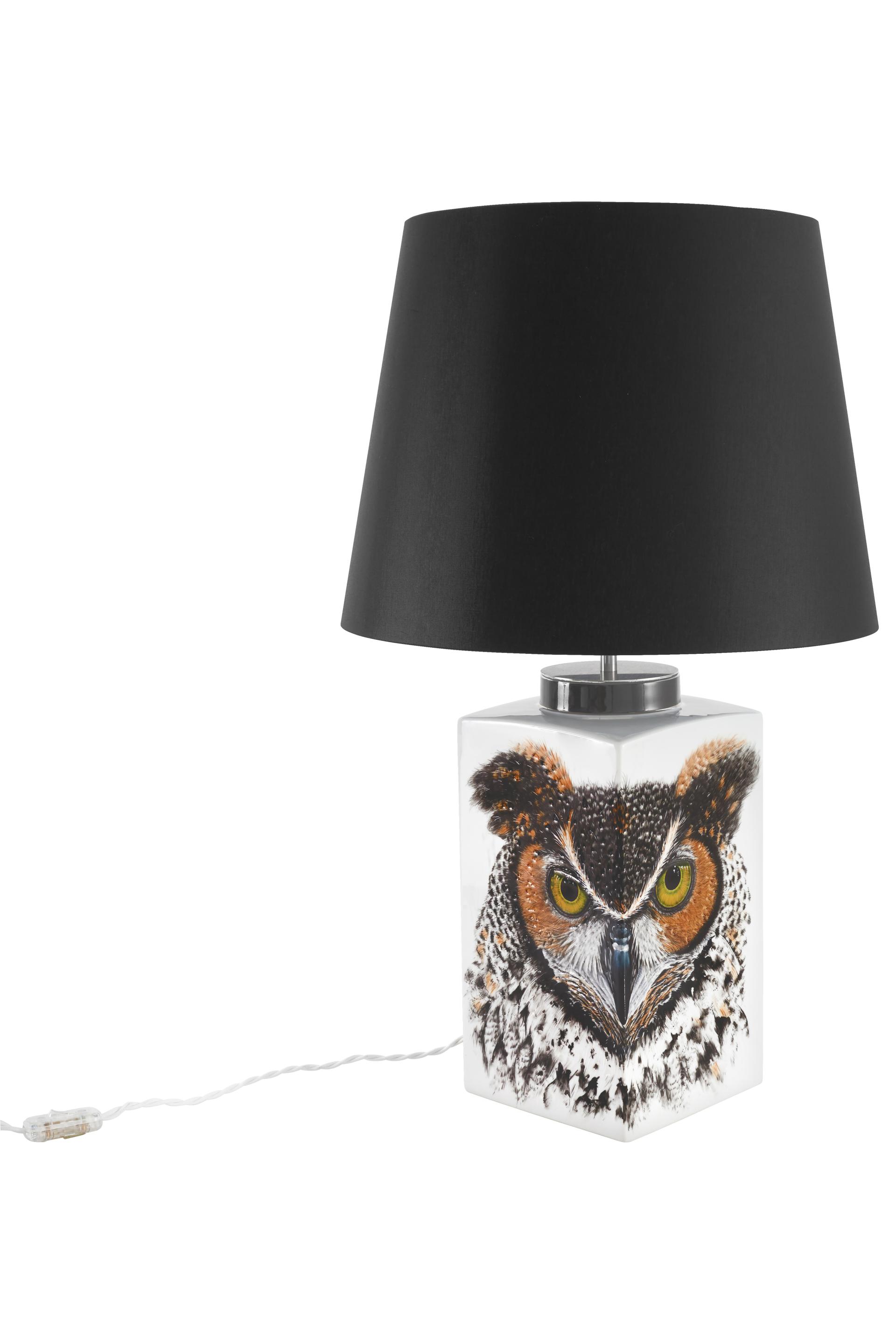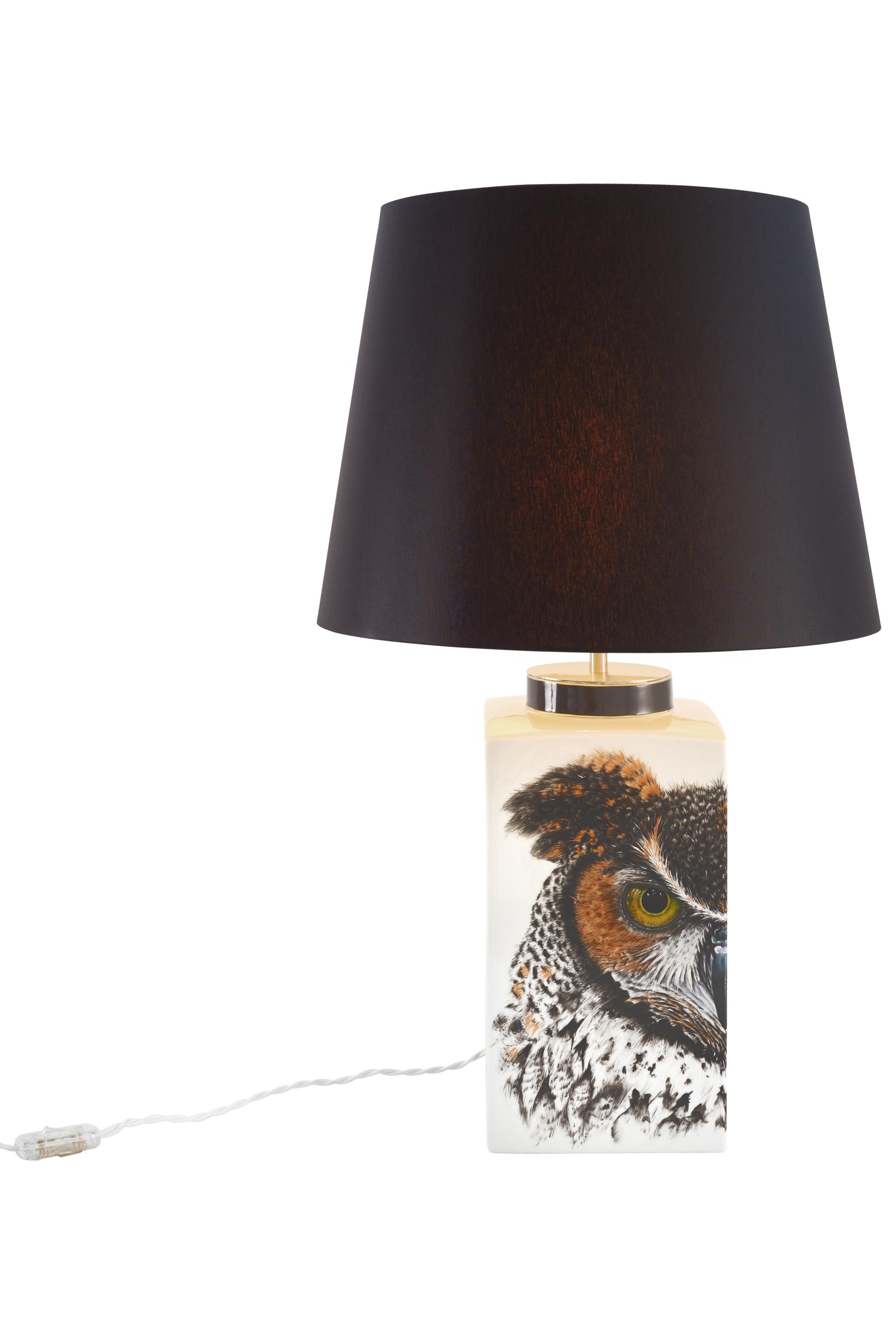 ANIMAL GLOW – Owl Lamp The Animal Glow line is dominated by mysterious animals, strong in character and who are references for all of us. In Wisdom, a piece painted entirely by hand, a royal owl observes us with its dominant air, showing its controlling wisdom of one who dominates everything. We envy its haughtiness, its eyes that scan our soul in search of who we are. And it is in this way that the lit lamp will focus on this mystery, shedding light on our restlessness and being our companion in the unveiling of the moments that follow