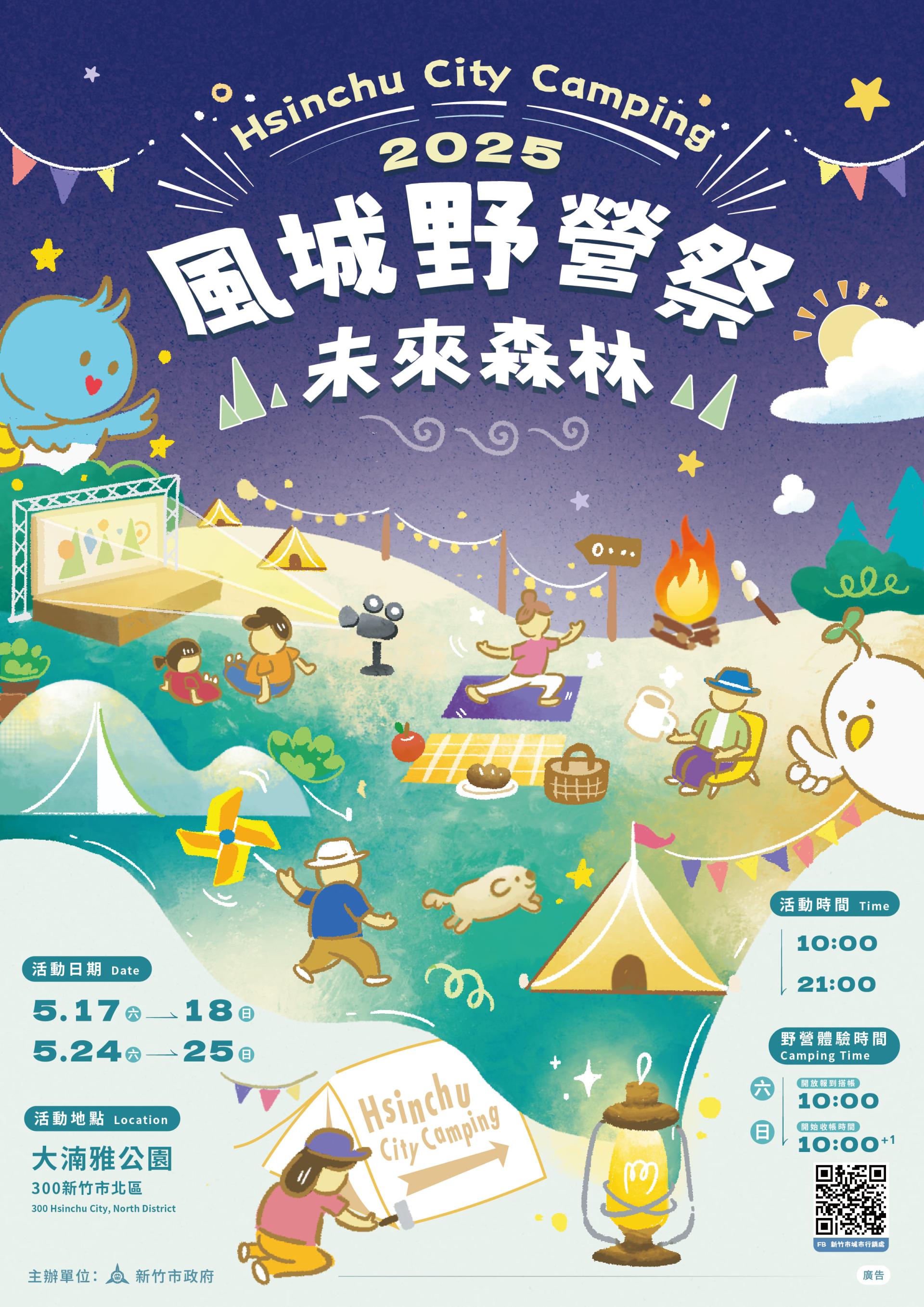 Hsinchu City’s first large-scale urban camping event, the Wind City Camping Festival, will take place on May 17-18 and May 24-25, 2025, at Danan Ya Park. The event invites citizens to step into the "Future Forest" within the city and embark on their own Wind City camping adventure. The first weekend of the festival received overwhelming enthusiasm, attracting thousands of participants!