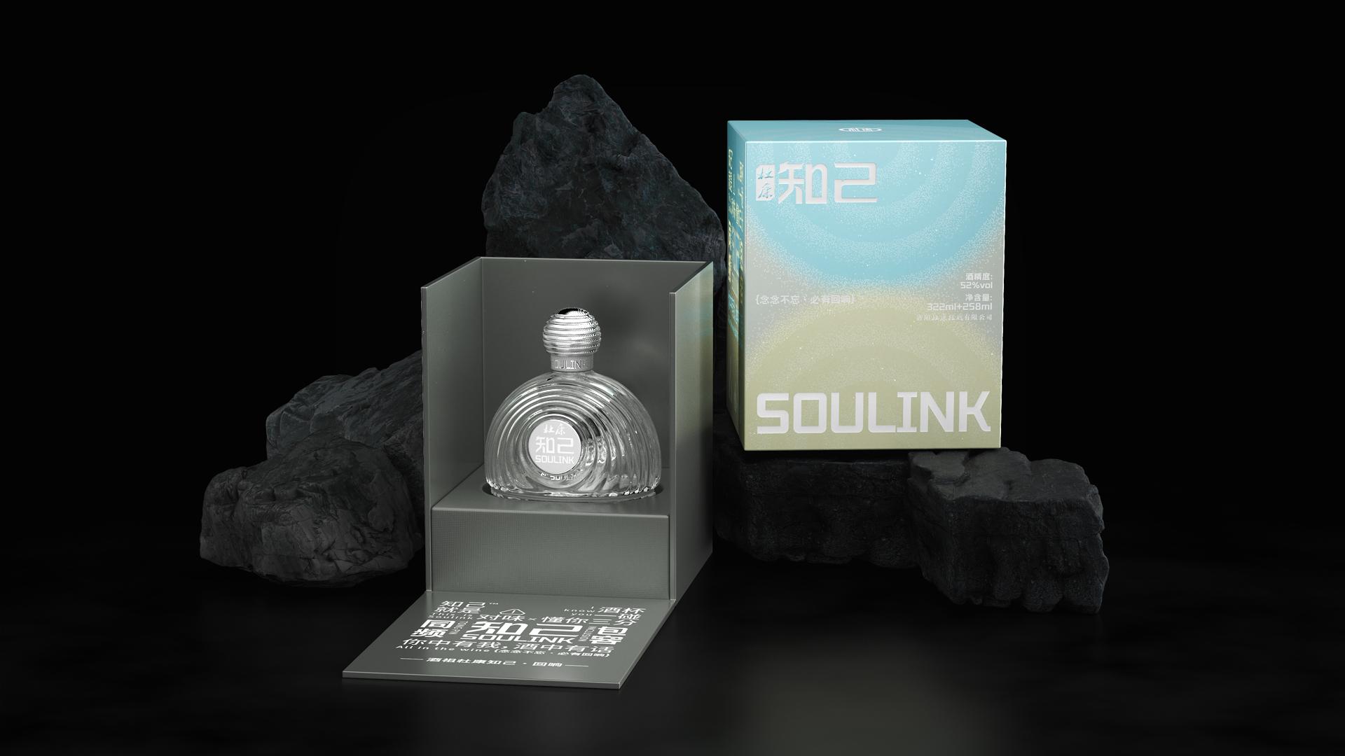 Du Kang SOULLINK, uses sound waves as an emotional carrier to metaphorically represent the philosophy of "I accompany you" through the 322ml+258ml twin body. The gradually silencing pattern on the bottle echoes the Eastern wisdom of "Emotions come from baijiu", and the fragrance left by the empty cup is transformed into a visual imprint of sound waves. The circular main visual constructs a sound field resonance image, integrates Eastern culture and emotional resonance, and creates a product design that combines connotation and temperature.