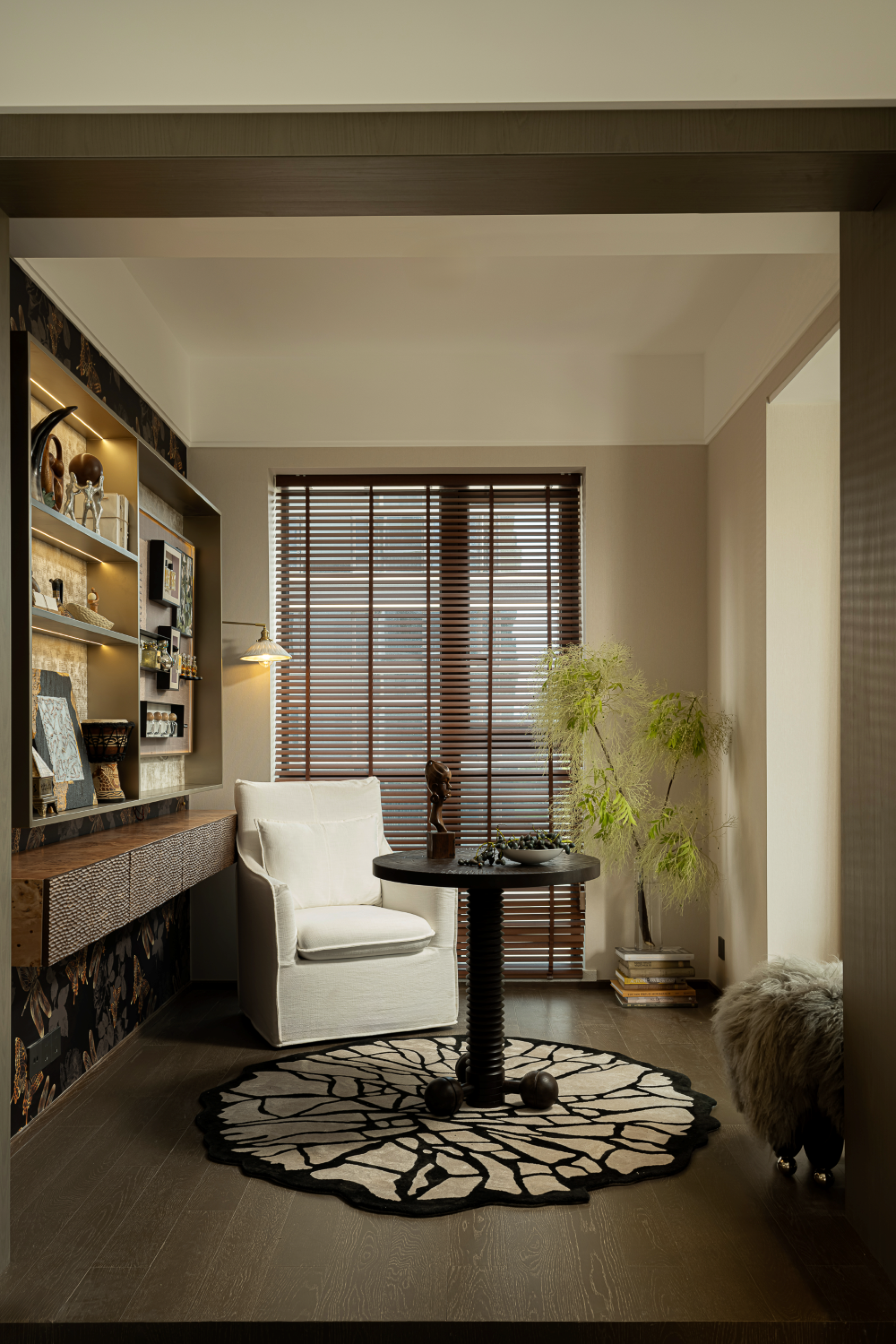Warm beige melds with wood tones, punctuated by strategic greenery and art objects that weave natural luxury into daily rituals. The design transcends physical construction to become a gentle reflection of the inner realm—effortlessly emanating serenity and life's poetry without artifice.
