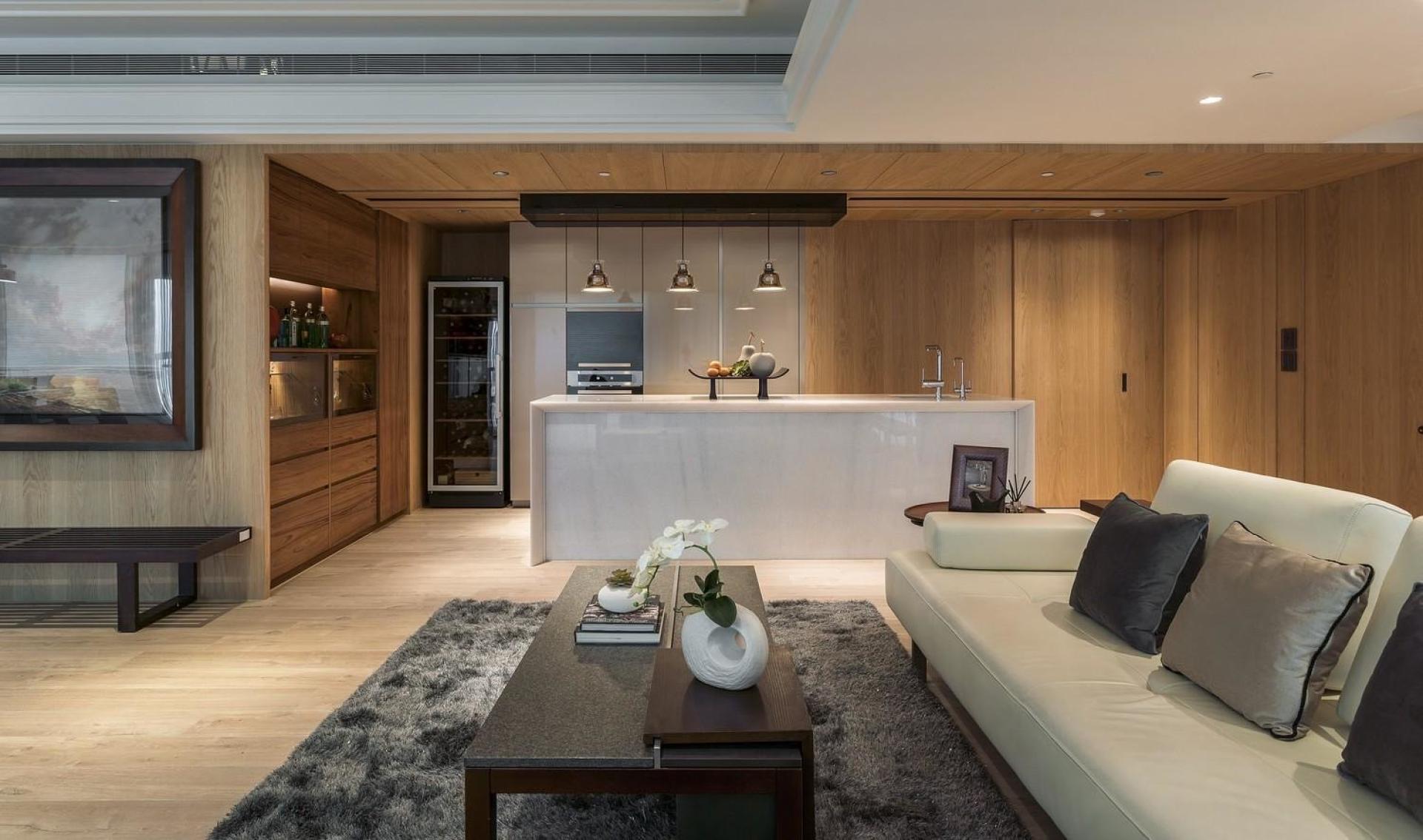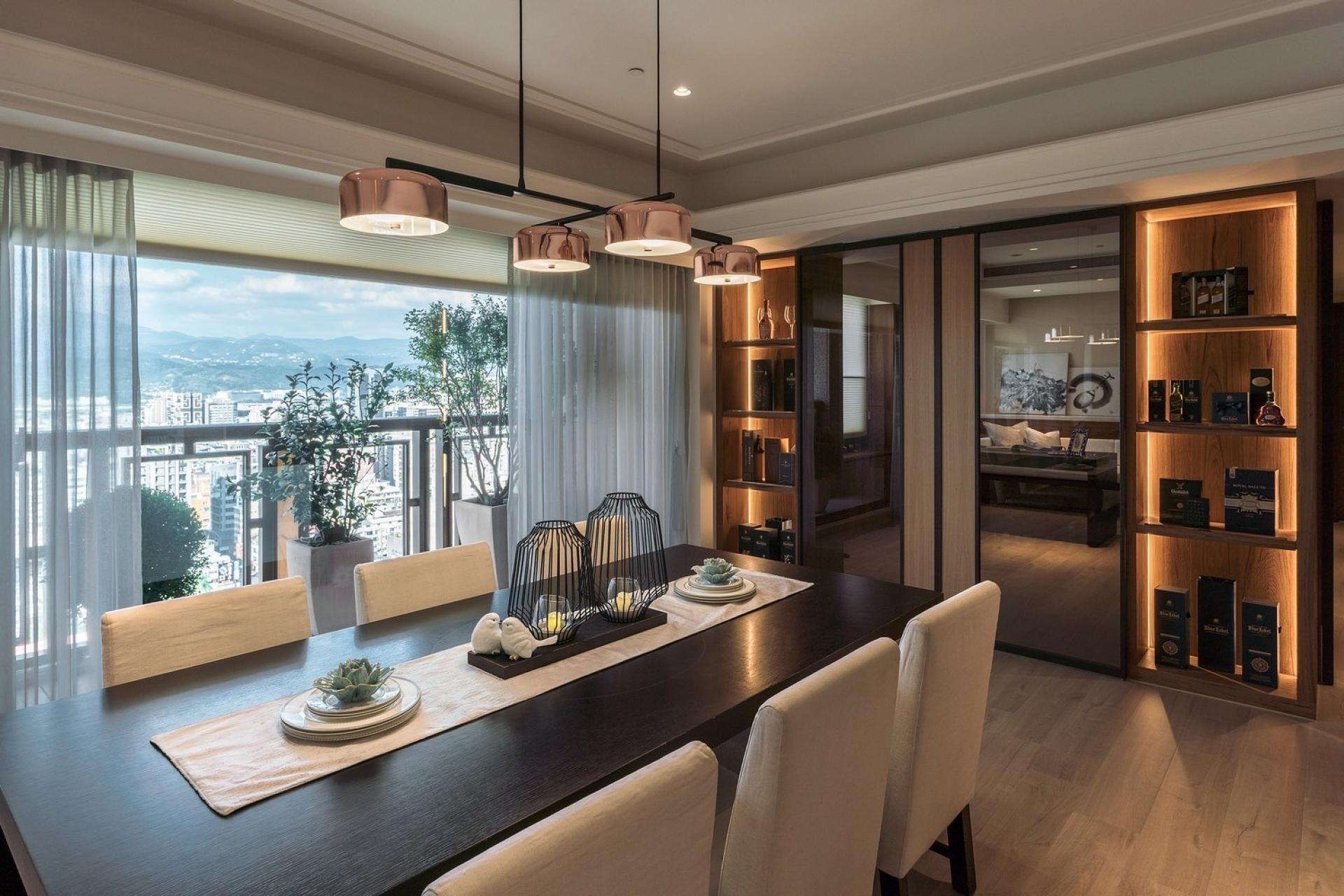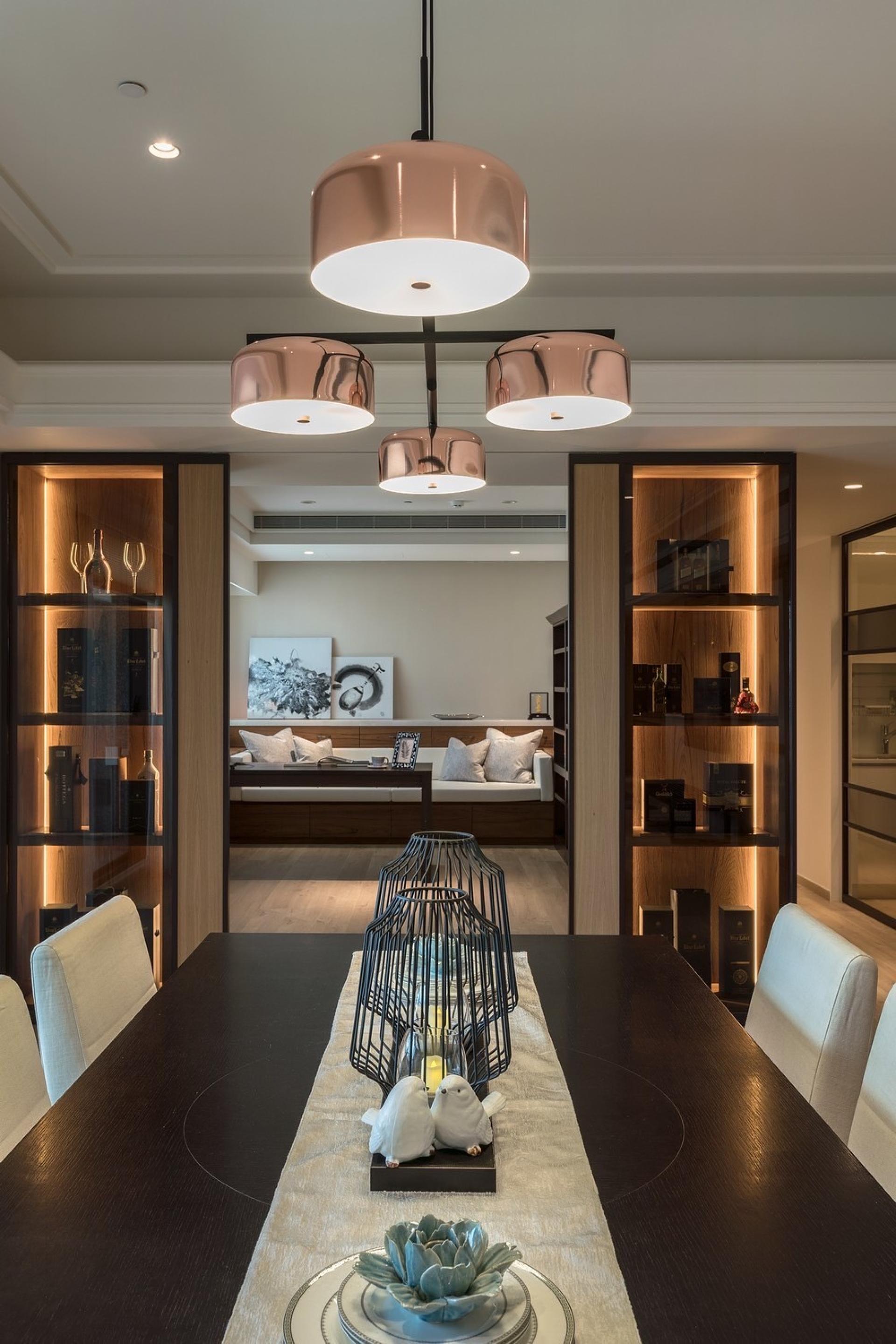 Breaking away from conventional residential forms, this project adopts a subdued and minimalist approach to create a serene and calming atmosphere. The communal area is strategically placed at the heart of the layout, with the study serving as the spatial focal point. An open-plan configuration connects the living room, dining area, bar, and kitchen seamlessly, enhancing the sense of spaciousness while preserving intimacy in each corner. Various ironwork details elevate the space’s refinement, while a mix of light and dark wood tones introduces layers of natural warmth. Thoughtful lighting design clearly delineates public and private zones, resulting in a bright, comfortable, and tranquil living environment that exudes the grace and ease of a grand residence. While preserving a sense of openness throughout the design, the space also maintains a rhythm and depth that align with the flow of daily life. Rich functionality is thoughtfully integrated into a well-organized circulation plan, with floor-to-ceiling windows framing the skyline and curated furnishings and soft décor highlighting the home's refined character. Striking a balance between functionality and visual appeal, the design employs fluid lines and gentle tones to infuse the home with understated elegance—creating a tranquil retreat where one can quietly savor the serene and graceful beauty of everyday living.