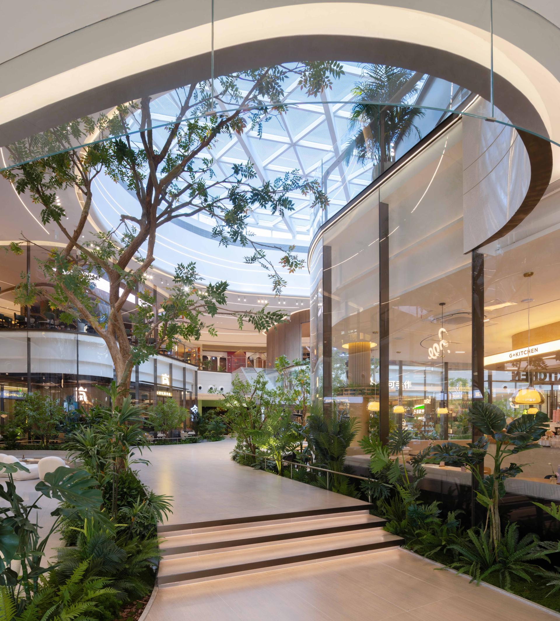 The lighting highlights the curves and three-dimensional structure of the building, enhancing the extensibility and sense of flow of the space. Especially in the atrium area, the curved linear light strips are combined with natural light to guide the upward visual sense of the space, emphasize the sense of movement and rhythm, attract the attention of customers, and guide customers to visit between floors.