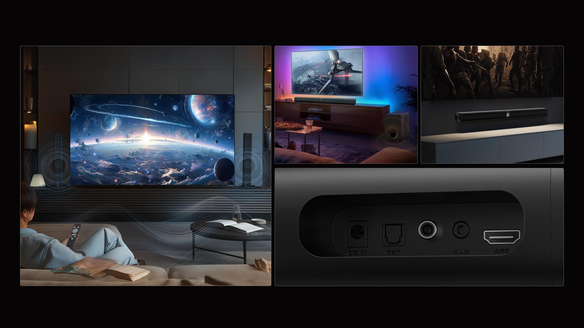 With Bluetooth 5.0, ARC, OPT, and AUX inputs, the KY-8000 connects effortlessly to TVs, mobile devices, and projectors. Users can operate the soundbar via physical buttons or remote control, with intuitive mode-switching and memory recall ensuring a streamlined, user-friendly experience.