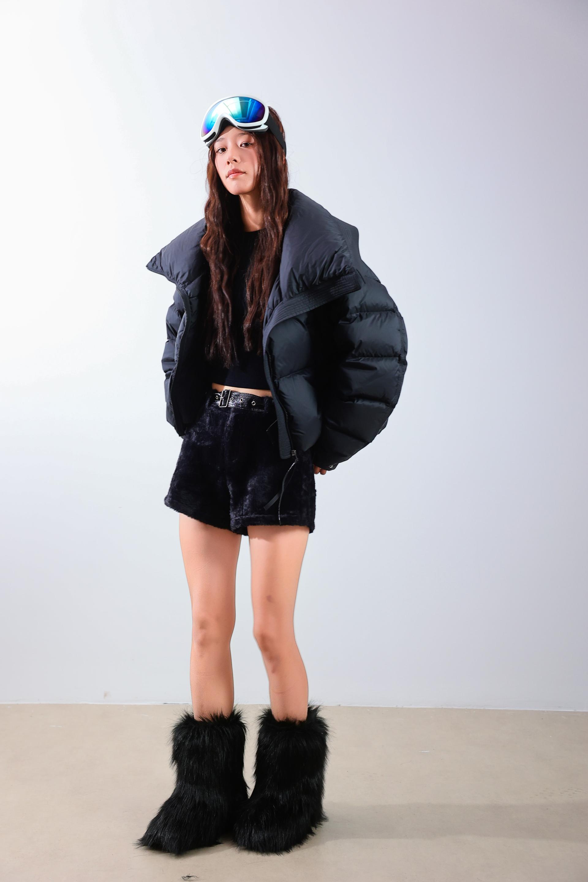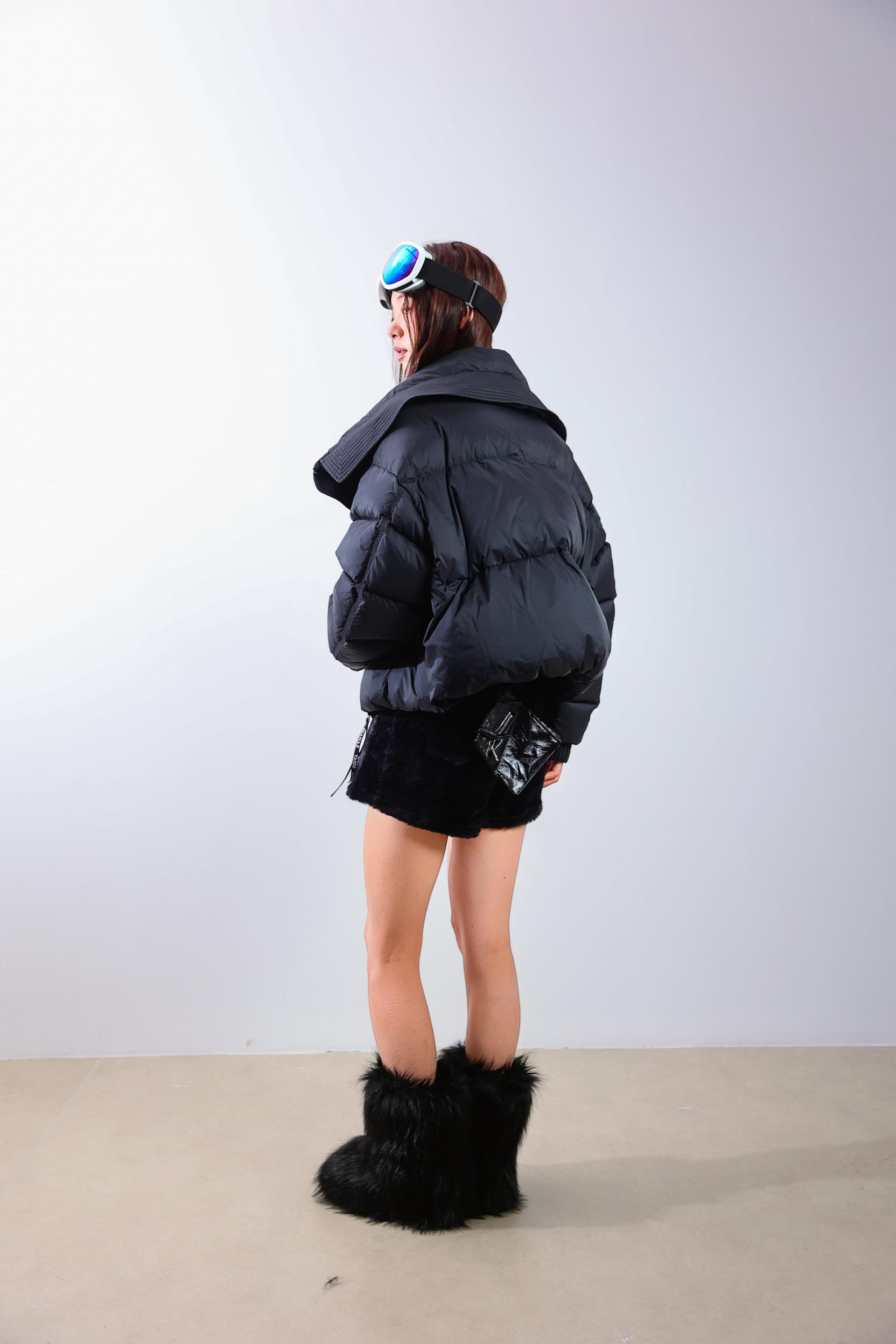 Inspired by jewelry cutting techniques and modern architectural lines, this short down jacket creates a dazzling shine effect that echoes the theme of Shine Instantly. Geometric quilted stitching breaks away from the monotony of traditional down jackets, while the tailored silhouette delivers structured short cuts and smooth cocoon shapes, achieving a light yet stylish look.