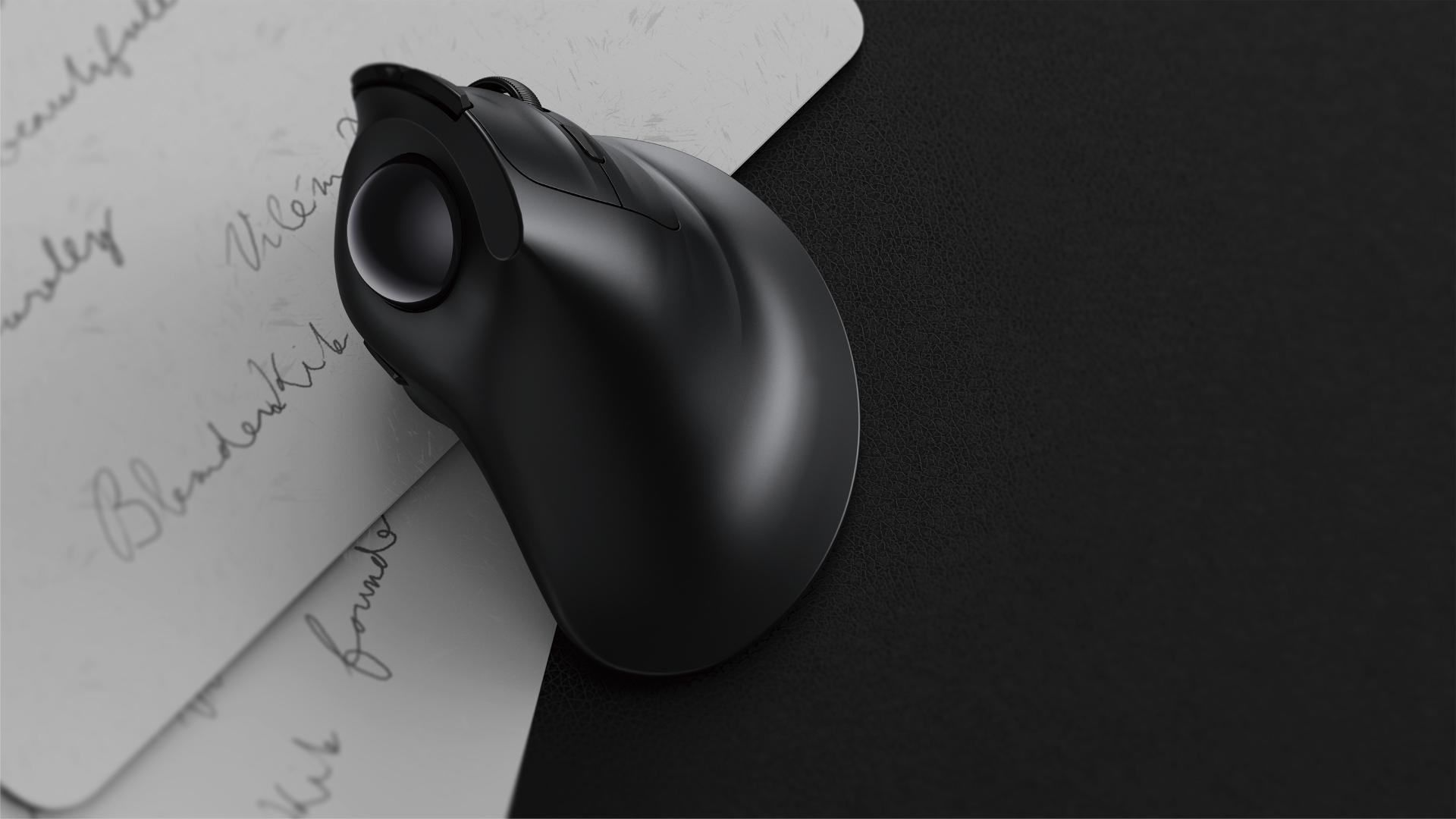 The form of this trackball mouse is sculpted directly from anatomical data rather than aesthetic norms. Utilizing 3D scans of relaxed hands, the design features an asymmetrical fluid silhouette tailored to natural hand posture. Key support zones—the thumb groove, palmar arch, and hypothenar platform—form a triangulated ergonomic load system. These zones distribute pressure while minimizing tension. The extended rear platform supports the wrist without lifting it, avoiding static fatigue and pressure points often neglected in conventional mice.