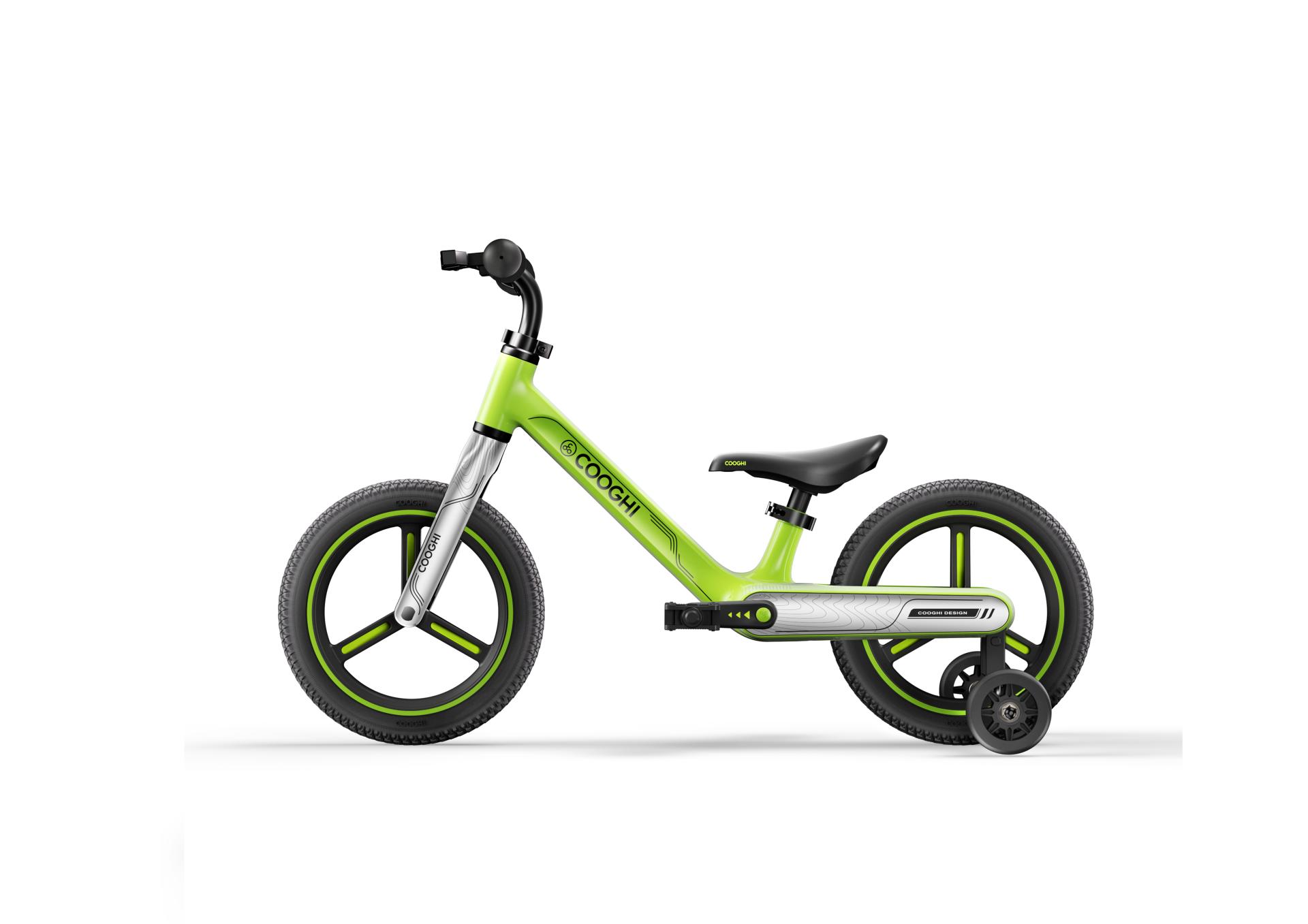 The COOGHI S1 is an innovative multifunctional 2-in-1 childrenās balance bike and bicycle designed to cleverly integrate both functions into a single product. It addresses issues of high idle rates and excessive space usage commonly seen in single-function products. The bike supports quick, tool-free switching between two riding modes, making it easy to use and suitable for children at different stages of growth. To enhance both safety and aesthetics, the product features a hidden brake cable design that prevents exposed cables from potentially scratching children while also maintaining a clean, streamlined appearance. Paired with a fully enclosed drivetrain system, it structurally eliminates the risk of chain derailment, providing a higher level of safety for young riders. Additionally, by adjusting the handlebar and seat positions forward and backward, the bike can accommodate both 12-inch and 14-inch wheel sizes, thereby extending its usable lifespan. Guided by an eco-friendly philosophy, this product integrates multiple functions into one, reducing the need for repeated purchases and minimizing plastic waste. When folded, it is compact in size, lowering packaging and transportation costs while balancing practicality and environmental responsibility.