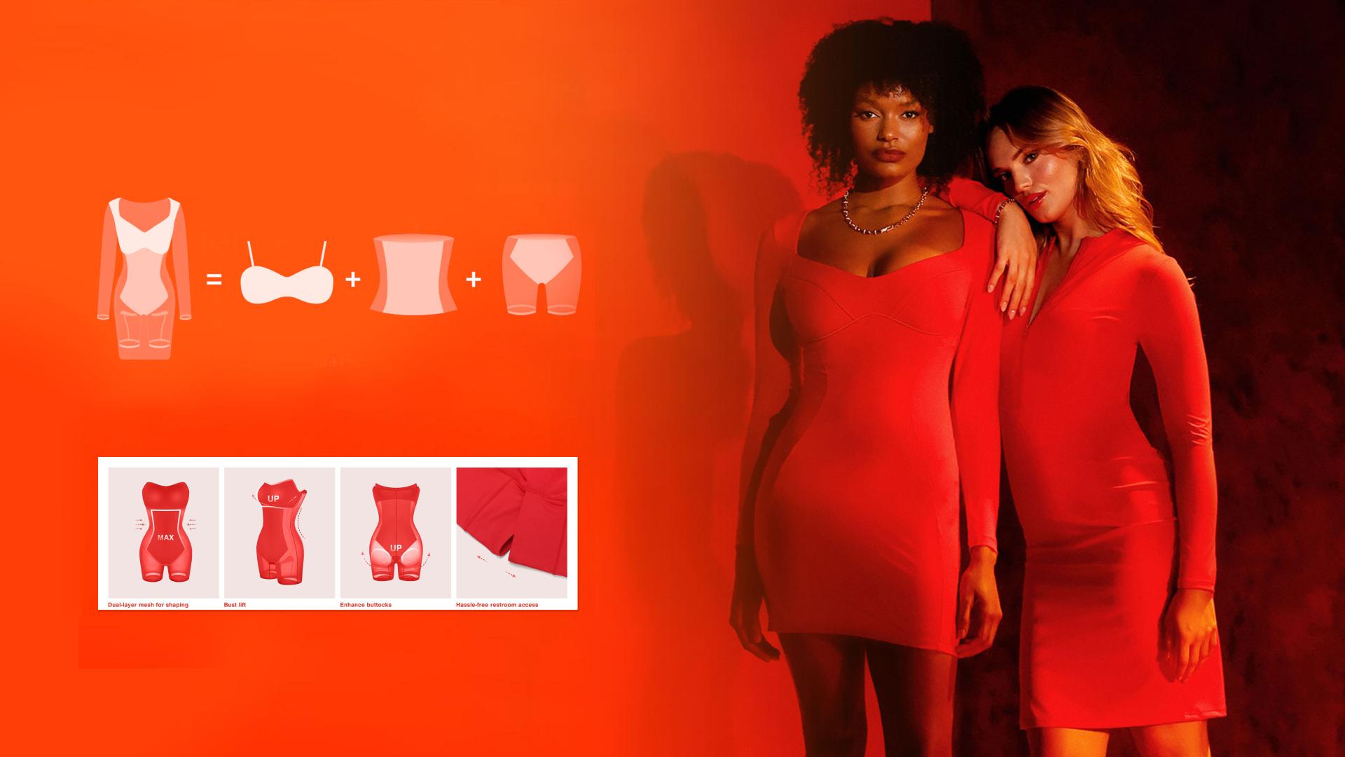 The Redtag Collection employs a unique one-piece structure that integrates a built-in bra, shaping layer, and panties for convenience. This all-in-one garment provides bust support, abdominal contouring, hip lifting, and easy restroom access, streamlining the dressing process and eliminating the constraints of layered clothing. Embedded with lightweight pressure mesh, it precisely contours the bust, abdomen, and hips to create a sculpted silhouette while preventing marks or discomfort, balancing effective shaping with wearability.