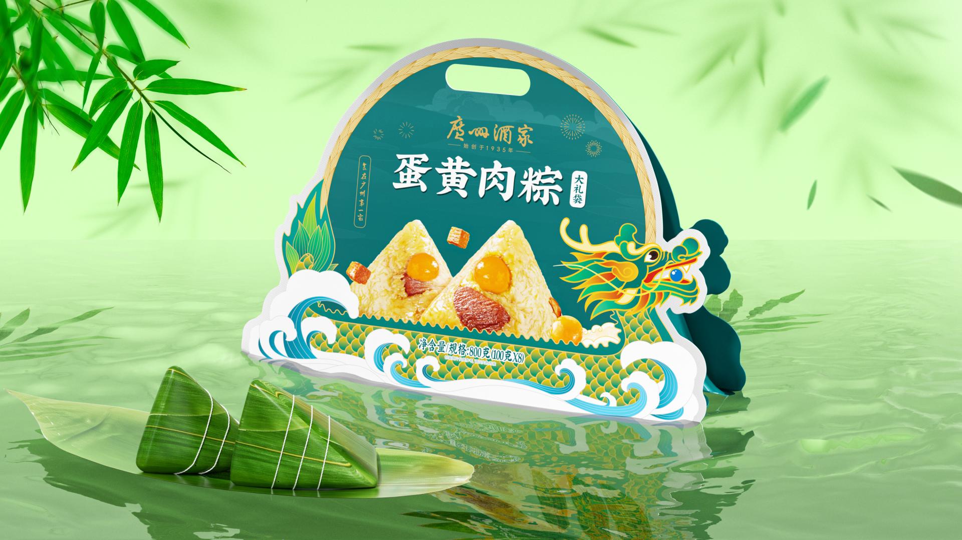 The pattern design is undoubtedly one of the most visually striking highlights. At the focal point of the packaging, two plump, enticing, and realistic egg yolk meat zongzi images stimulate consumer interest, immediately conveying the product’s content and quality. Below the zongzi, a dragon boat motif is subtly incorporated, paired with decorative wave elements. Through this creative combination of visual symbols, the design constructs a cultural imagery of “a basket of dragon boats delivering zongzi,” effectively blending traditional festival culture with the gift-giving context. The dynamic depiction of waves further amplifies the majestic momentum of dragon boat racing, enhancing the overall rhythm and festive ambiance of the design.