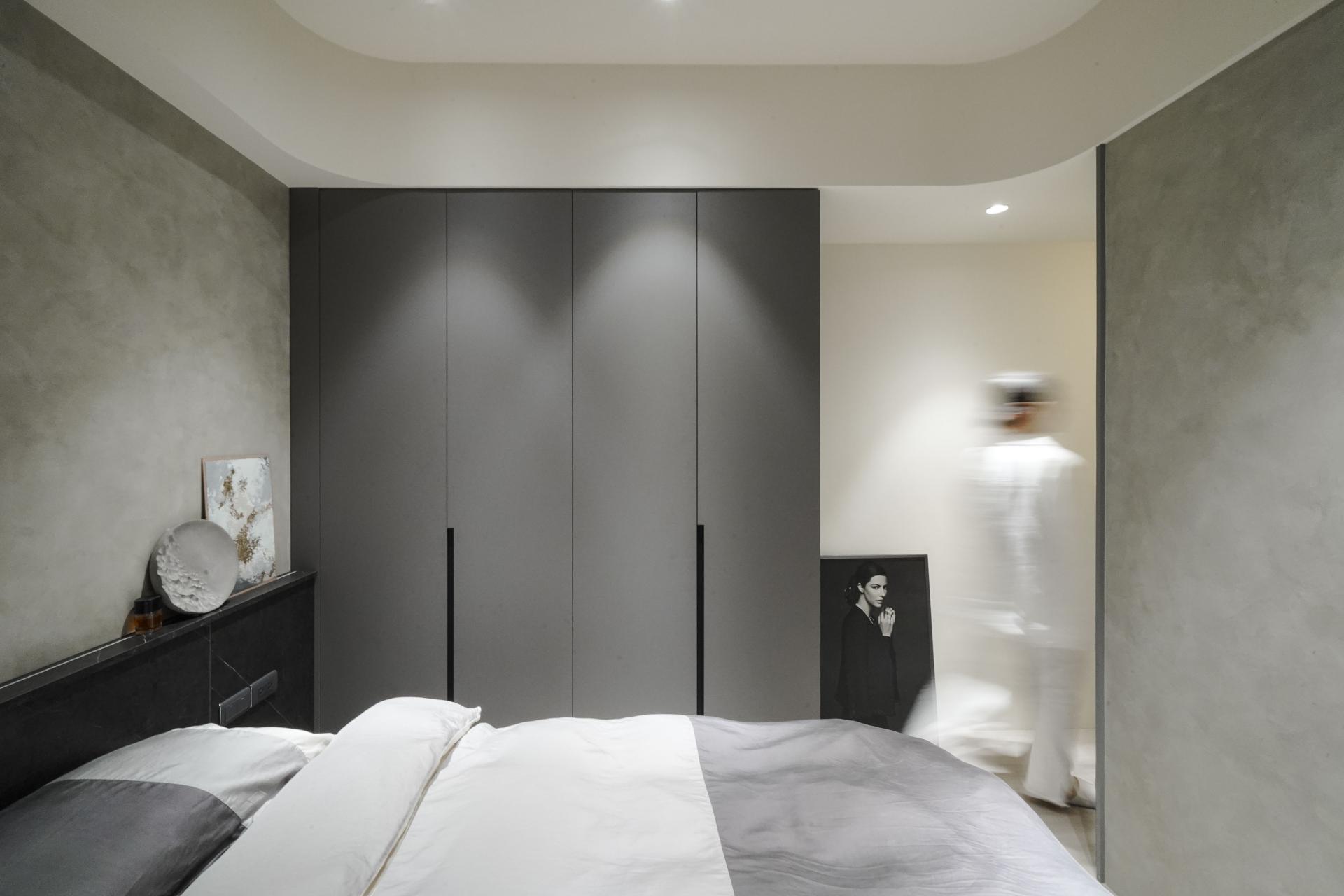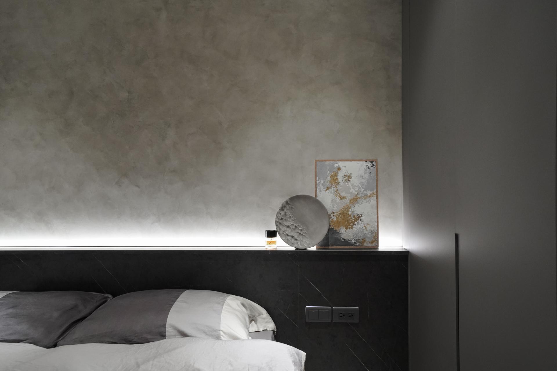 In line with the grey-based palette, the design incorporates a mix of textured paint finishes, plain matte surfaces, metal elements, and mineral coatings to create a refined yet layered visual language. Rather than relying on bold contrasts, the space draws its rhythm from subtle shifts in tone—much like city light diffused through urban haze.