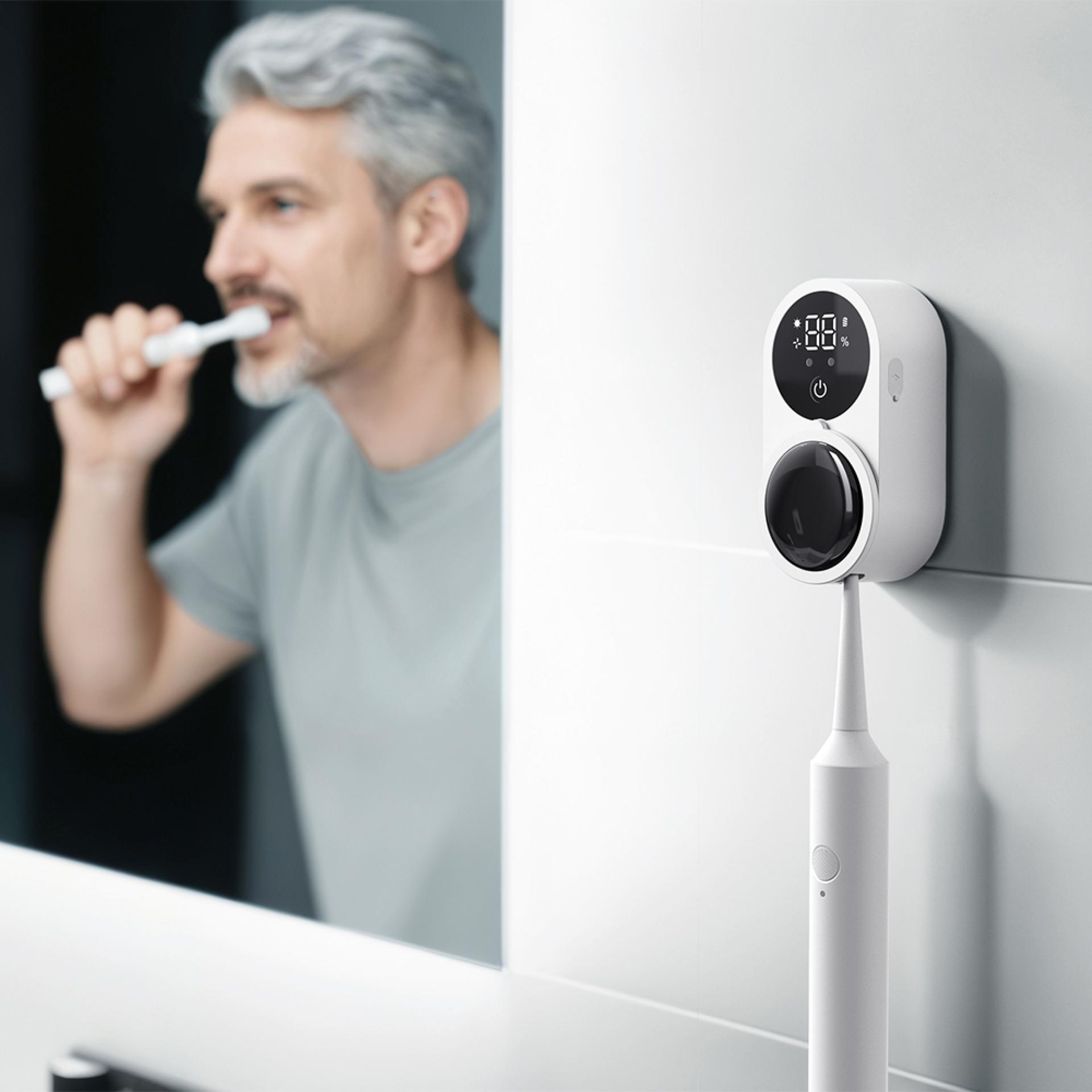 All three models integrate UV sterilization, hot-air drying, and an intelligent holder. Equipped with a contactless auto-sensing system, the device automatically starts the care process when the toothbrush is placed—no physical contact required. The high-efficiency UV-C module quickly eliminates common bacteria, while the low-noise drying system with directional airflow effectively prevents bacterial growth in moist environments. An integrated timer ensures the entire process runs automatically and safely, seamlessly fitting into the user's daily routine.