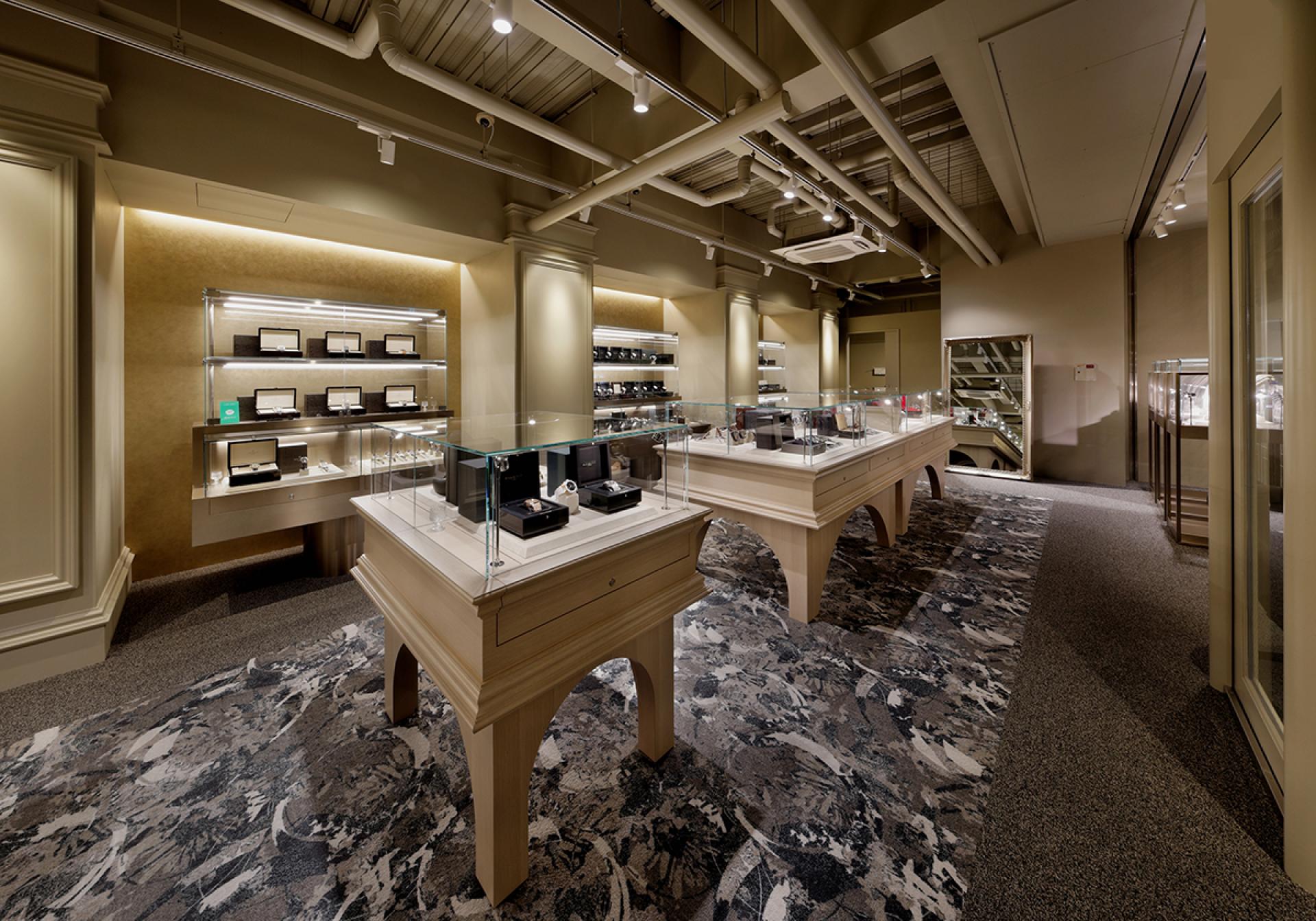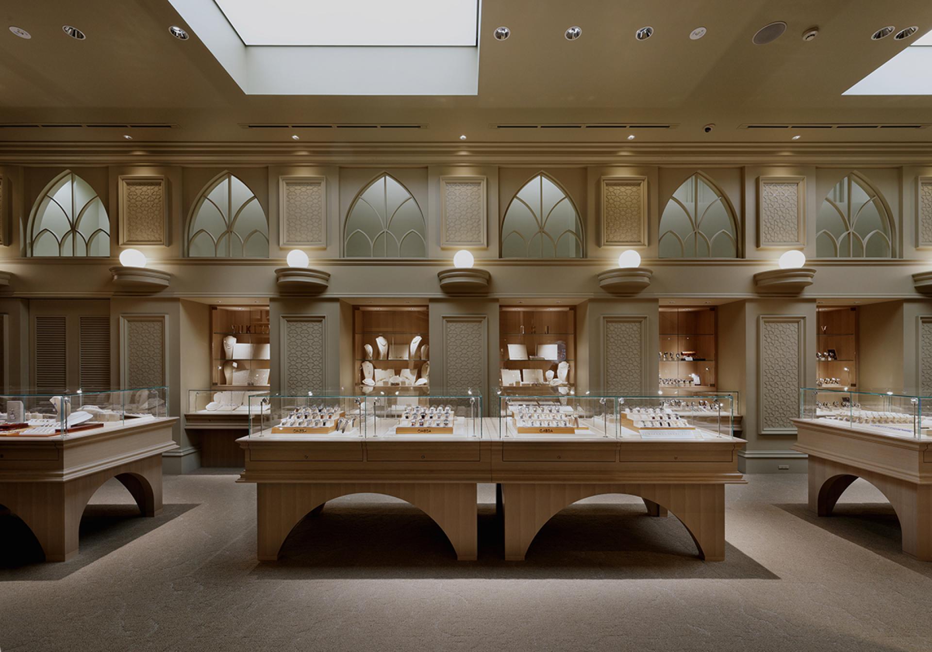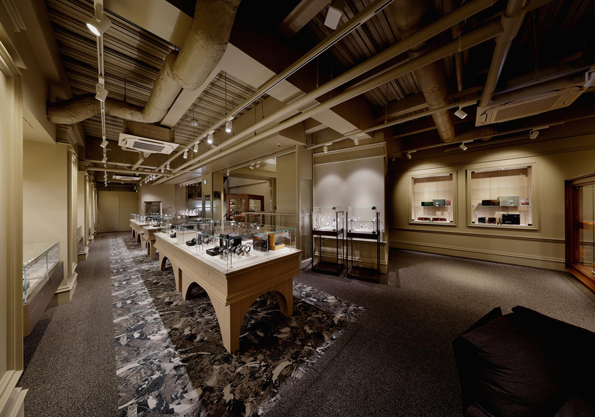 The shop carries a full lineup of watches and jewelry collected from different times in the past. We have designed the space as a reminiscence of a library in medieval Europe.