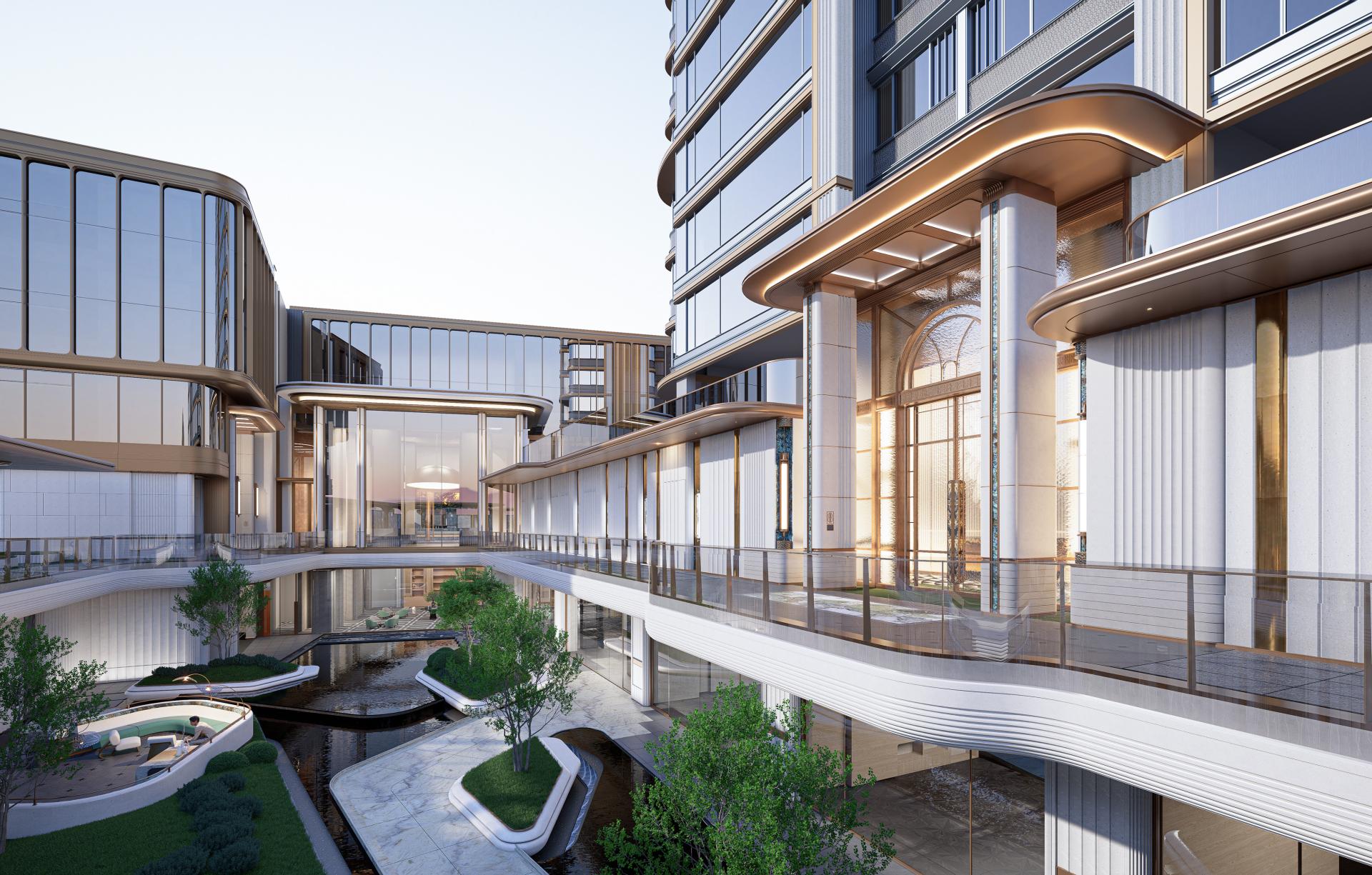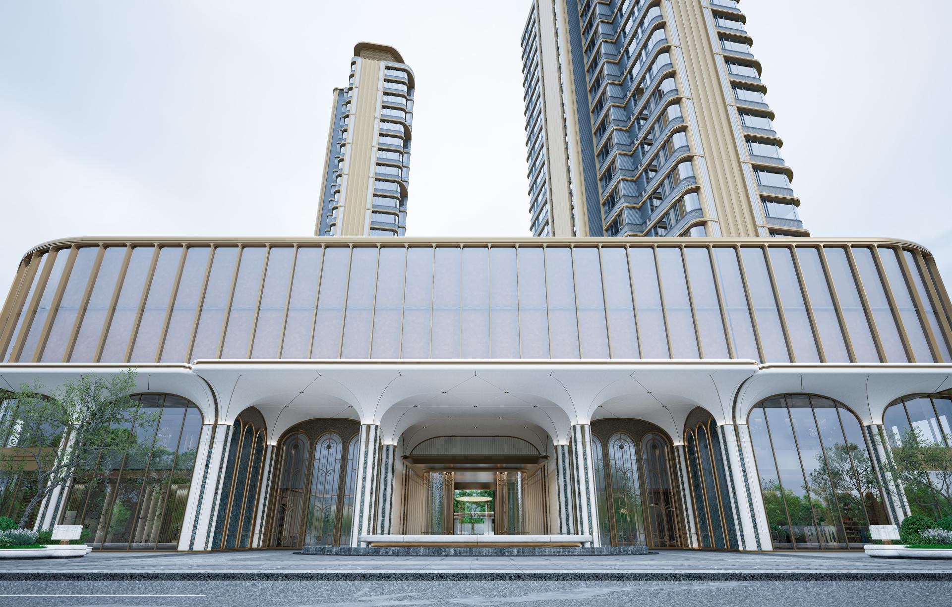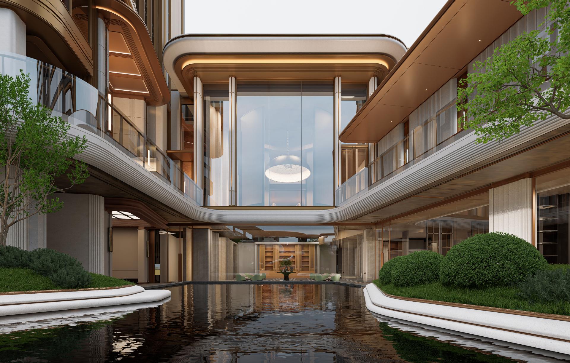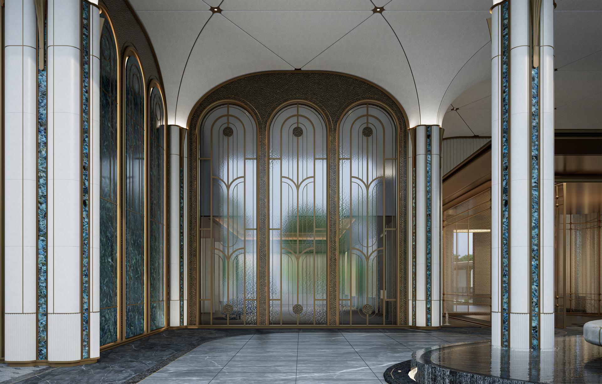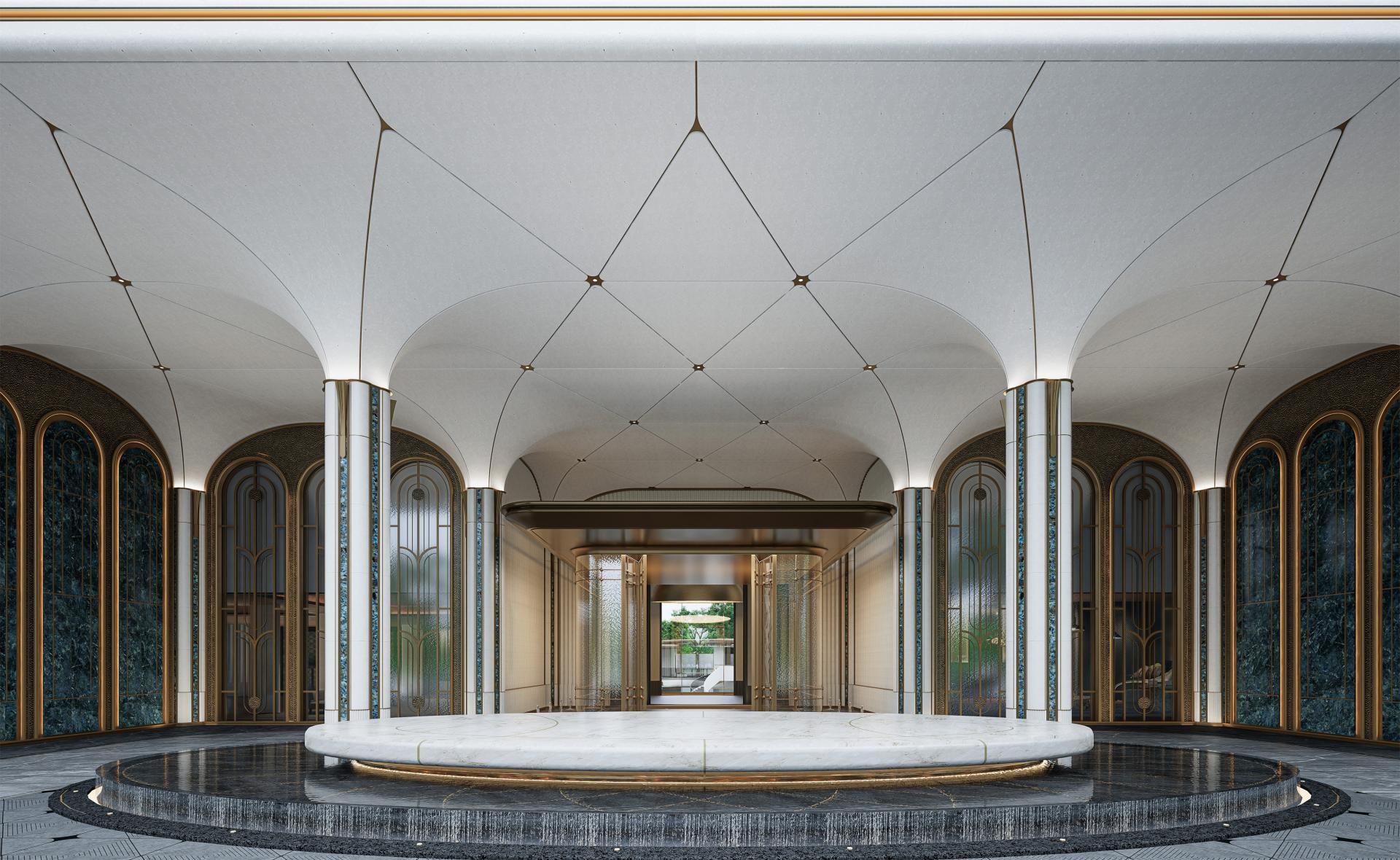 The main building embodies the refined, gentle, and restrained qualities emblematic of Fuzhou culture. Its details draw inspiration from the wooden doors and windows of “GuCuo” architecture. Horizontal golden metal lines paired with an arc-shaped roof create a harmonious aesthetic, seamlessly integrating traditional crafts such as jade carving, woodworking, and painting. This imbues the space with a profound sense of time and history, authentically restoring the elegance and luxury associated with “GuCuo.”