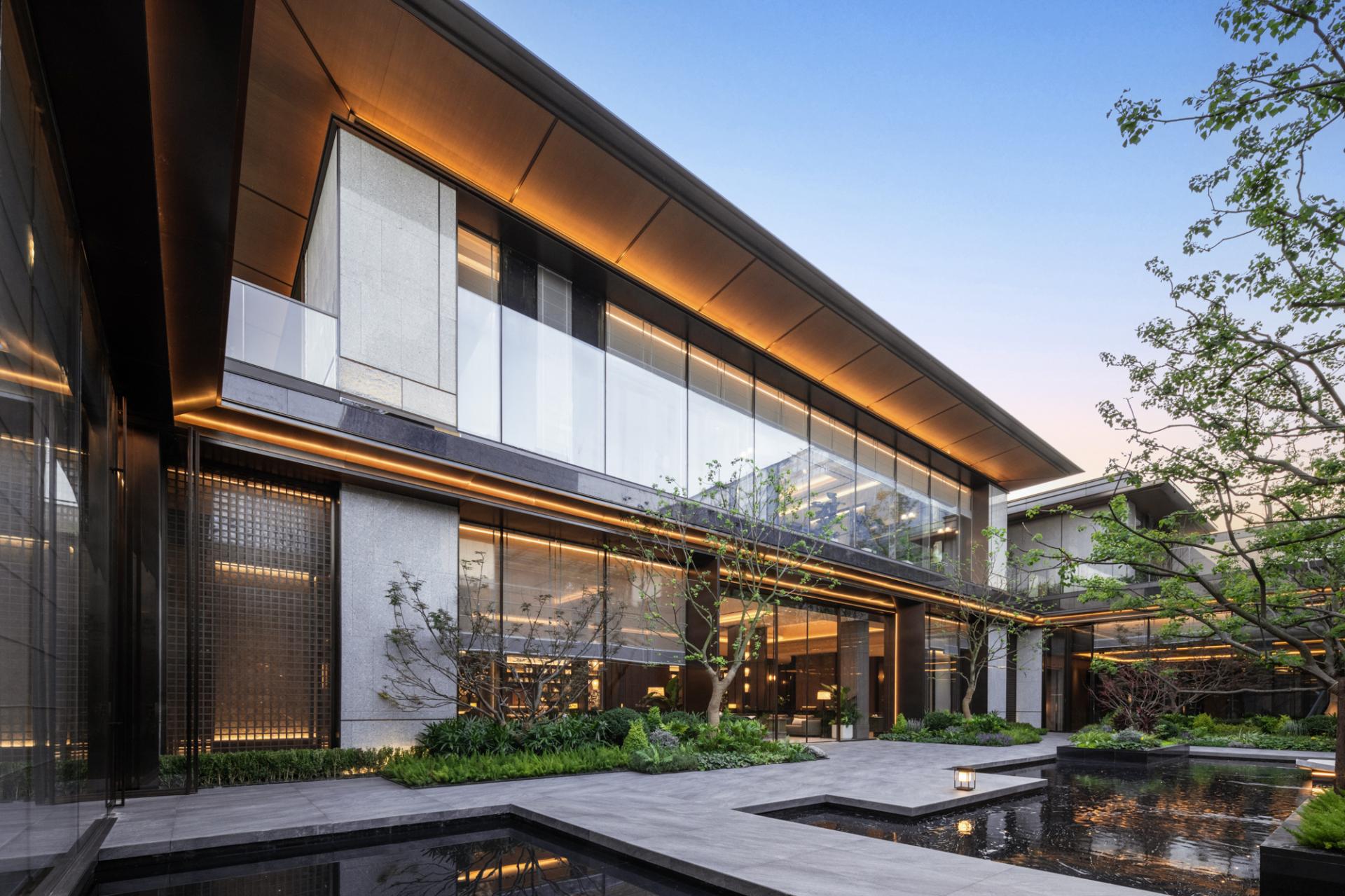 The architecture merges traditional Chinese motifs with modern facades, combining large dry-hung aluminum panels, integrated aluminum boards, expansive glass, and clean lines. Layered terraces enhance visual depth, while the eaves—inspired by ancient Jiangnan architecture—evoke the elegance of an "imperial crown," blending classical dignity with Zen-inspired tranquility for exceptional aesthetic appeal.