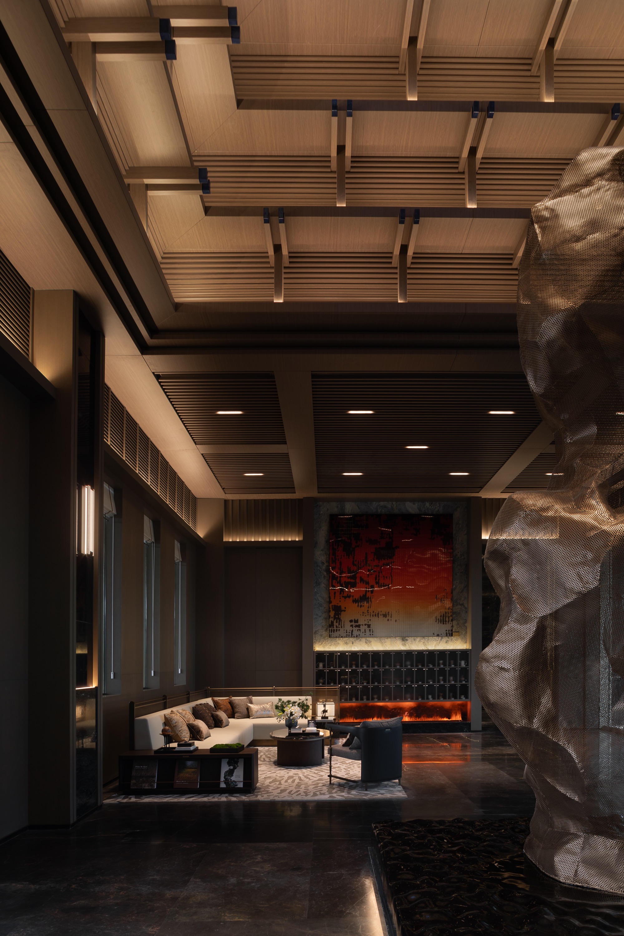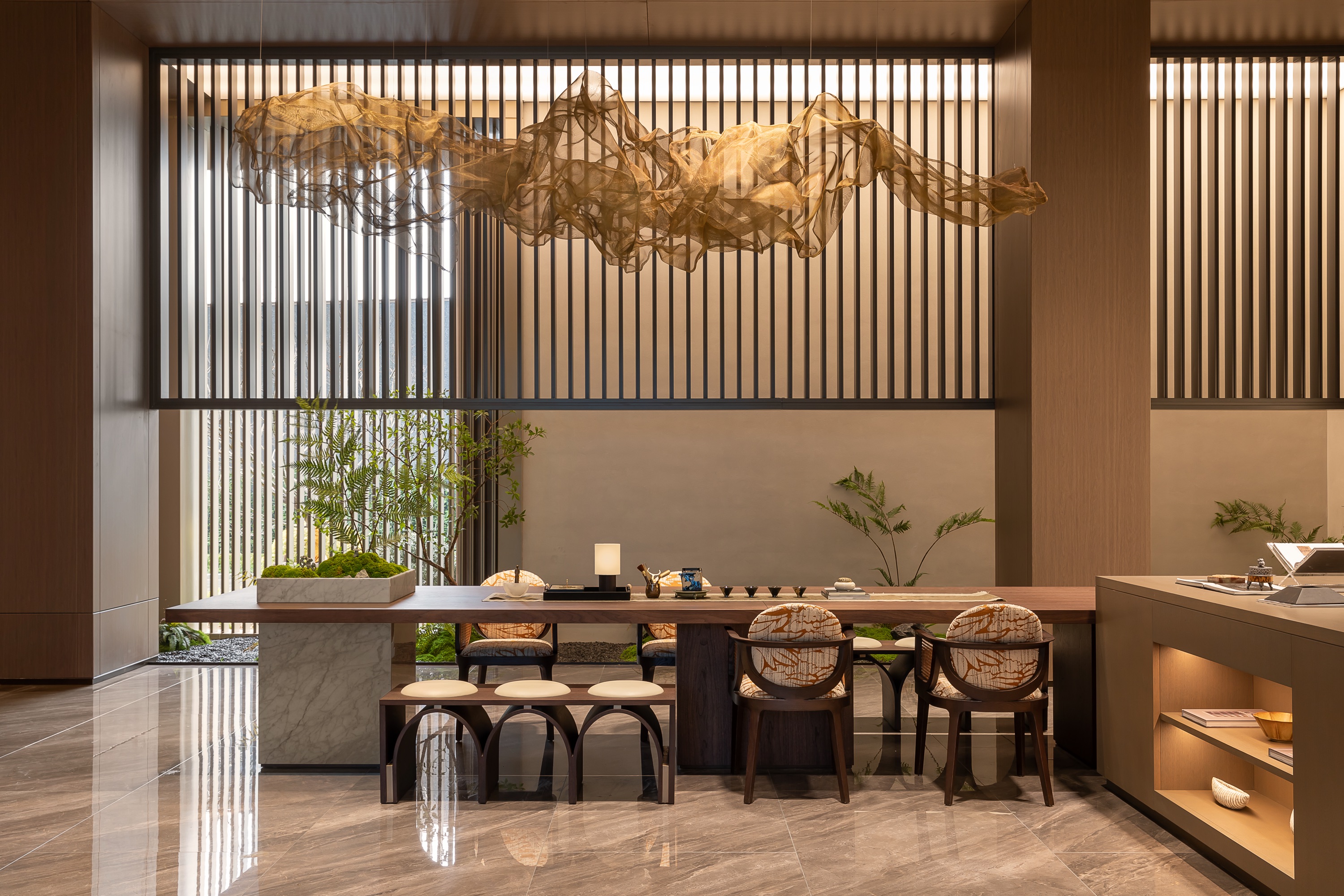 The project is located in the heart of Yongkang City, Zhejiang Province, China. Here, the elegance of the East and the international perspective blend together, and the spirit of etiquette and contemporary aesthetics resonate, creating a landmark of a top-notch clubhouse in Yongkang. A thousand blue and purple pottery tubes hang down to form a grand "Oriental Gate", heralding the beginning of an exquisite and luxurious life.