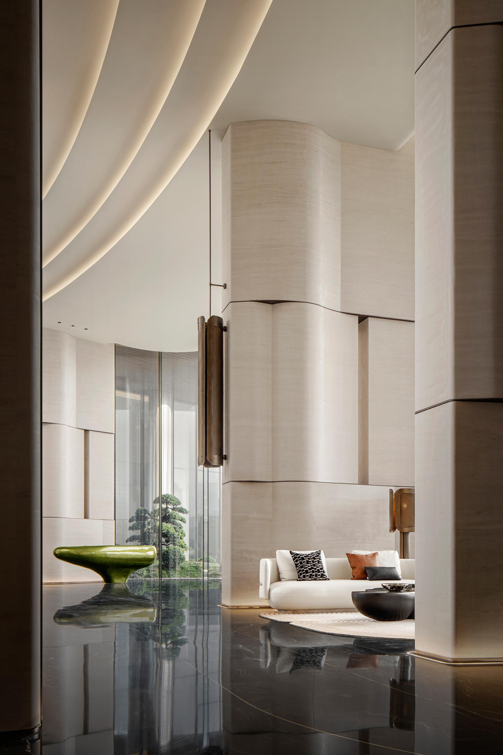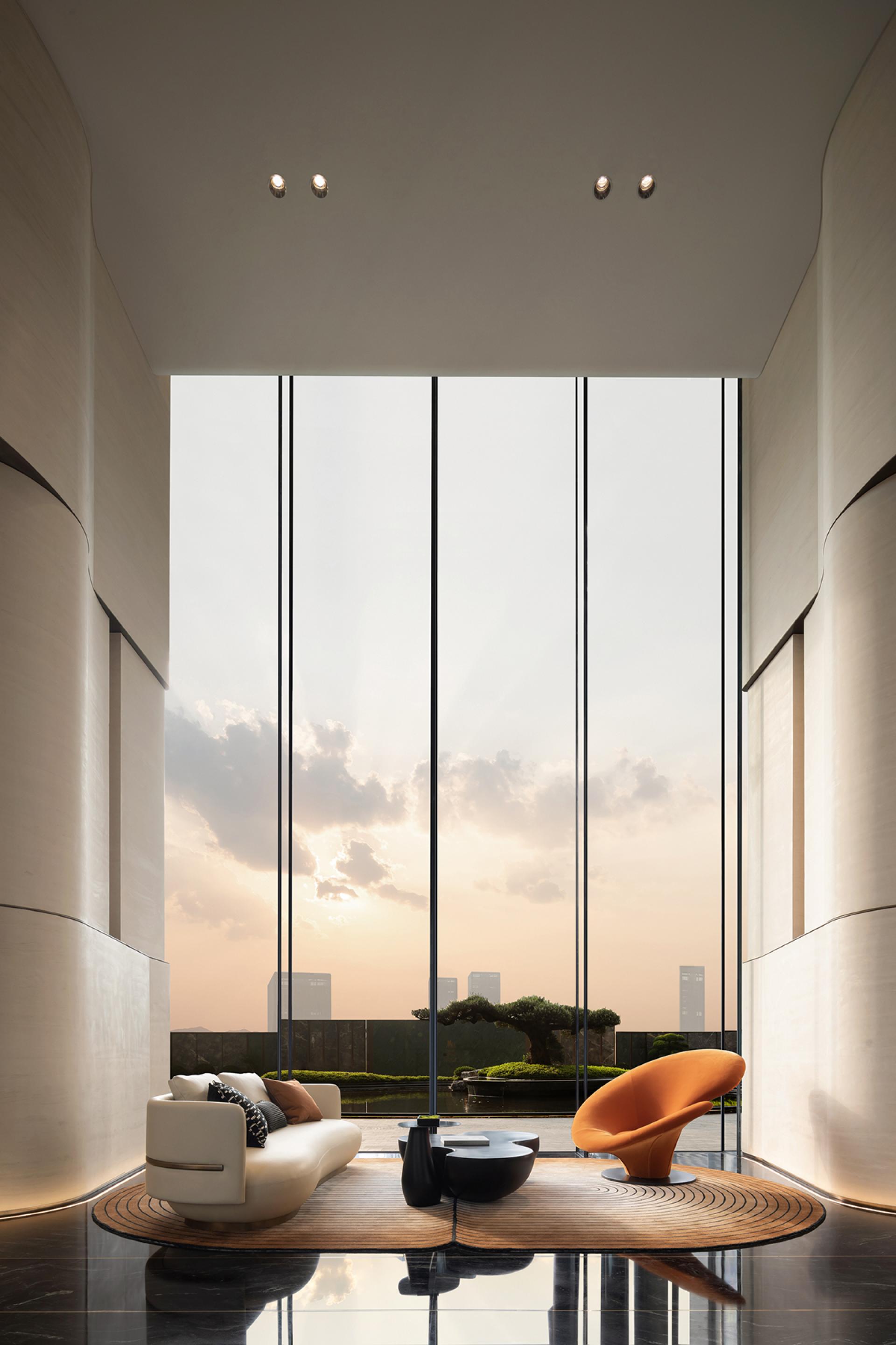 The design integrates the contemplation of a good life, integrating Eastern natural philosophy into the scene. The extensive use of white space constructs an Eastern poetic atmosphere, while oversized floor-to-ceiling glass seamlessly connects the outdoor natural landscape with the indoor space, creating a harmonious beauty that seems to be naturally formed.